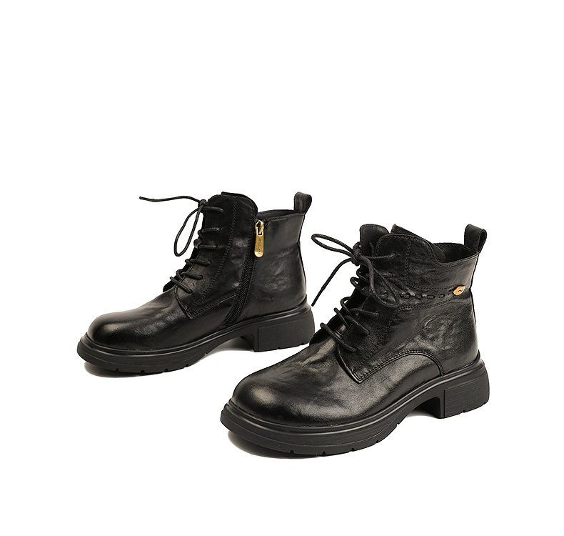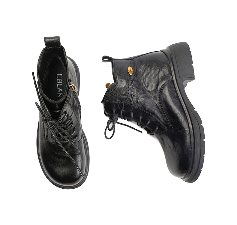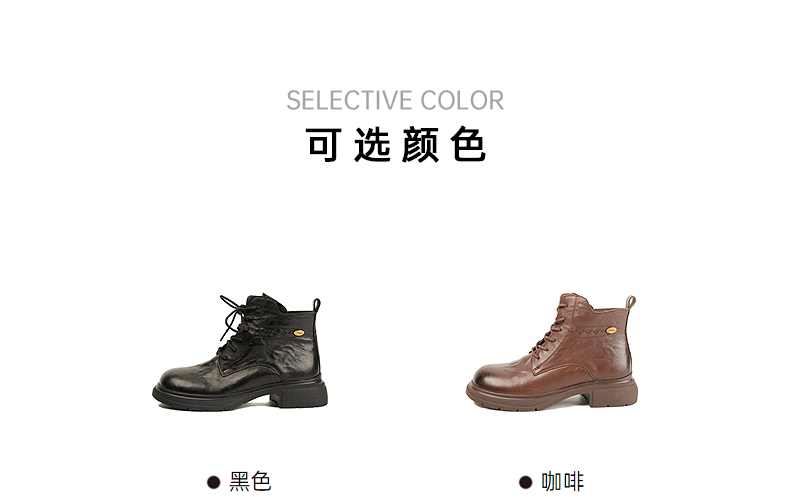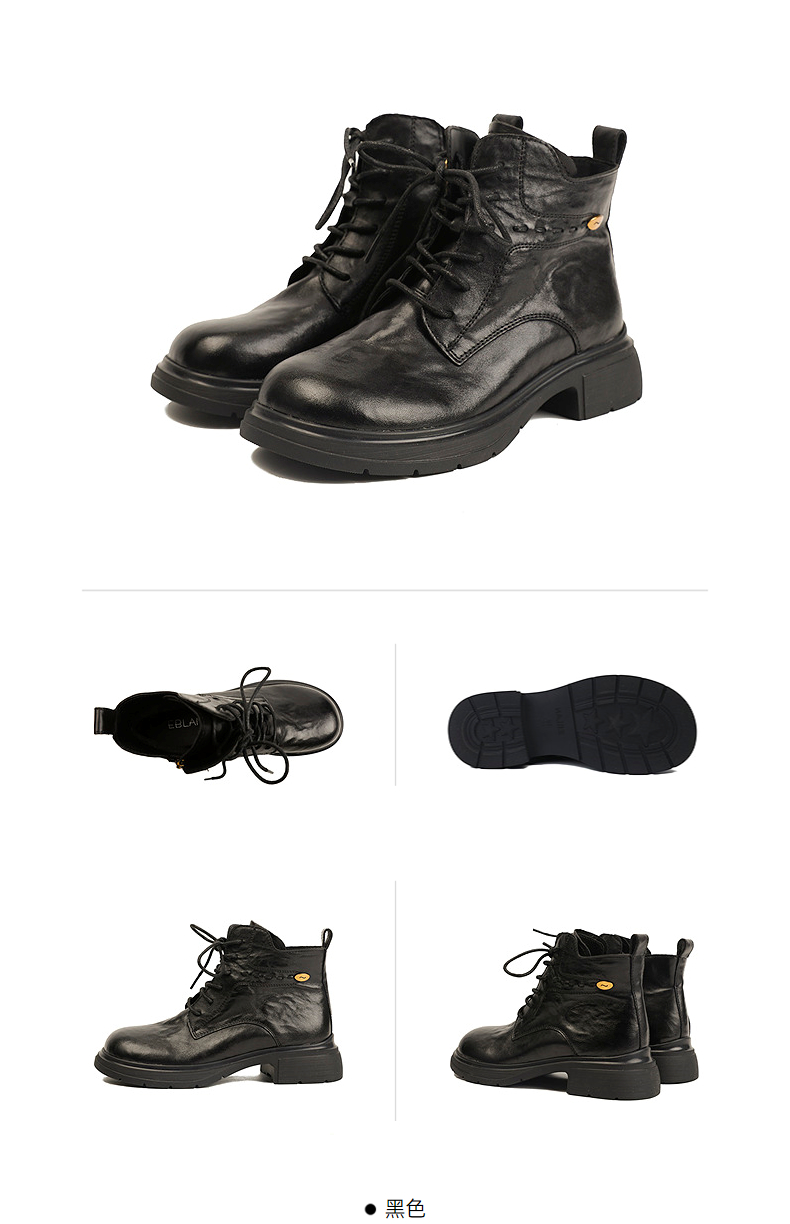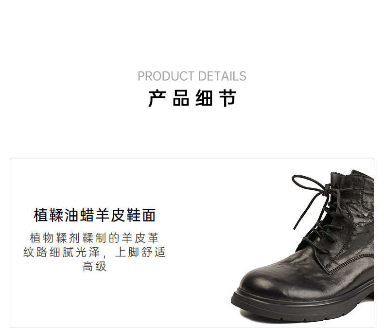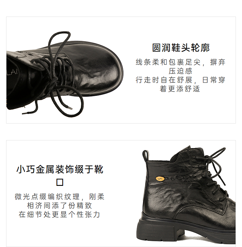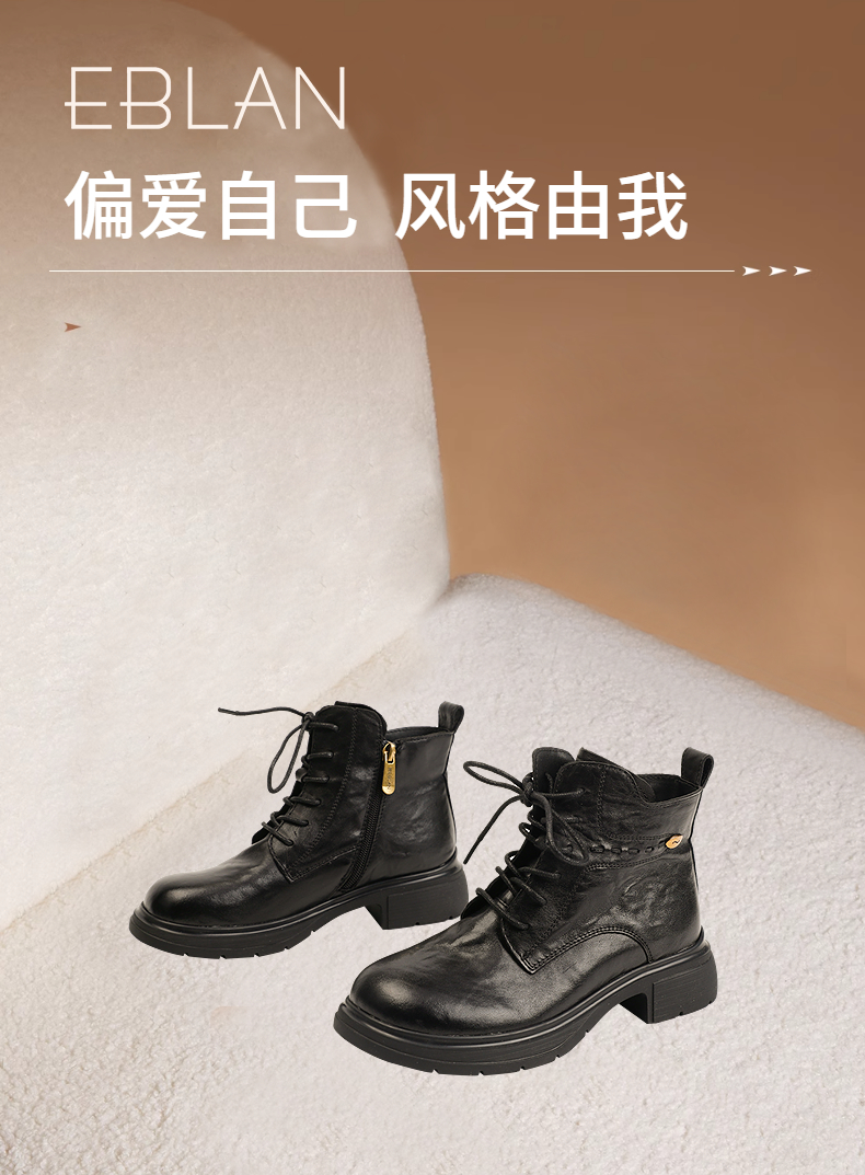 伊伴冬季植鞣油蜡羊皮质感鞋面潮酷皮靴女鞋B25509910