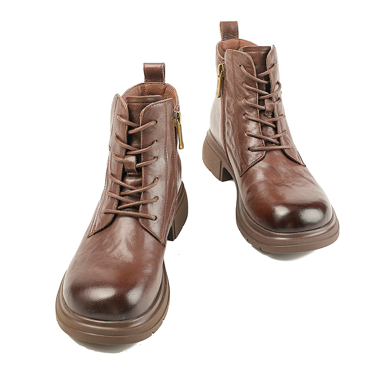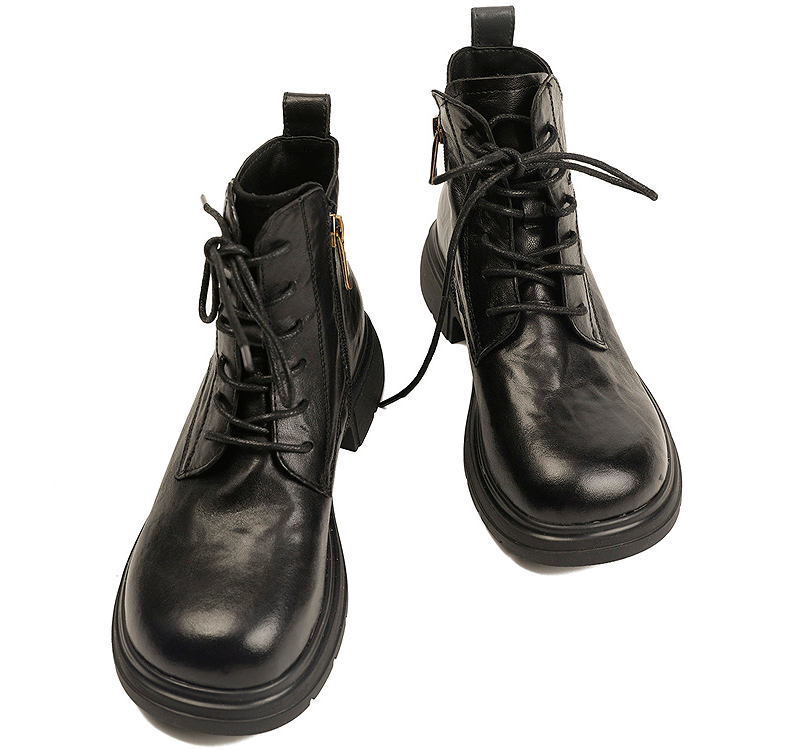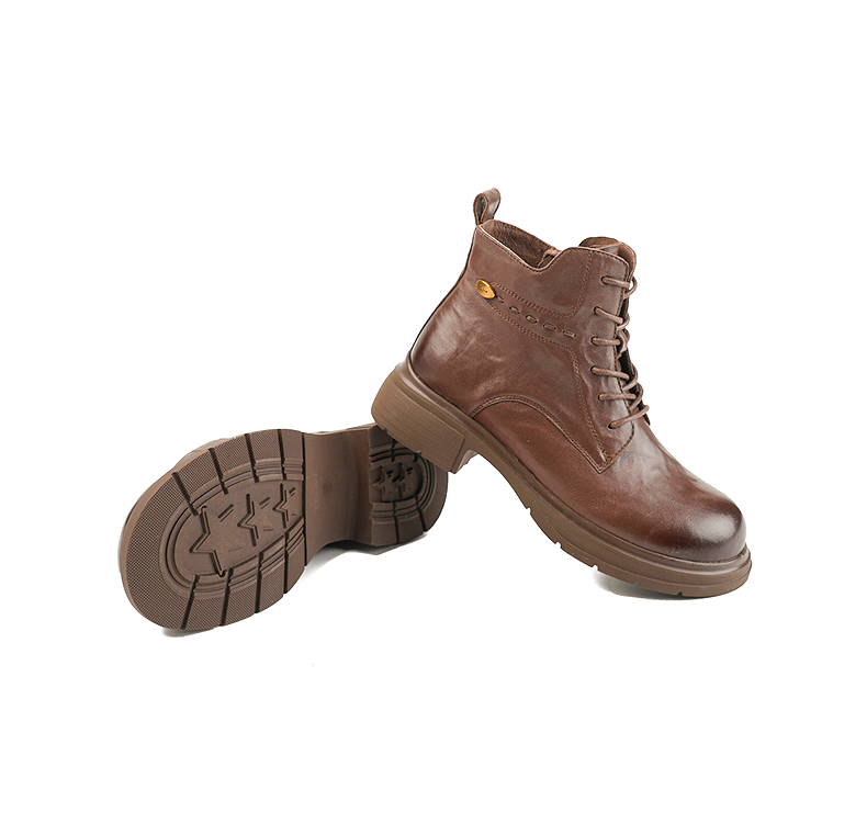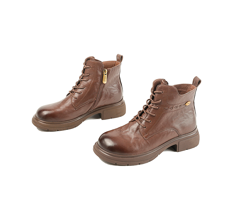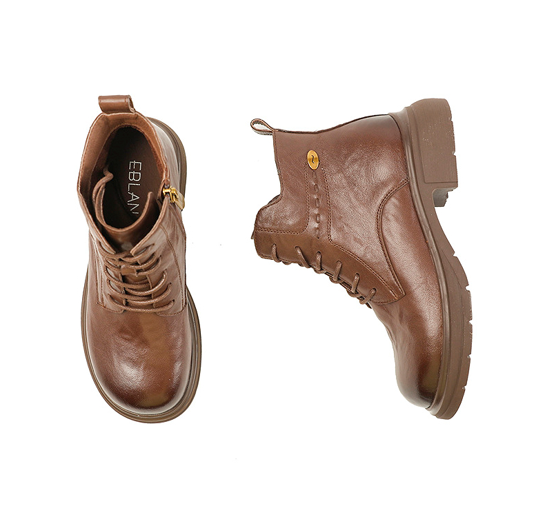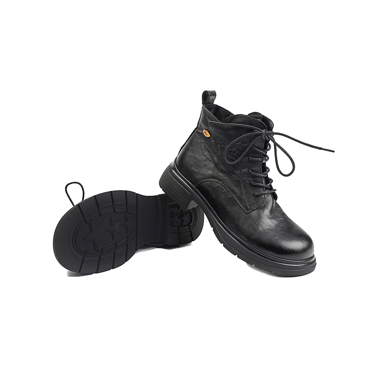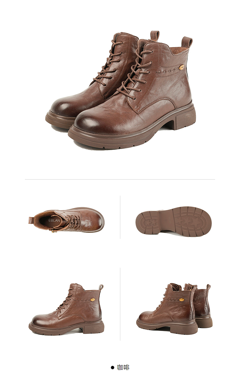 伊伴冬季植鞣油蜡羊皮质感鞋面潮酷皮靴女鞋B25509910