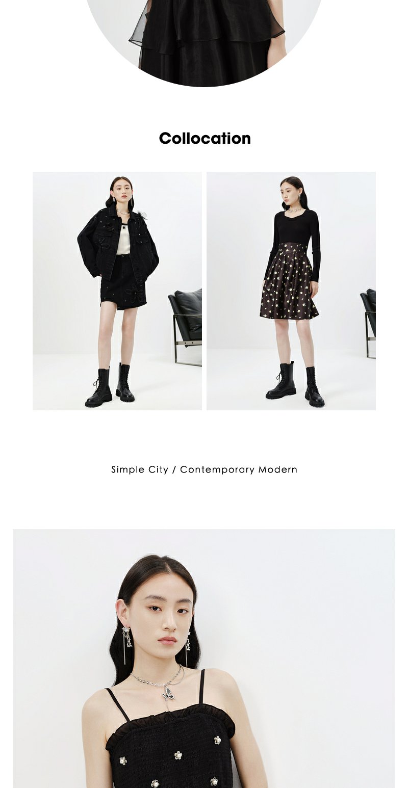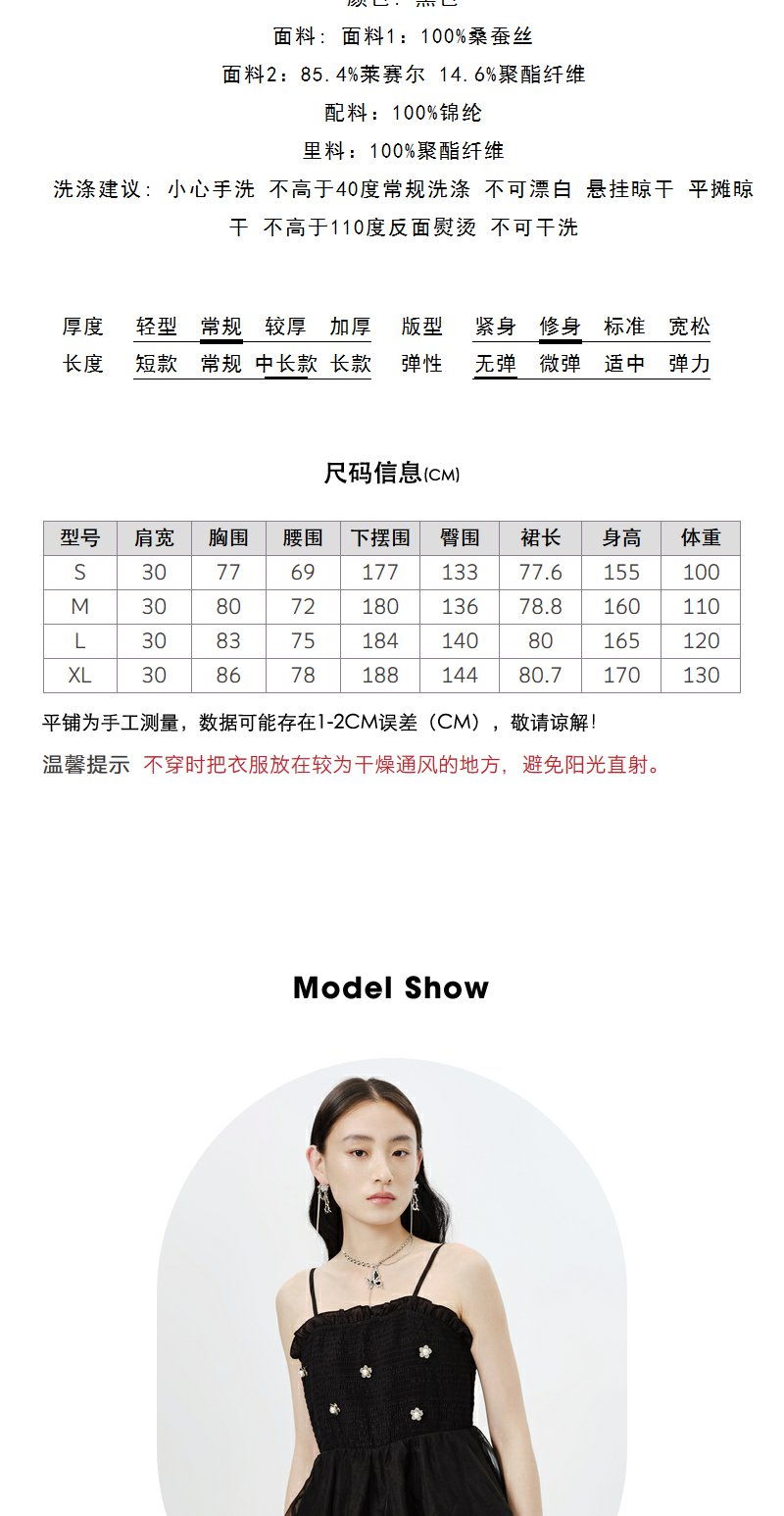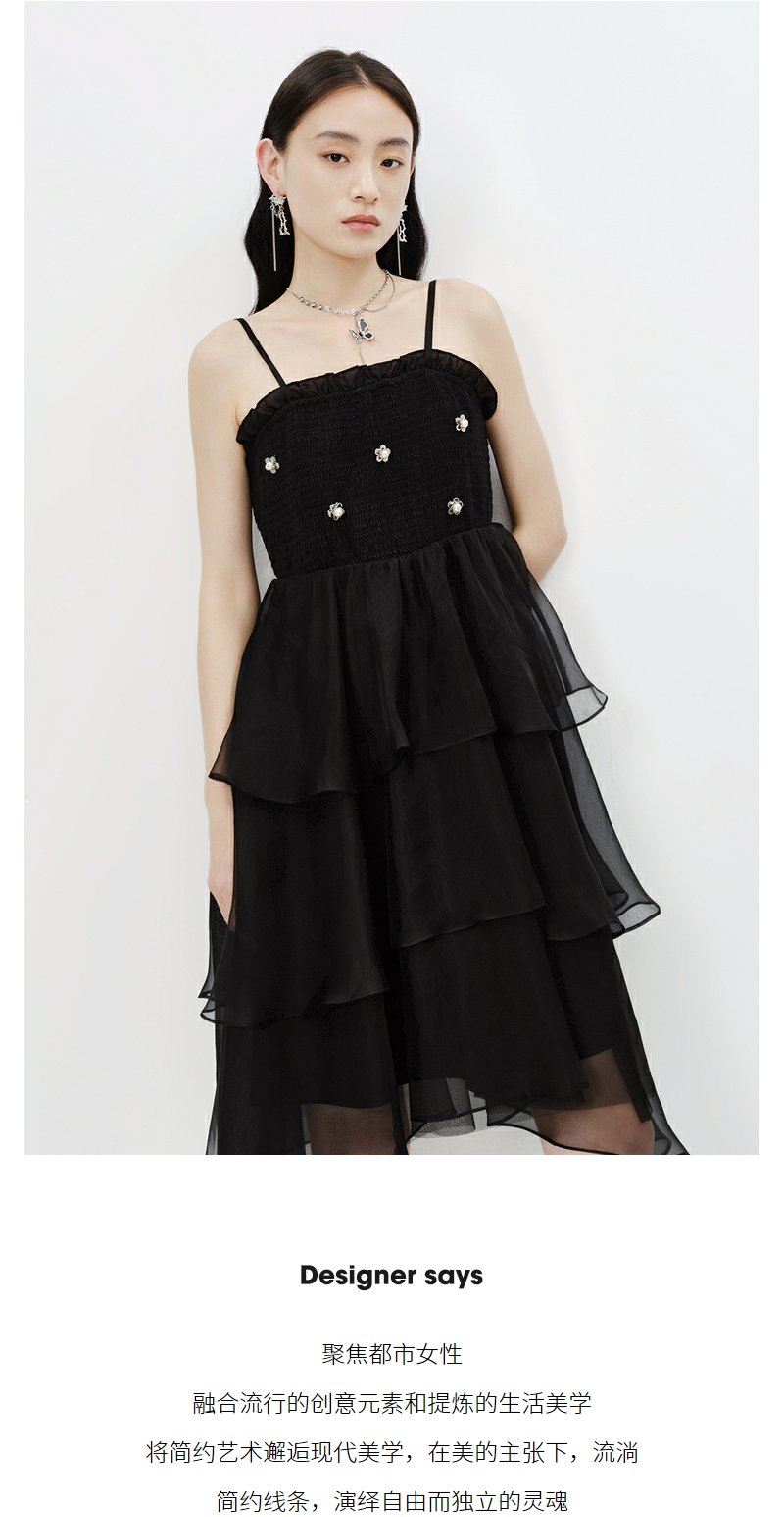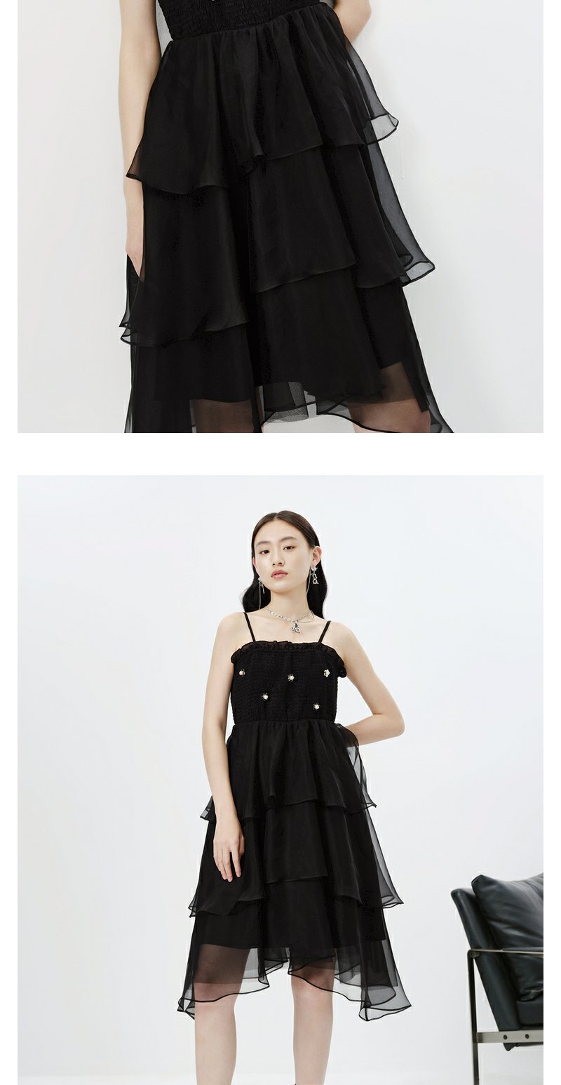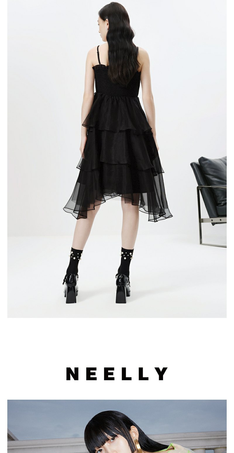 NEELLY纳俪商场同款黑色吊带连衣裙女春夏新款中长款A字蓬蓬裙N23023Y01130
