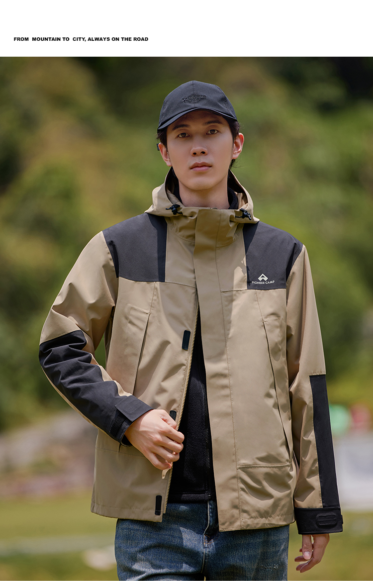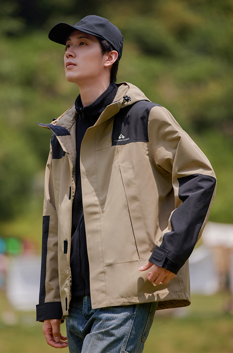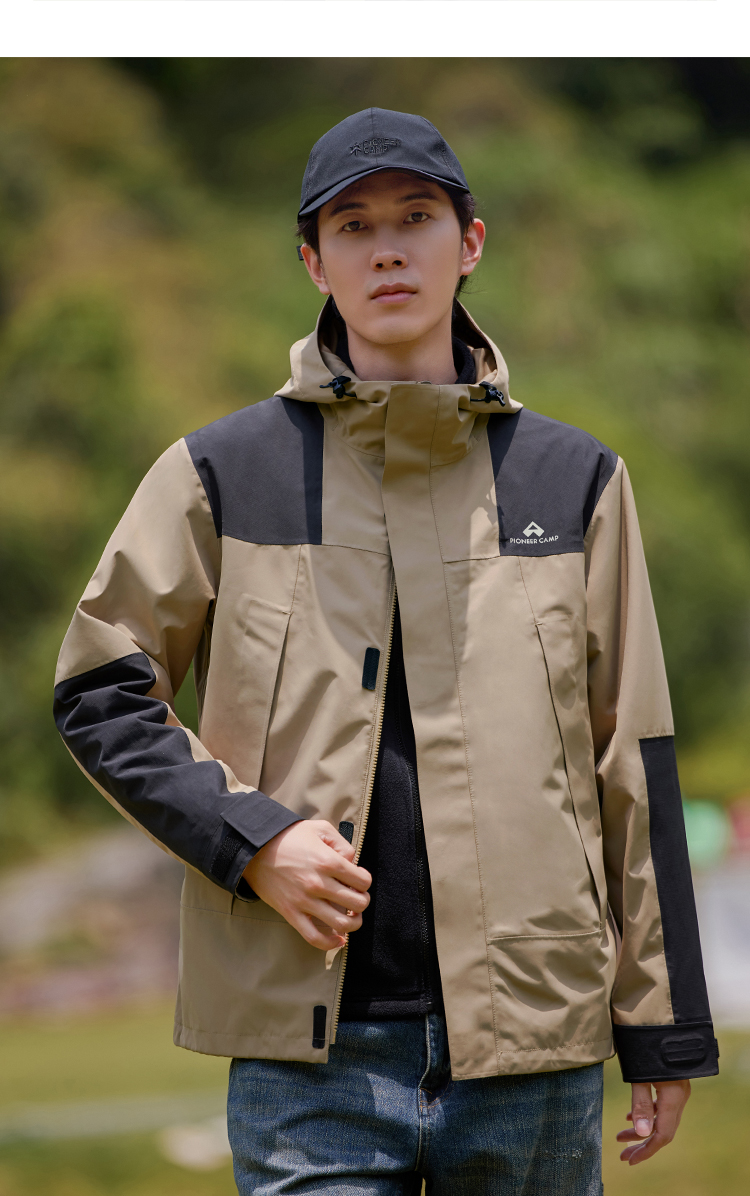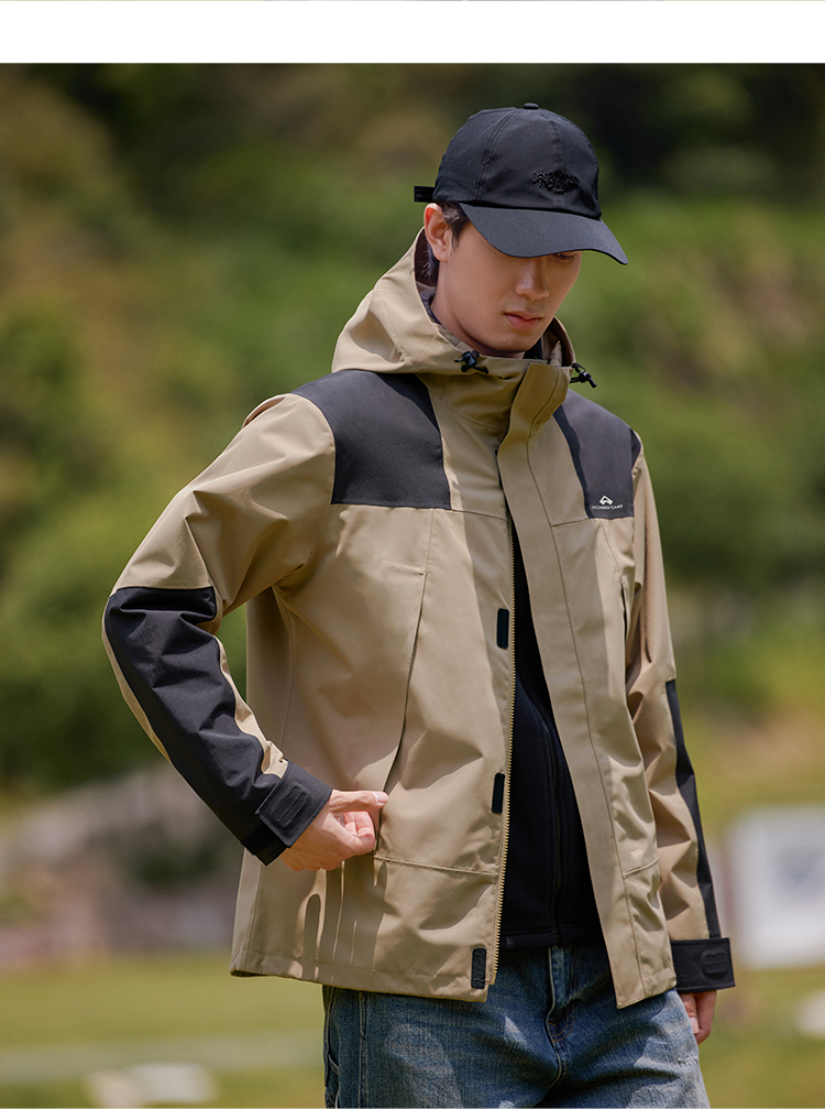 【179秒杀】拓路者春秋防水冲锋衣连帽撞色单冲拼接男式夹克外套