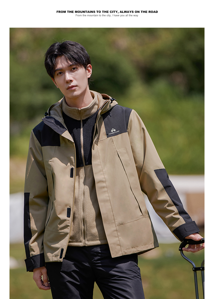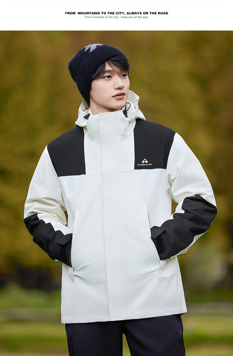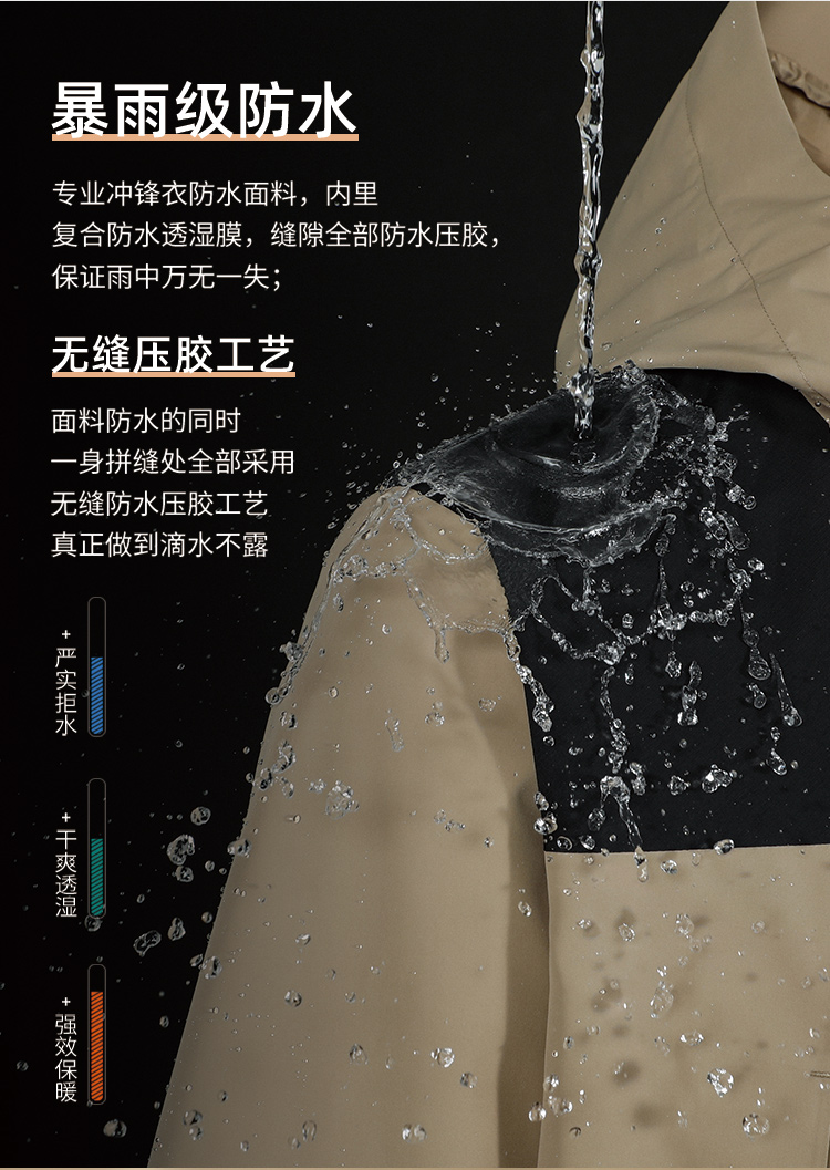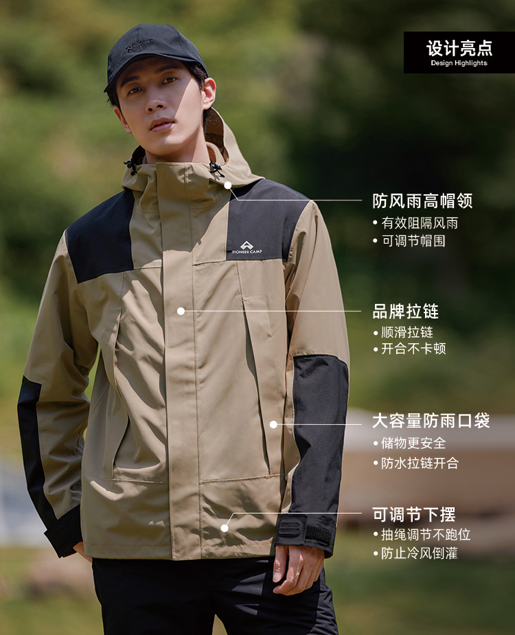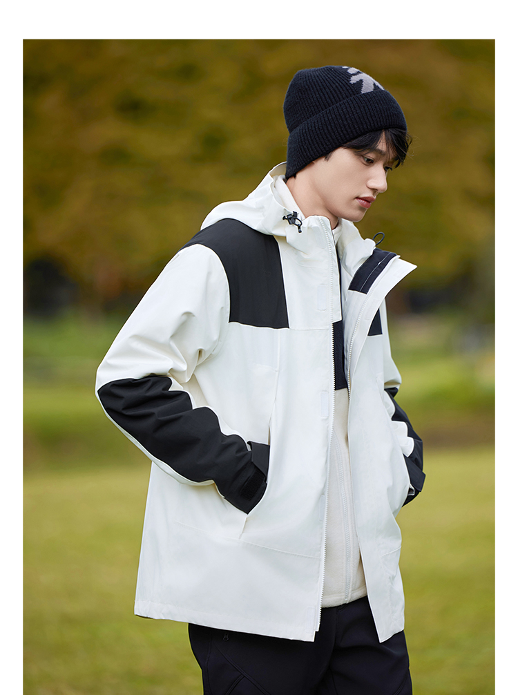 【179秒杀】拓路者春秋防水冲锋衣连帽撞色单冲拼接男式夹克外套