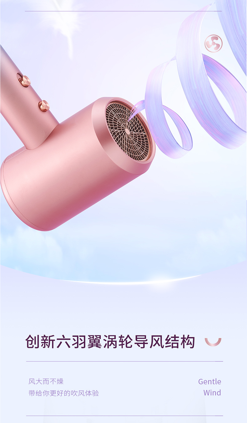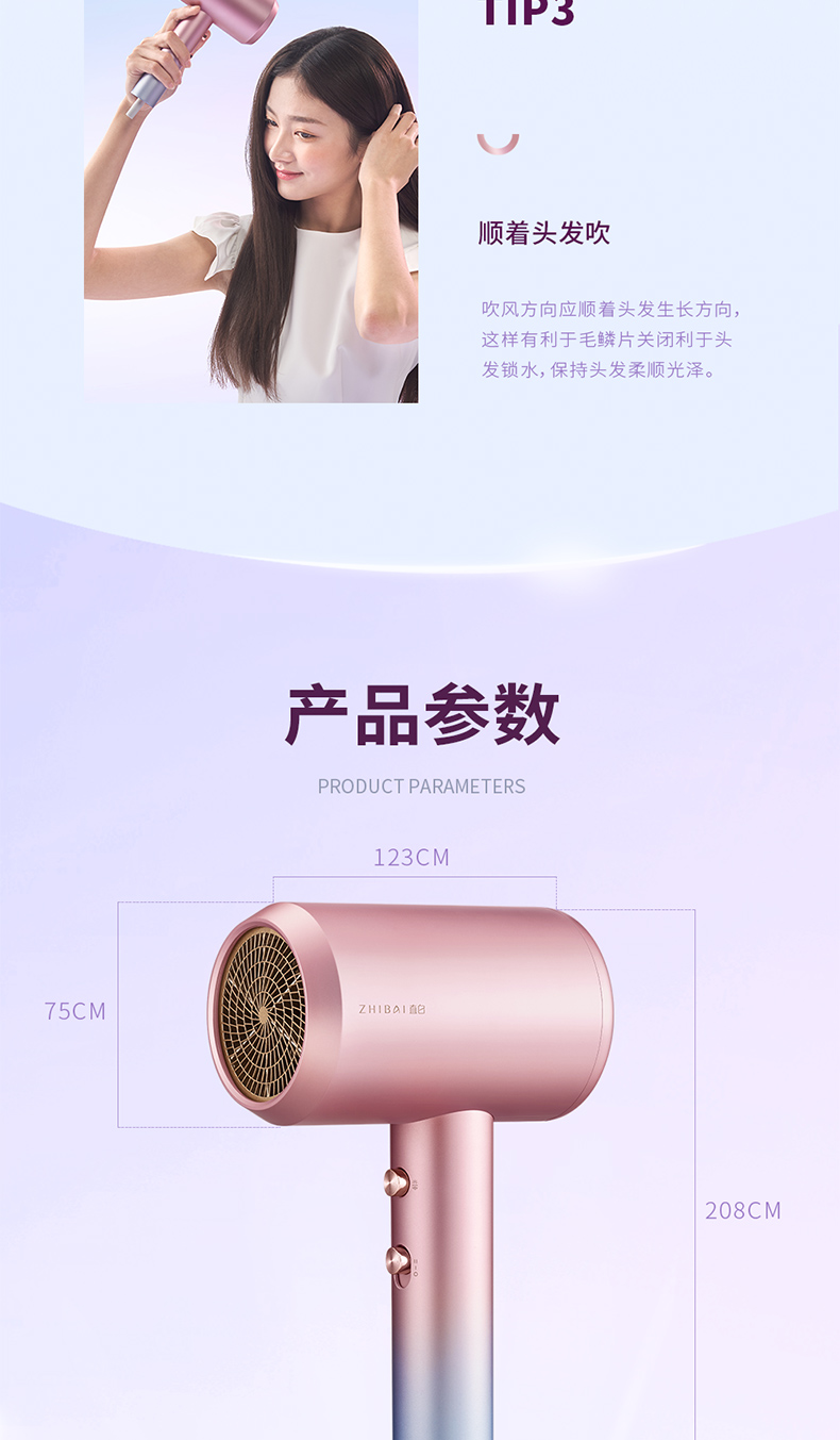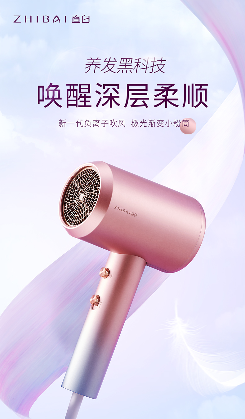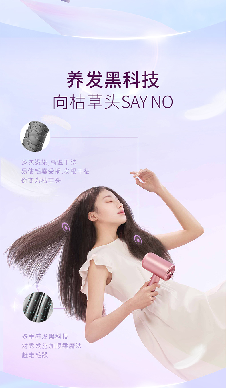 直白吹风机家用吹风筒负离子护发冷热风理发店速干 HL505青春版