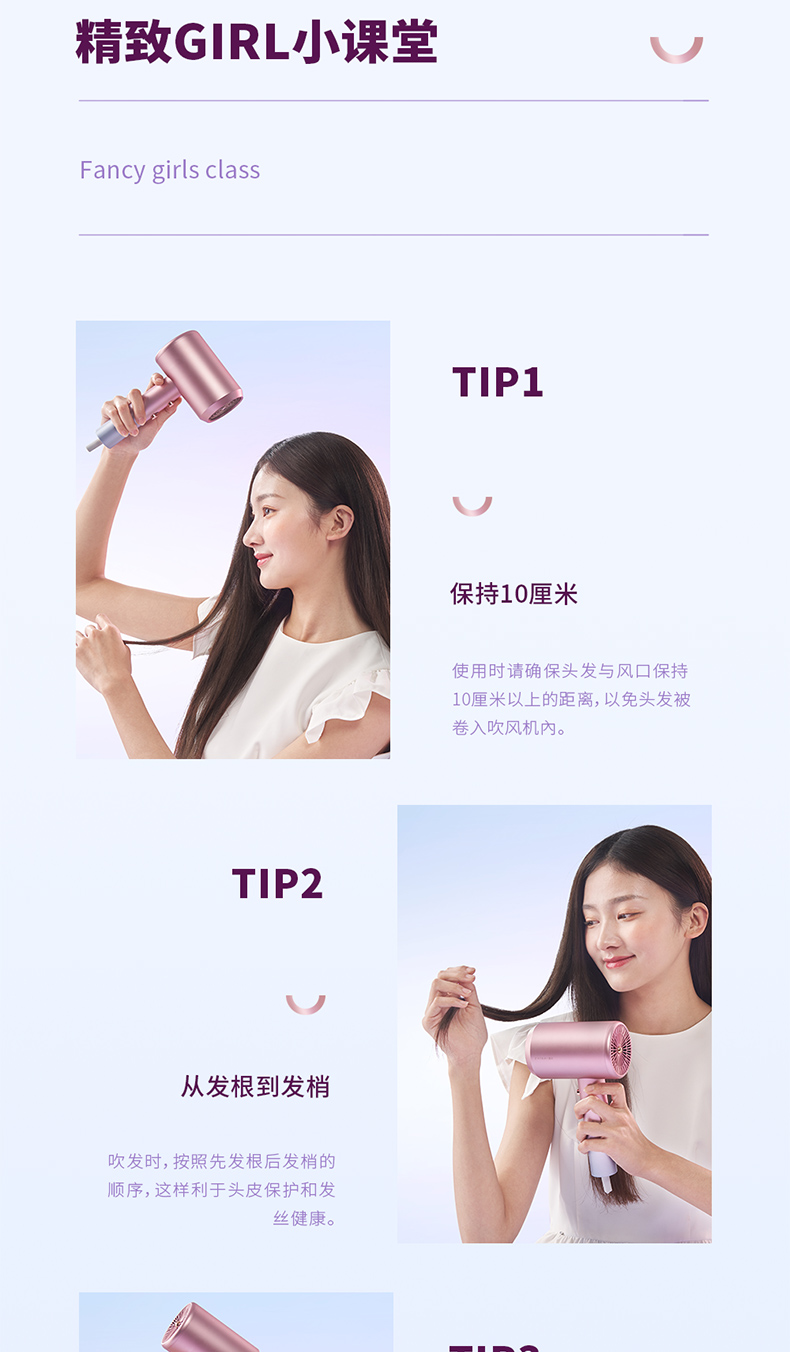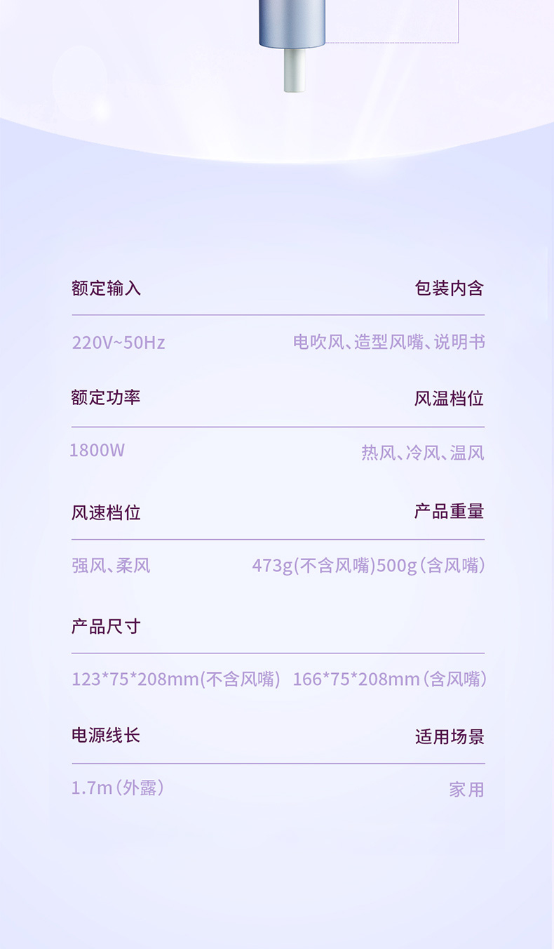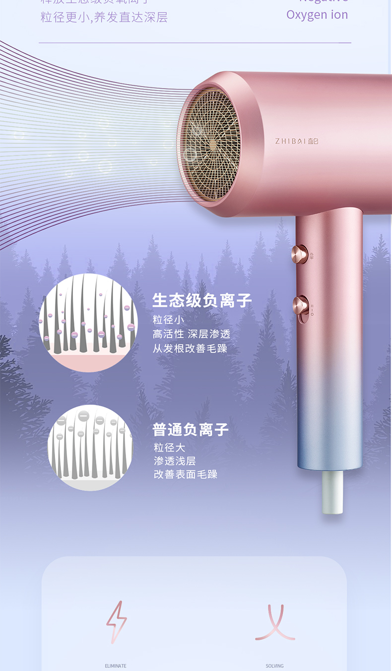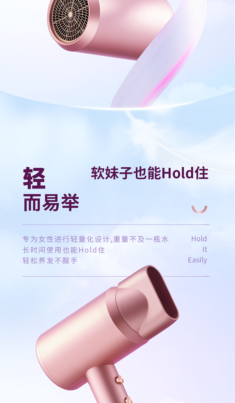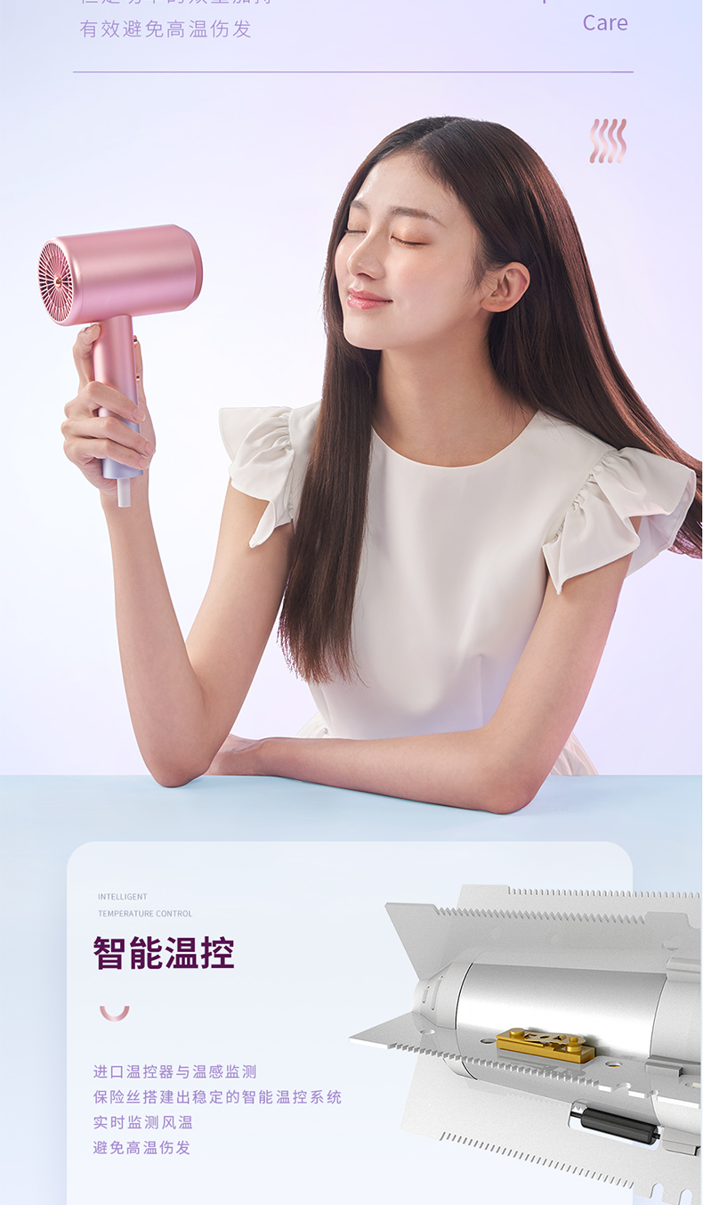 直白吹风机家用吹风筒负离子护发冷热风理发店速干 HL505青春版