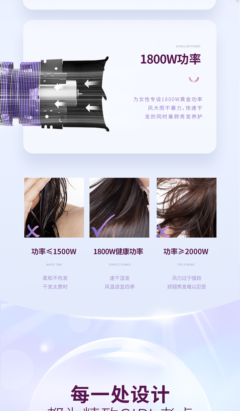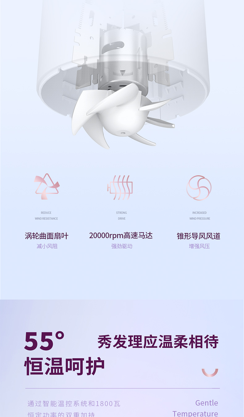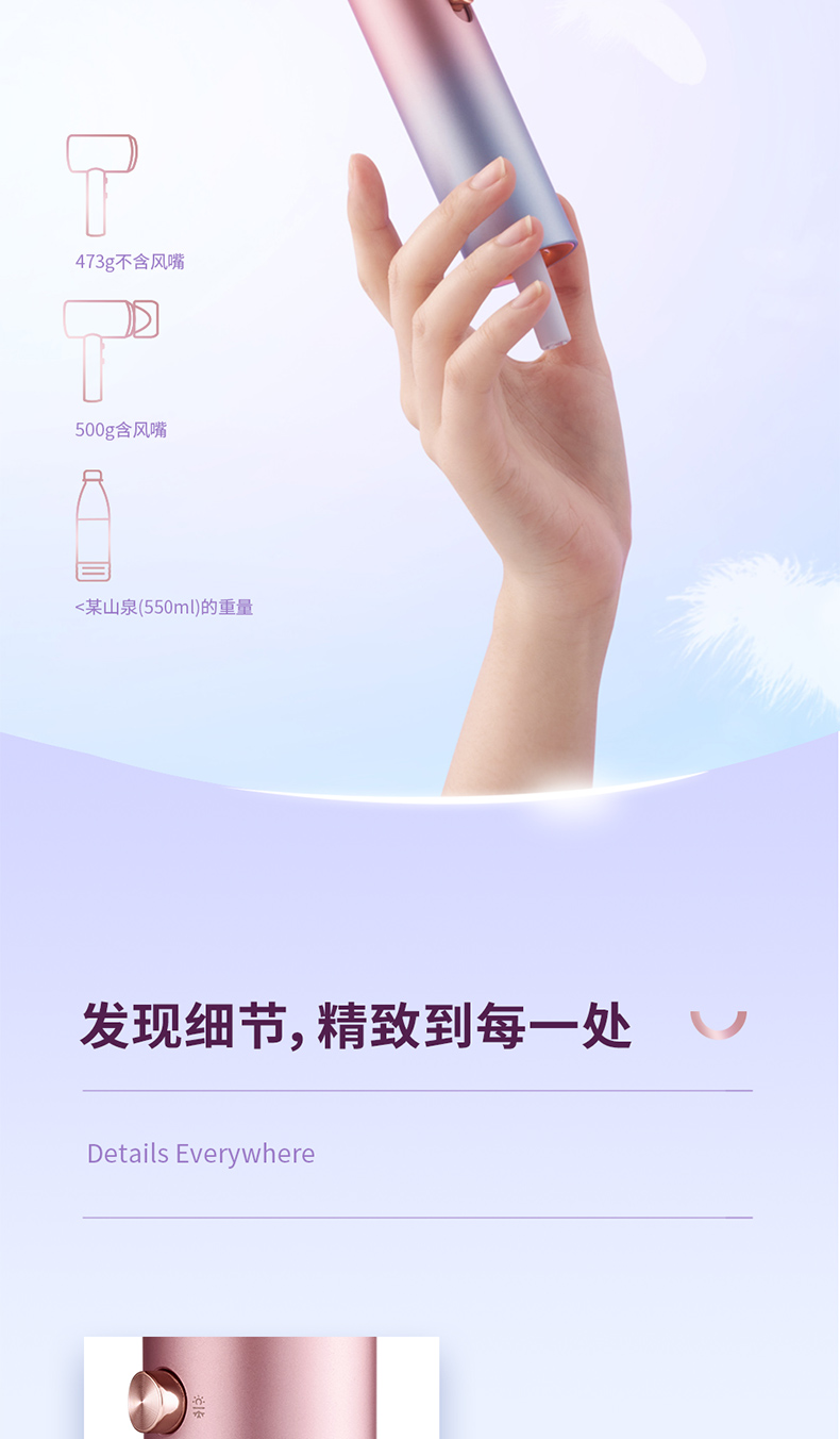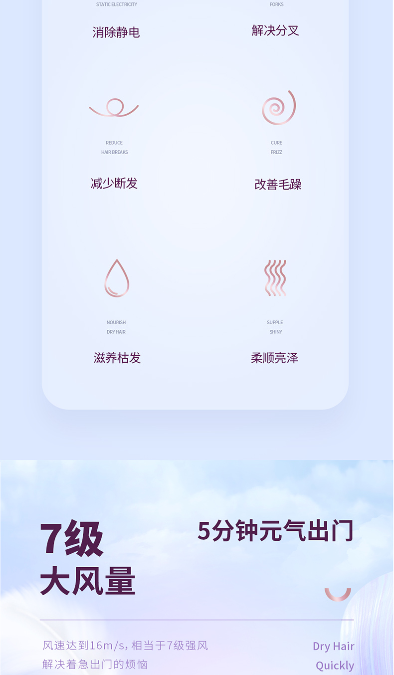 直白吹风机家用吹风筒负离子护发冷热风理发店速干 HL505青春版