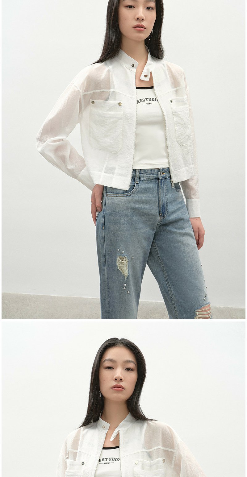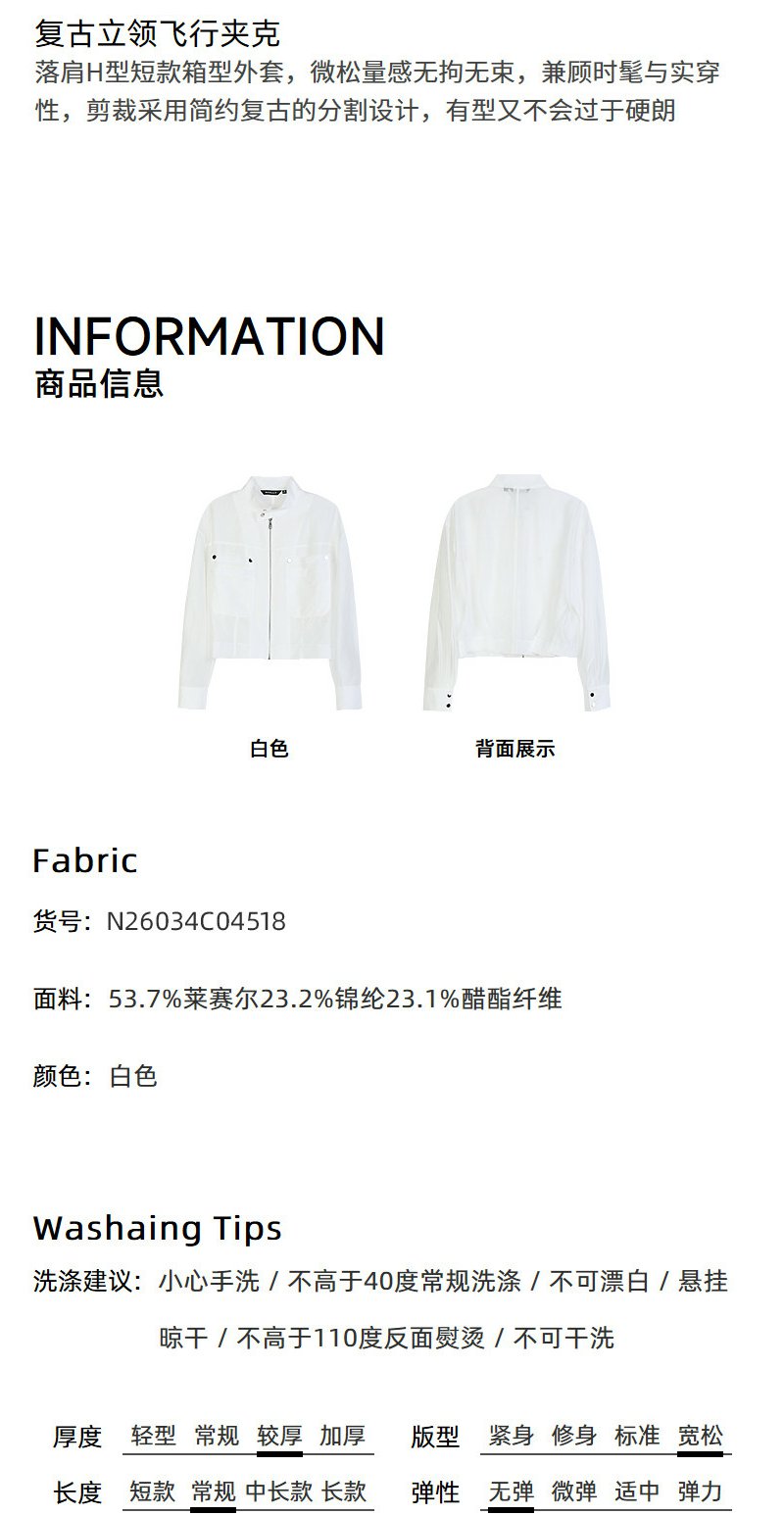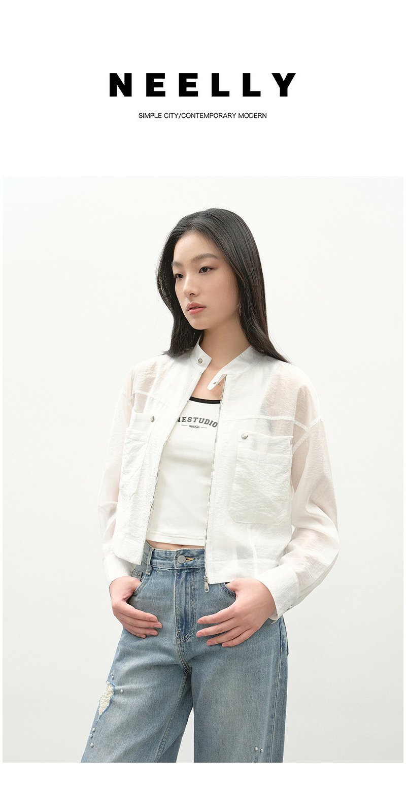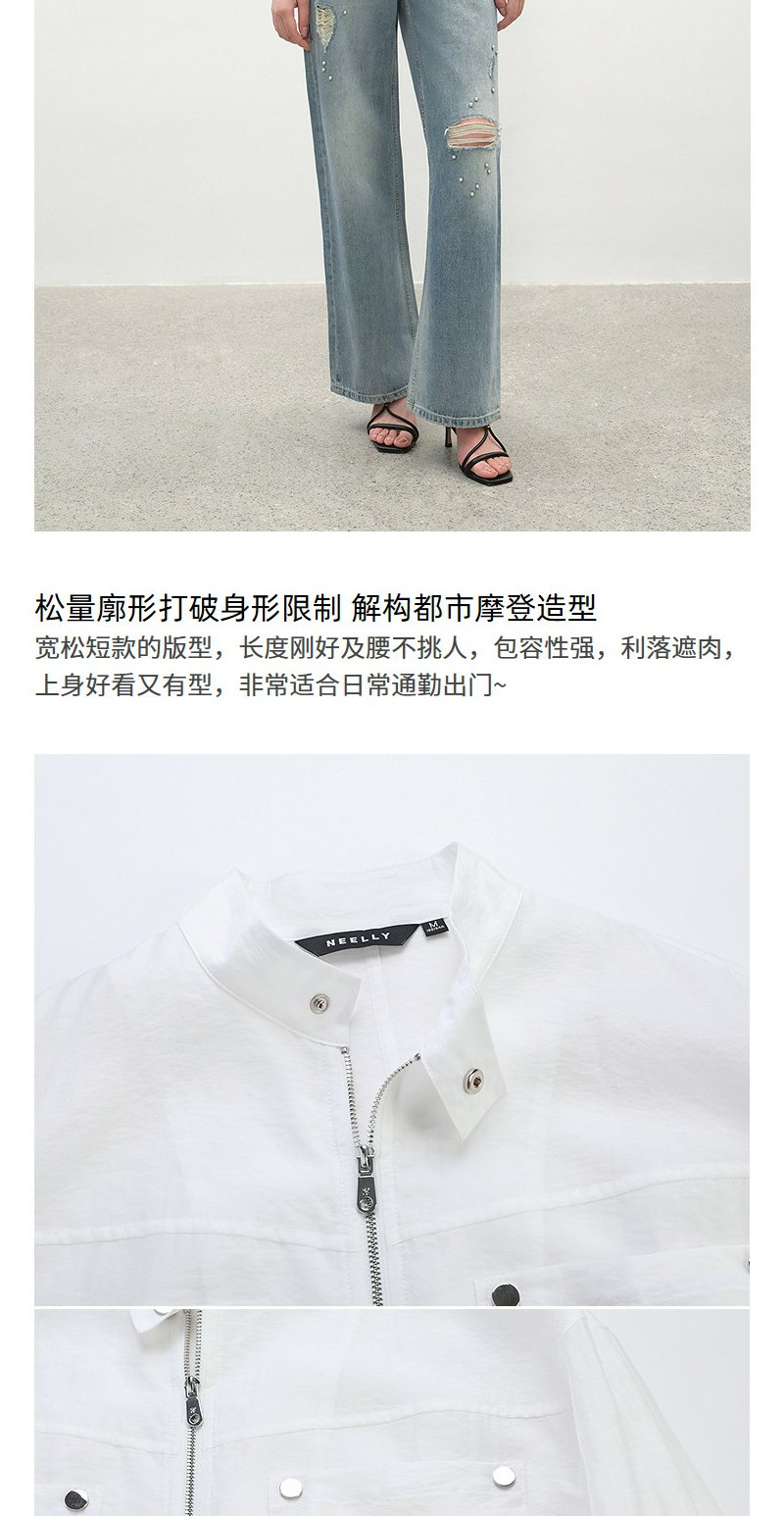 NEELLY纳俪商场同款春季新款浅色简约立领夹克女休闲随性短外套N26034C04518