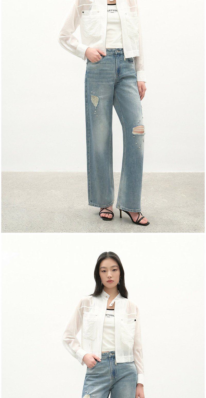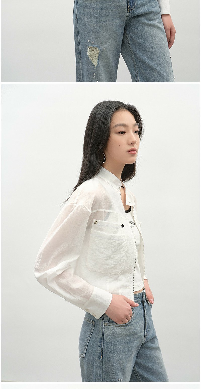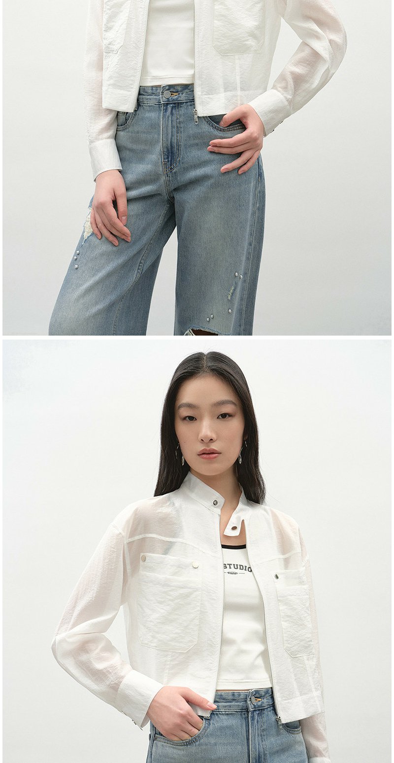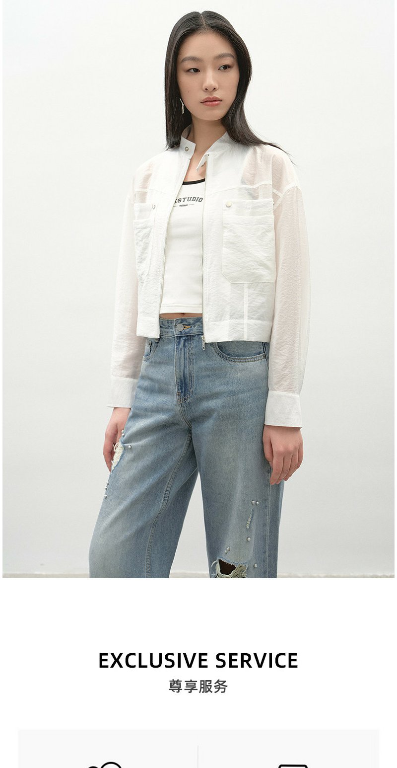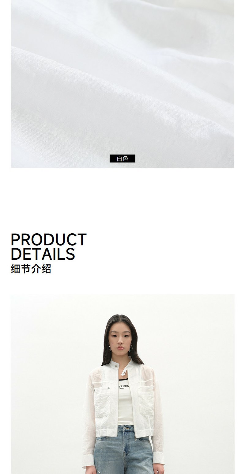 NEELLY纳俪商场同款春季新款浅色简约立领夹克女休闲随性短外套N26034C04518