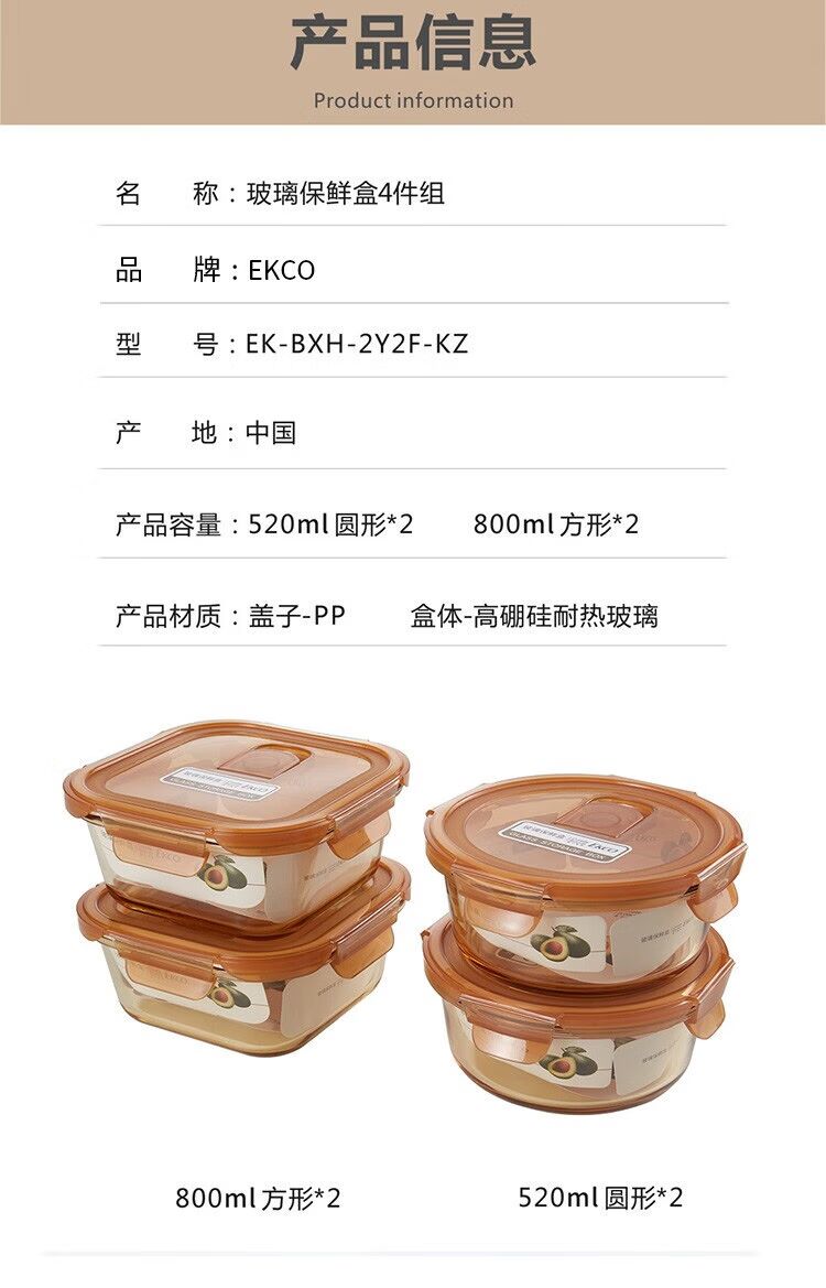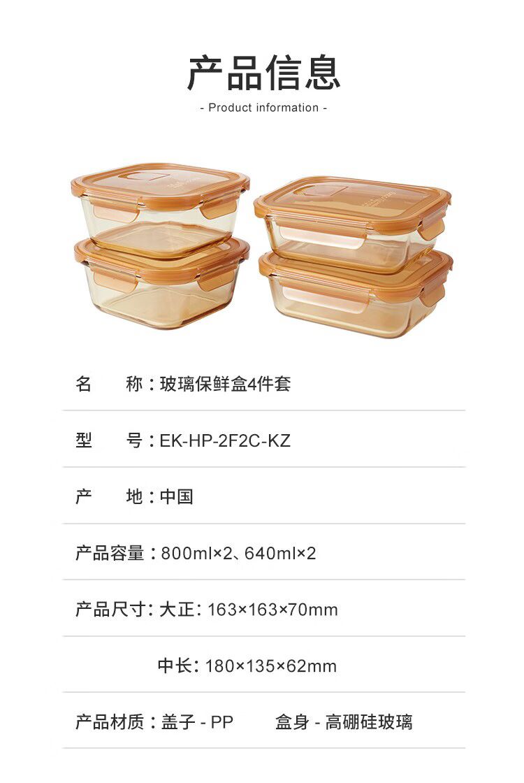 康宁玻璃饭盒玻璃保鲜盒便携便当盒 琥珀色保鲜盒四件套A