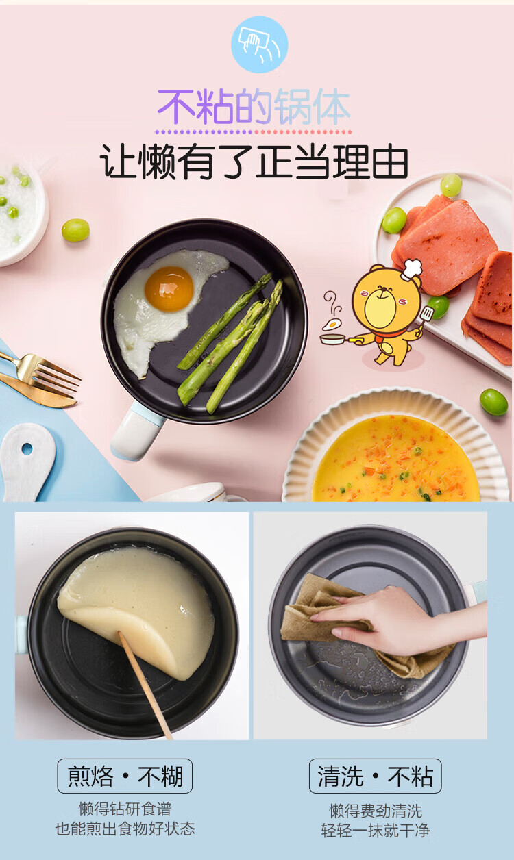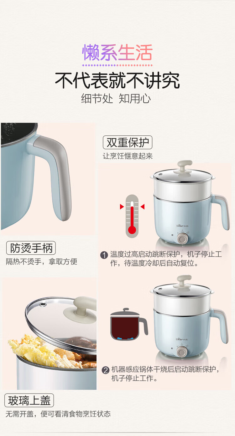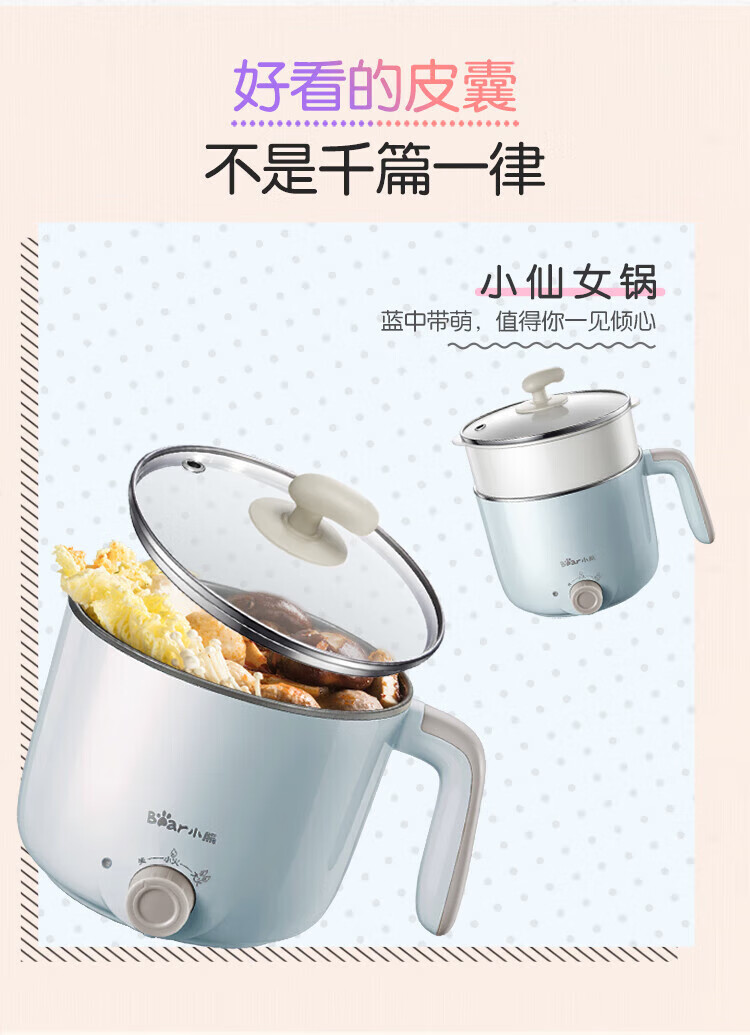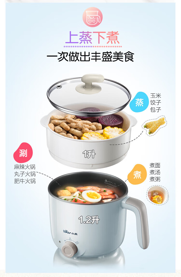 小熊(Bear) DRG-C12R5 蒸笼款 电煮锅小电锅电火锅多功能电热锅1.2L