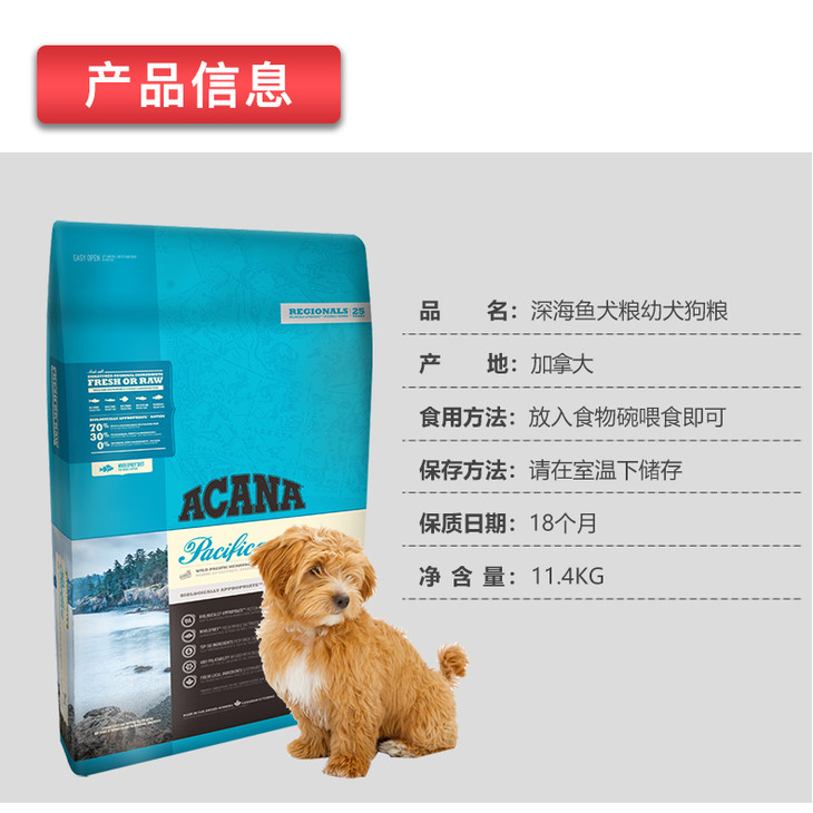 【保税仓】加拿大Acana爱肯拿地域系列太平洋深海鱼配方幼犬成犬全犬粮 11.4 kg