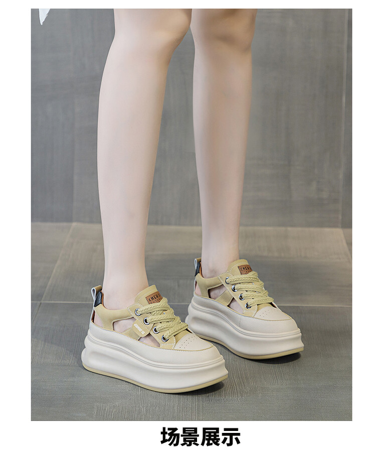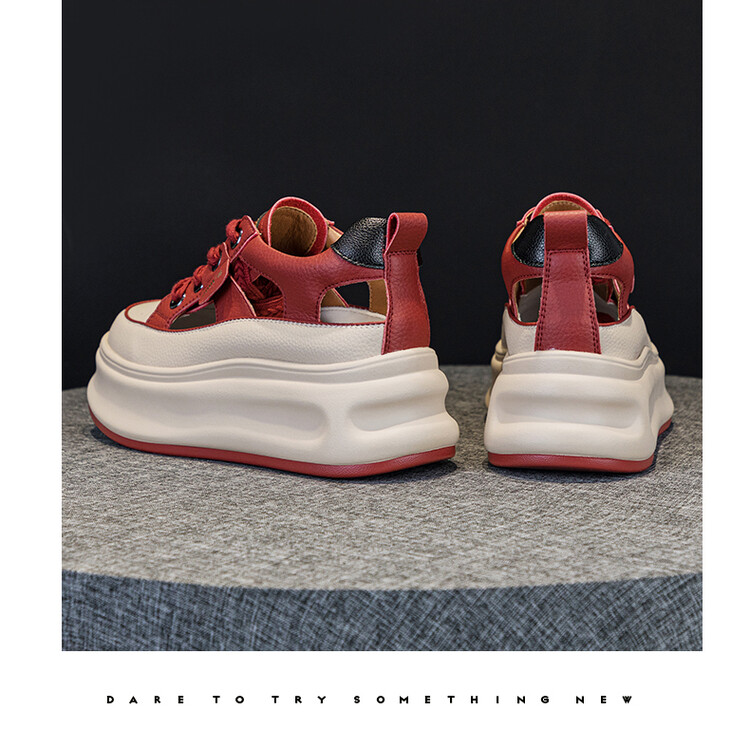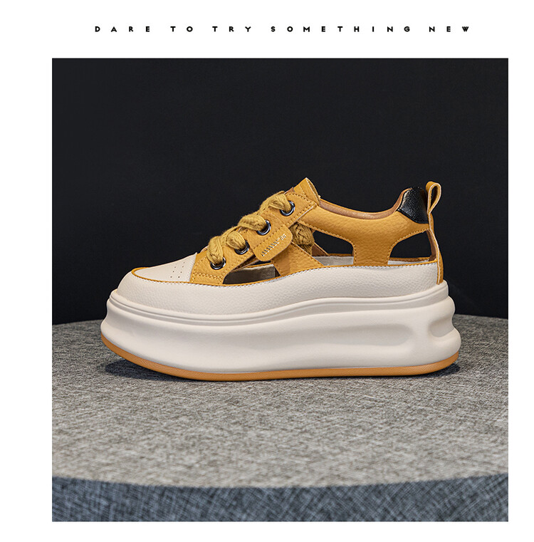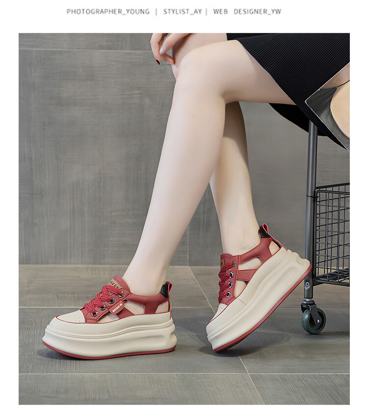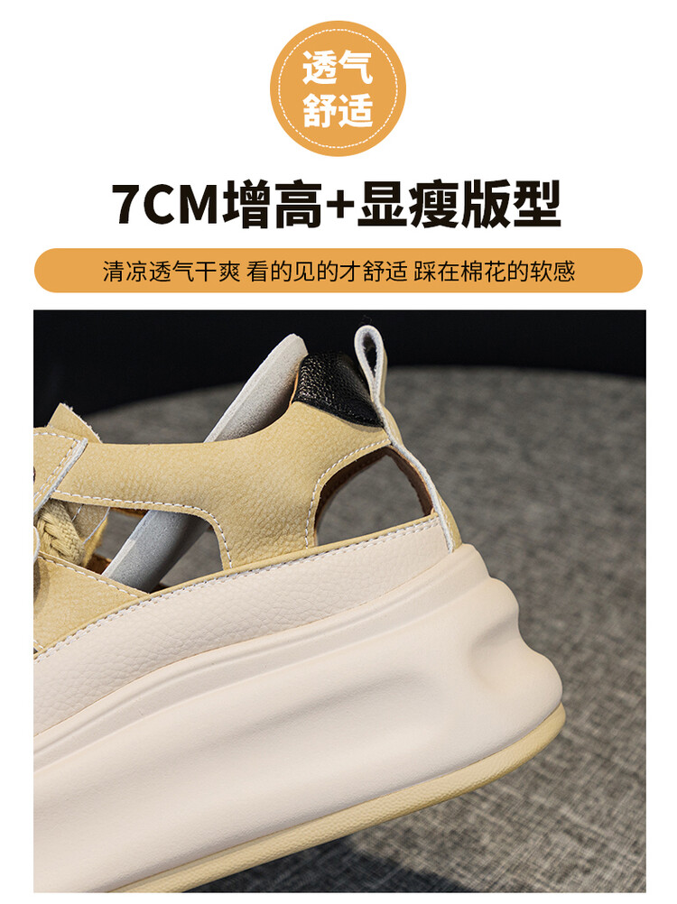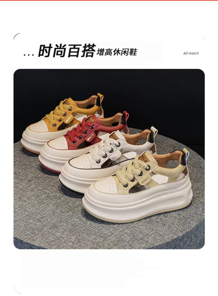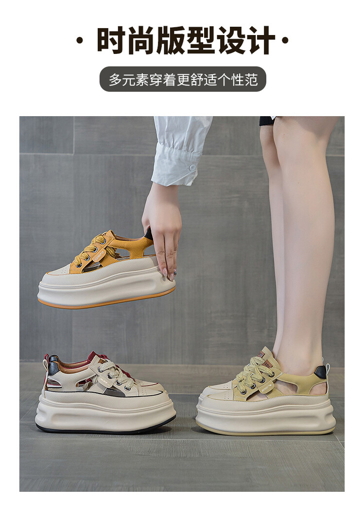 【预售5天】真皮运动凉鞋女款2024夏季新款内增高厚底洞洞鞋镂空透气复古HFE&5558