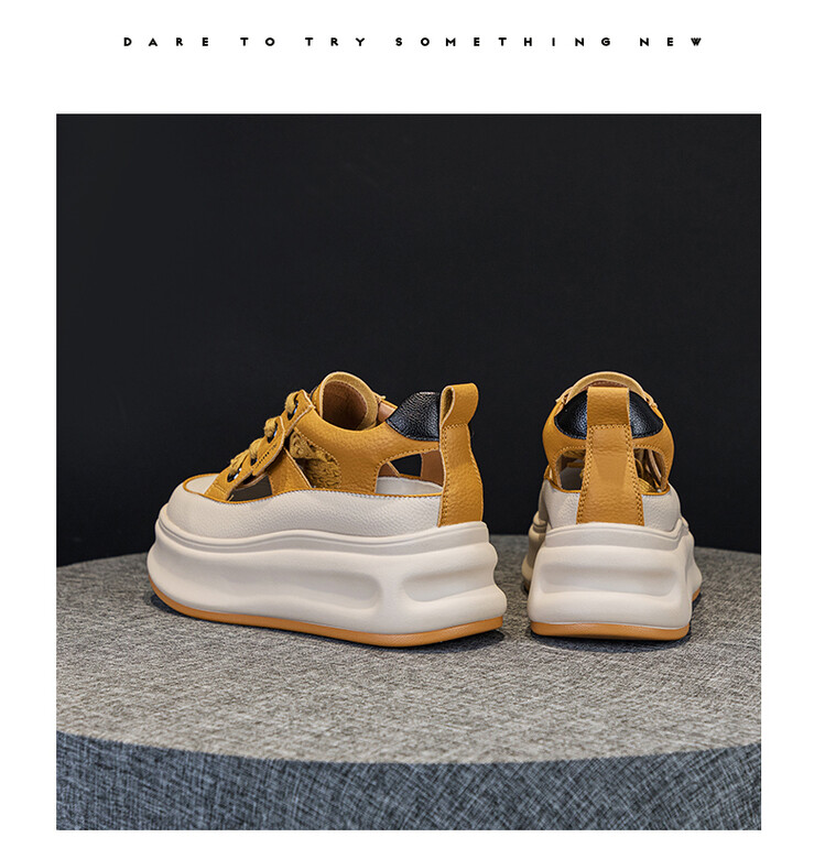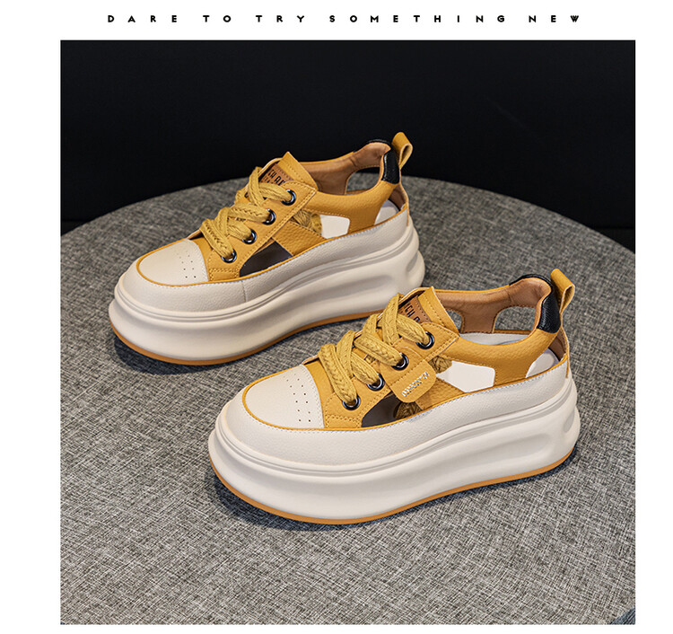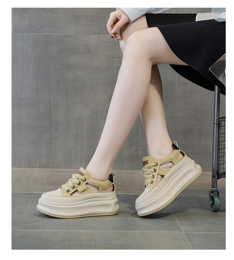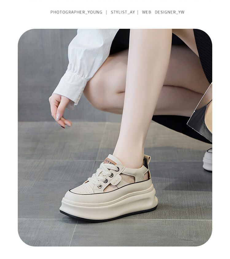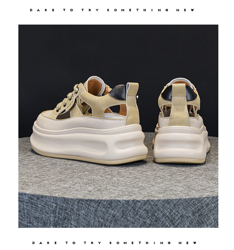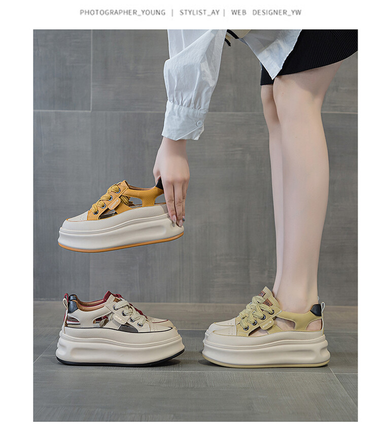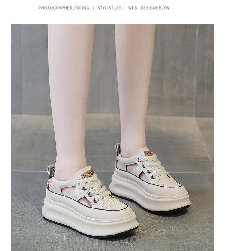 【预售5天】真皮运动凉鞋女款2024夏季新款内增高厚底洞洞鞋镂空透气复古HFE&5558