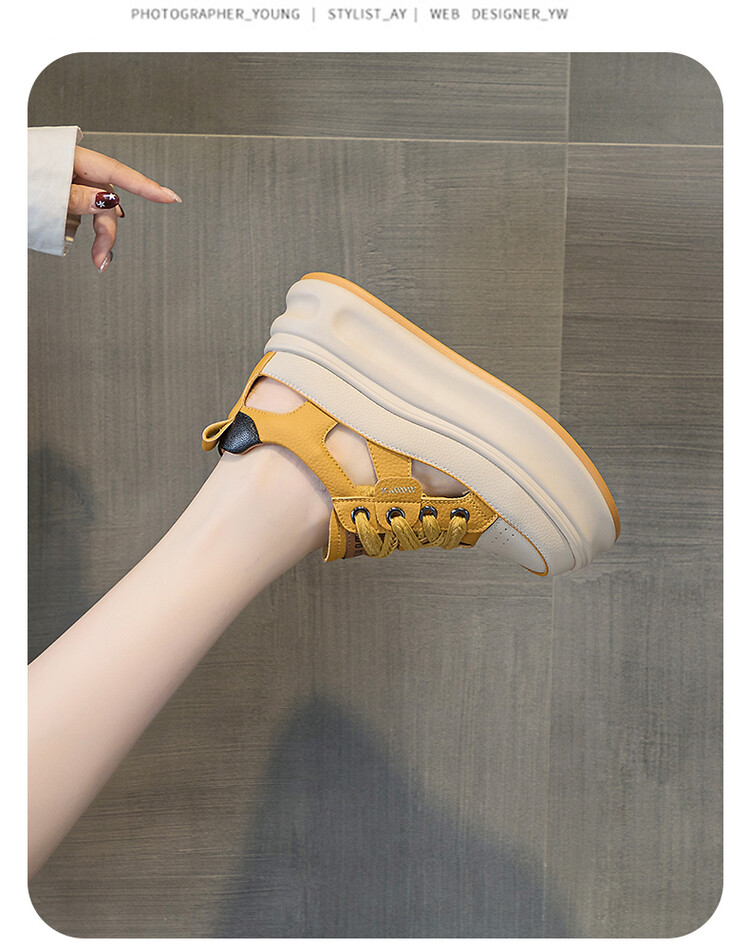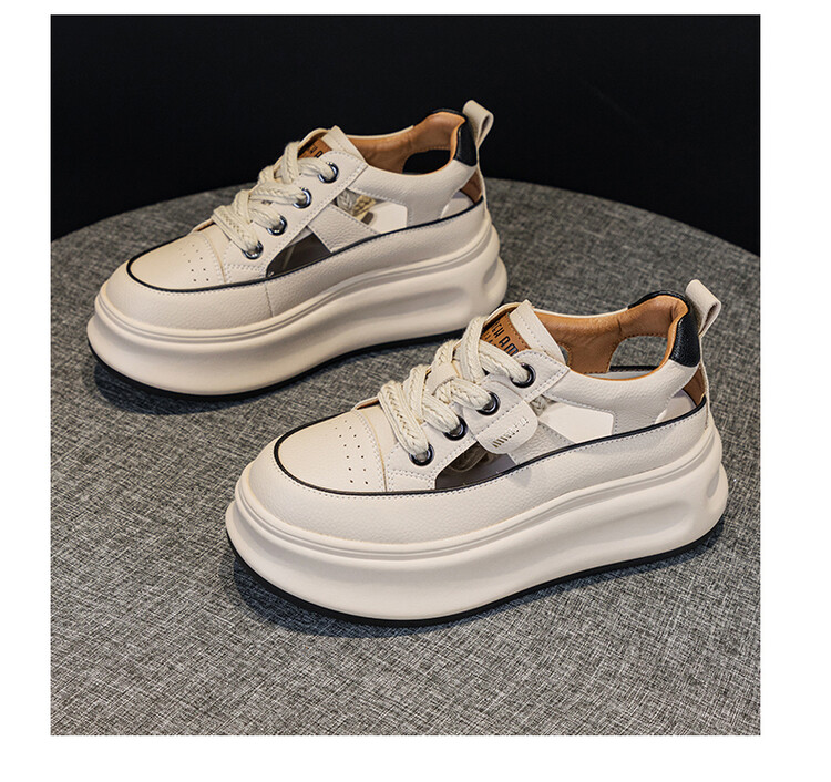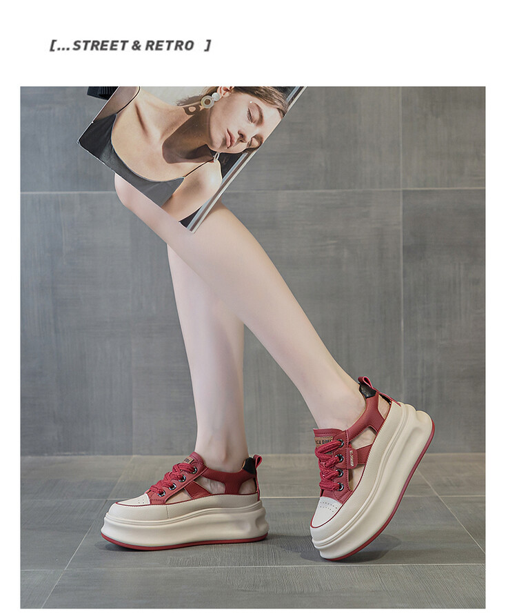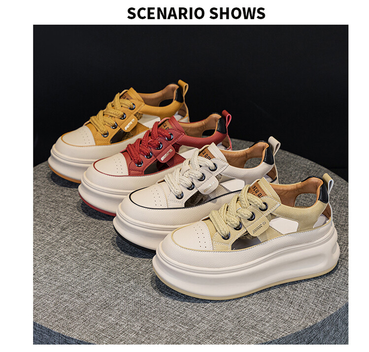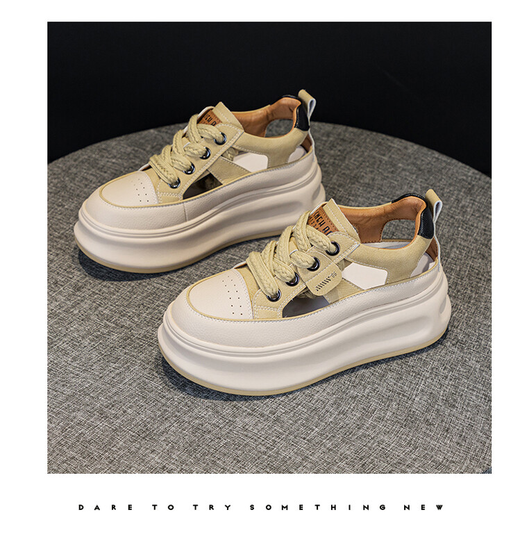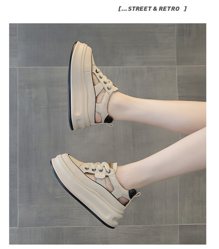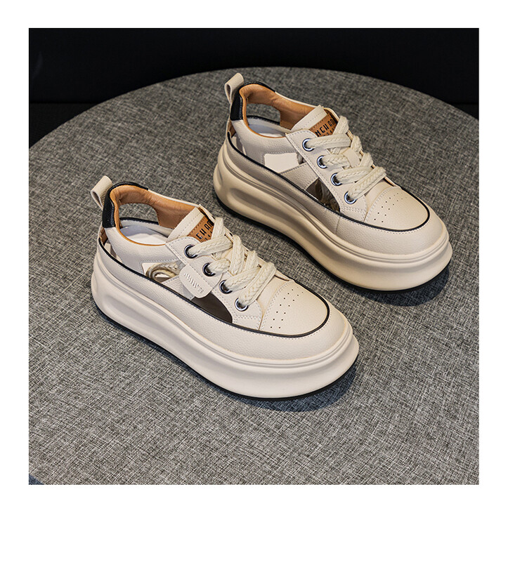 【预售5天】真皮运动凉鞋女款2024夏季新款内增高厚底洞洞鞋镂空透气复古HFE&5558
