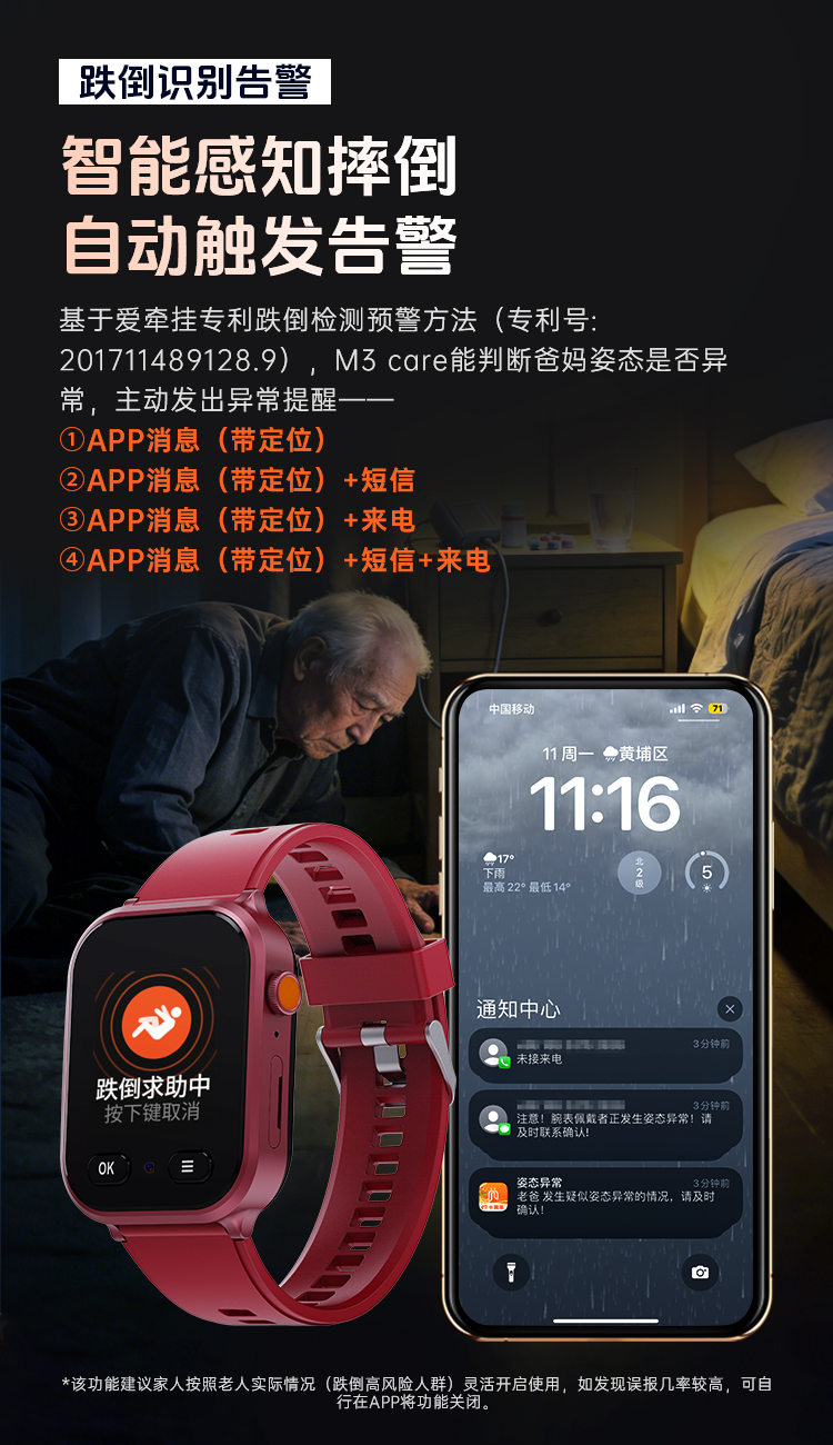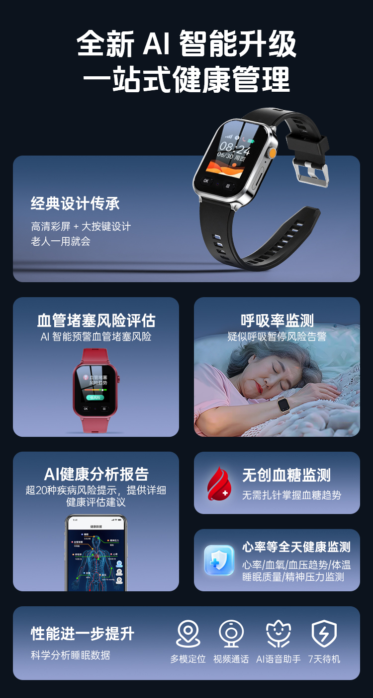 老人定位器电话手表跌倒自动报警专用防走丢血糖研究血压血氧心率监测远程通话gps健康智能手环成人可插卡