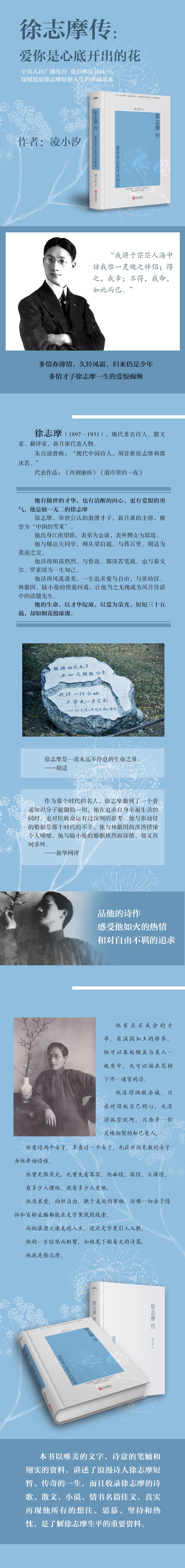 “我将于茫茫人海中访我惟一灵魂之伴侣;得之,我幸;不得,我命,如此而已。”他有点石成金的才华,有温润如玉的修养,他可以卷起铺盖与友人一起坐牢,也可以站在花树下作一通宵的诗。他活得洒脱赤诚,只求对得起自己的心,也活得孤苦坎坷,只为寻一位灵魂相契的知己爱人。他爱过两个女子,辜负过一个女子,也让世间无数的女子为他牵动情愫。他曾无限荣光,也曾失意落寞。他痴情,深情,又薄情。有多少人憎他,就有多少人爱他。他追求爱,向往自由,耽于美好的事物,仿佛一切赤子情怀和百转柔肠都能在文字里找到线索。而他浪漫又凄美的人生,远比文字更引人入胜。他的一生惊艳而短暂,如他笔下凝着火的诗篇。他就是徐志摩。徐志摩(1897―1931),现代有名诗人、散文家、翻译家,新月派代表人物。朱自清曾称:“现代中国诗人,须首推徐志摩和郭沫若。”代表作品:《再别康桥》《翡冷翠的一夜》