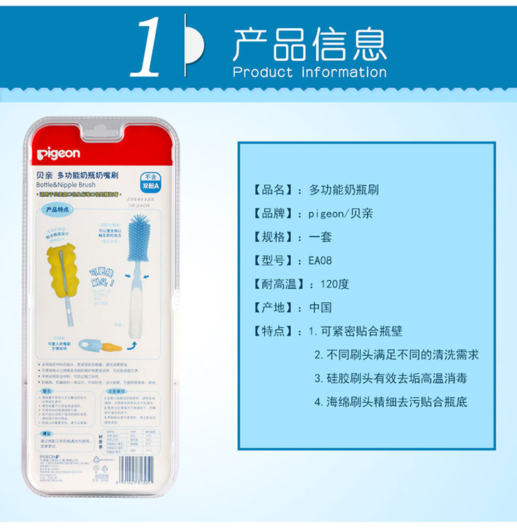【一般贸易】贝亲—多功能奶瓶奶嘴刷 EA08