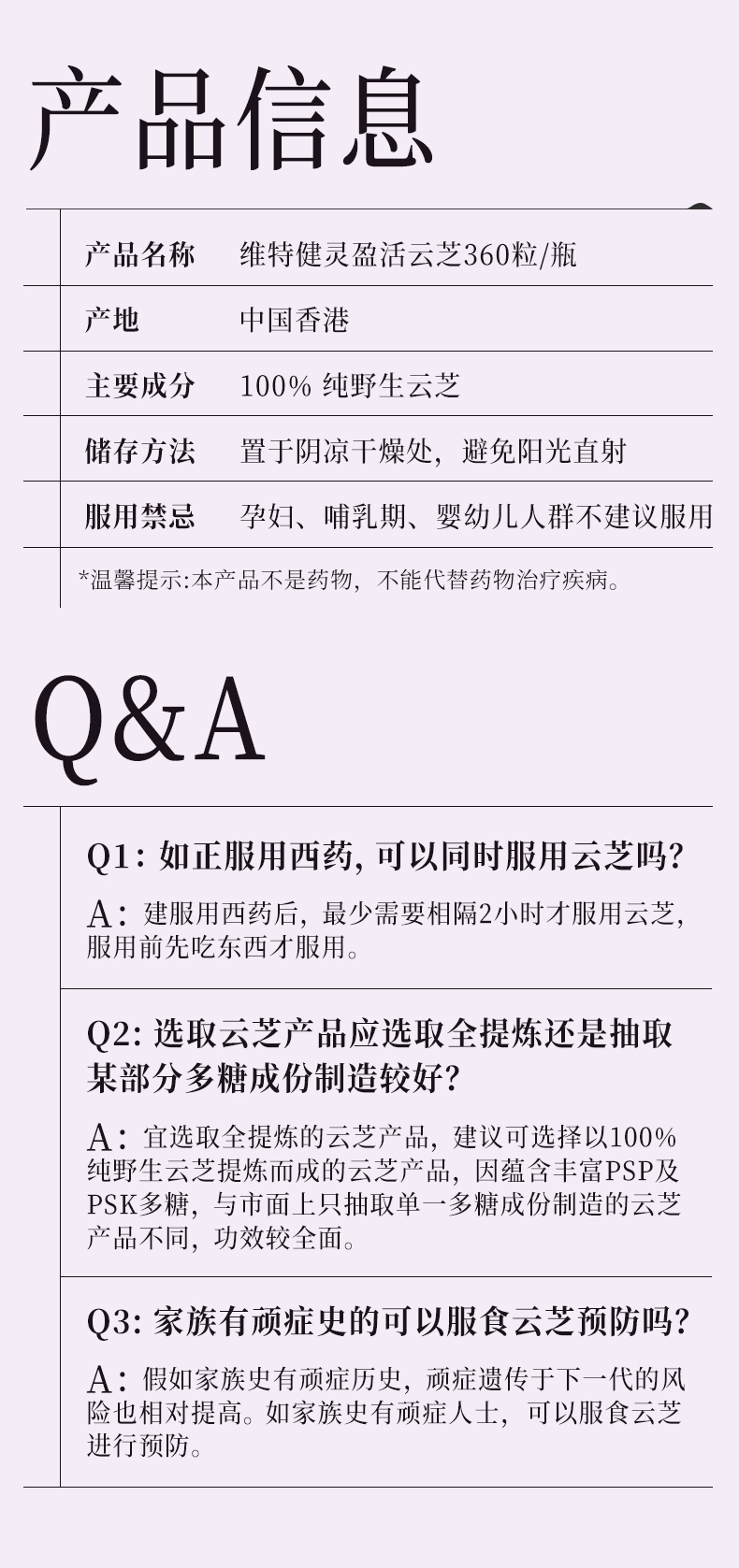【1盒/3盒】Vitagreen维特健灵 盈活云芝胶囊60粒/盒 A-4981