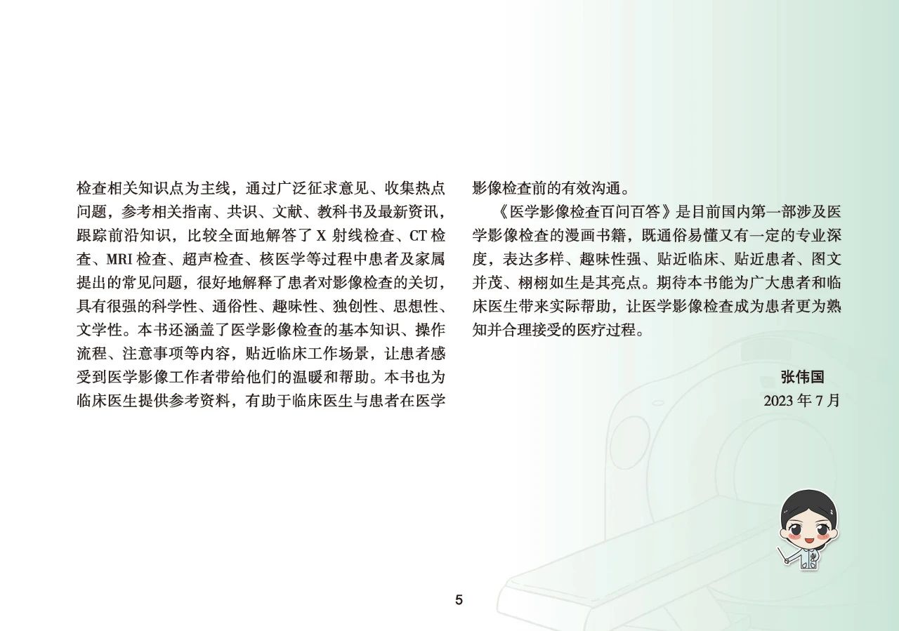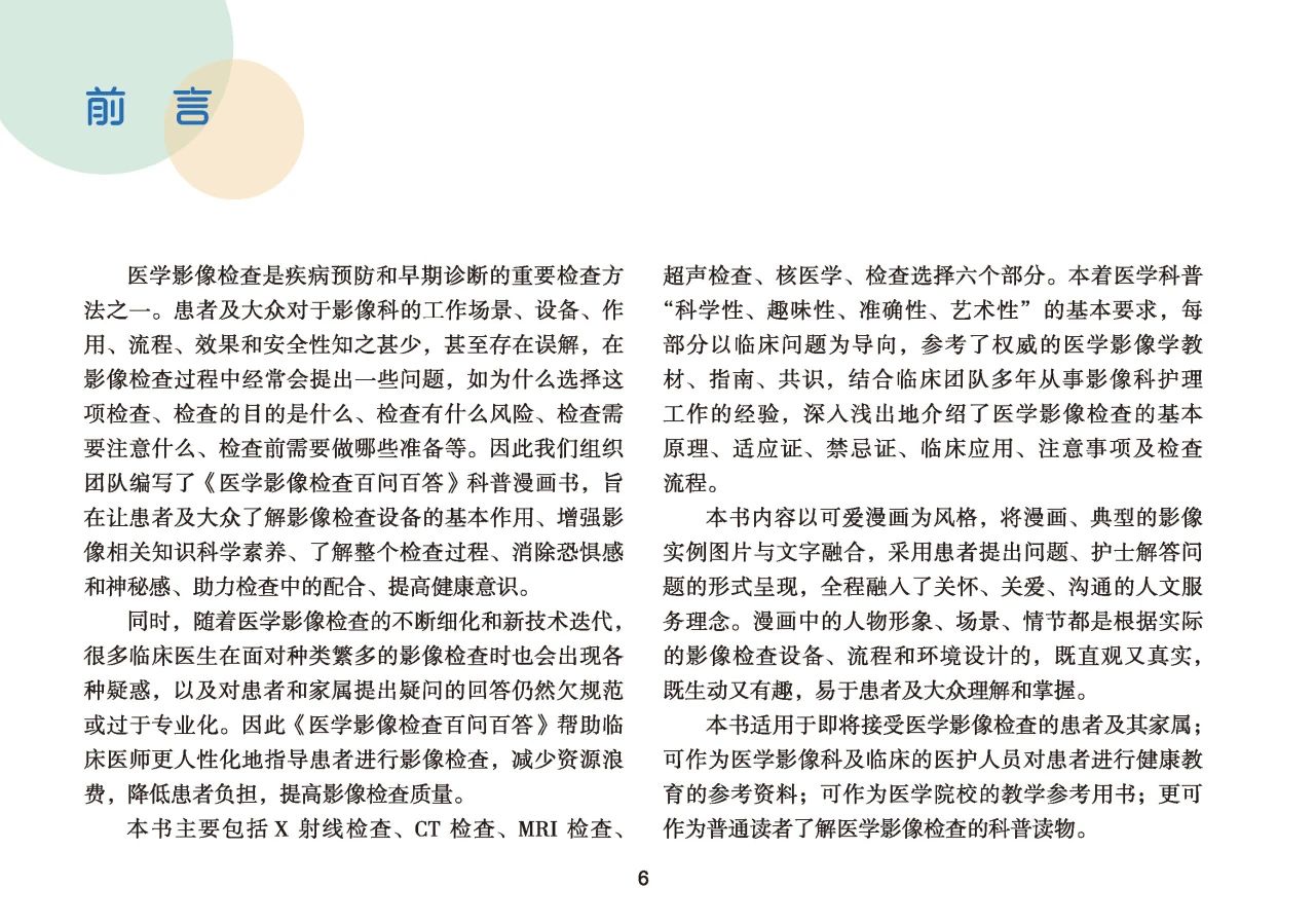 《医学影像检查百问百答》科普漫画书,旨在让患者及大众了解影像检查设备的基本作用、增强影像相关知识科学素养、了解整个检查过程、消除恐惧感和神秘感、助力检查中的配合、提高健康意识。