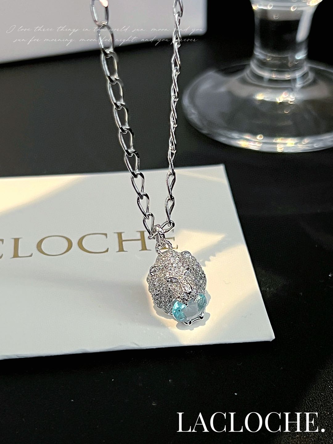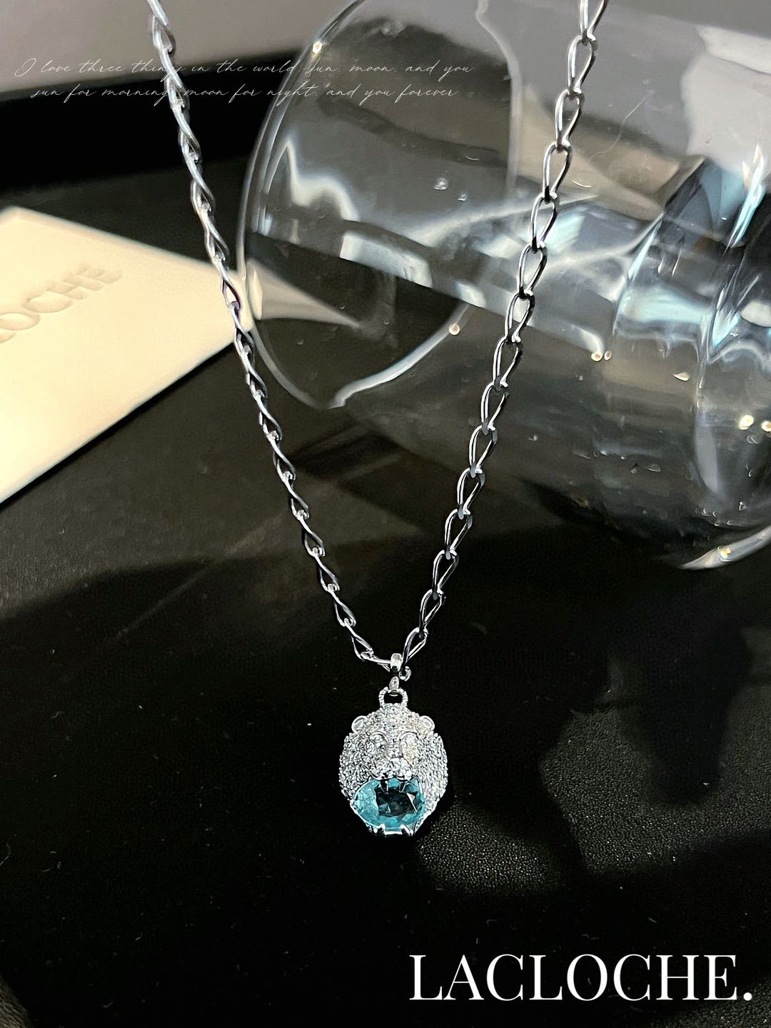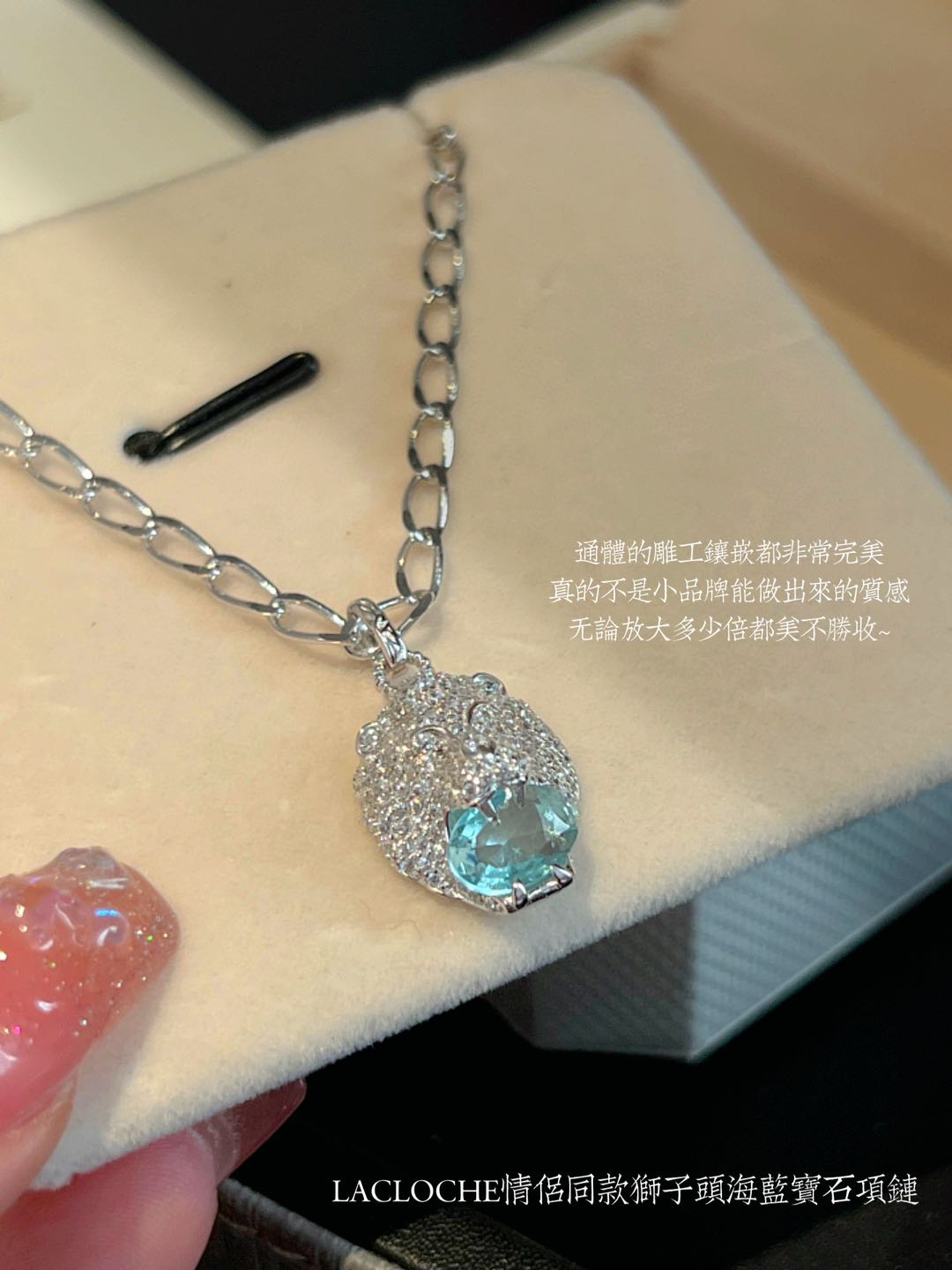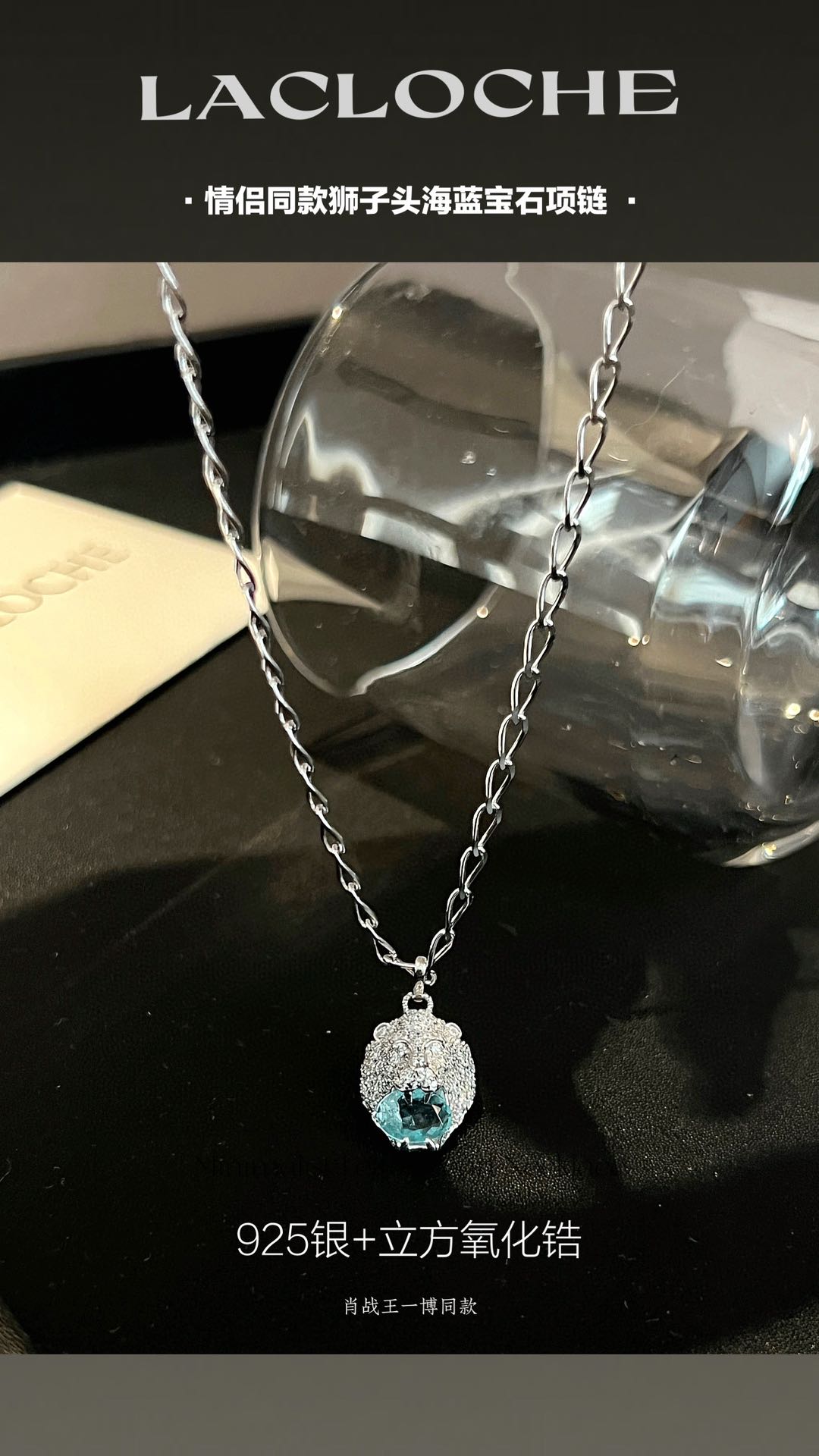 【品牌授权】肖战王一博同款 传奇品牌LACLOCHE情侣同款狮子头海蓝宝石项链