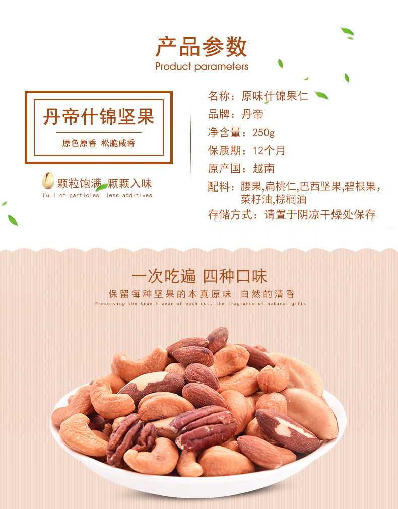 丹帝牌原味什锦果仁250g/150490 四种果仁混合清香原味