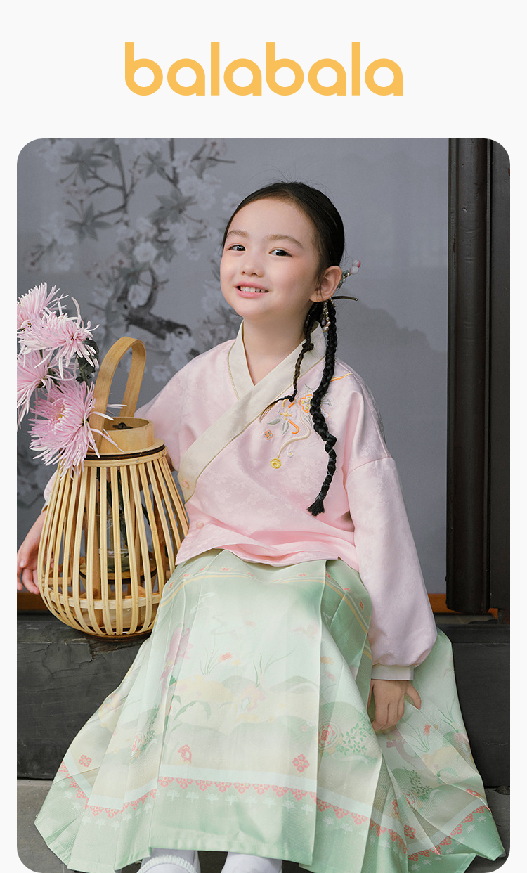 巴拉巴拉女童马面裙儿童长袖套装衣服秋款两件套时尚国风刺绣洋气