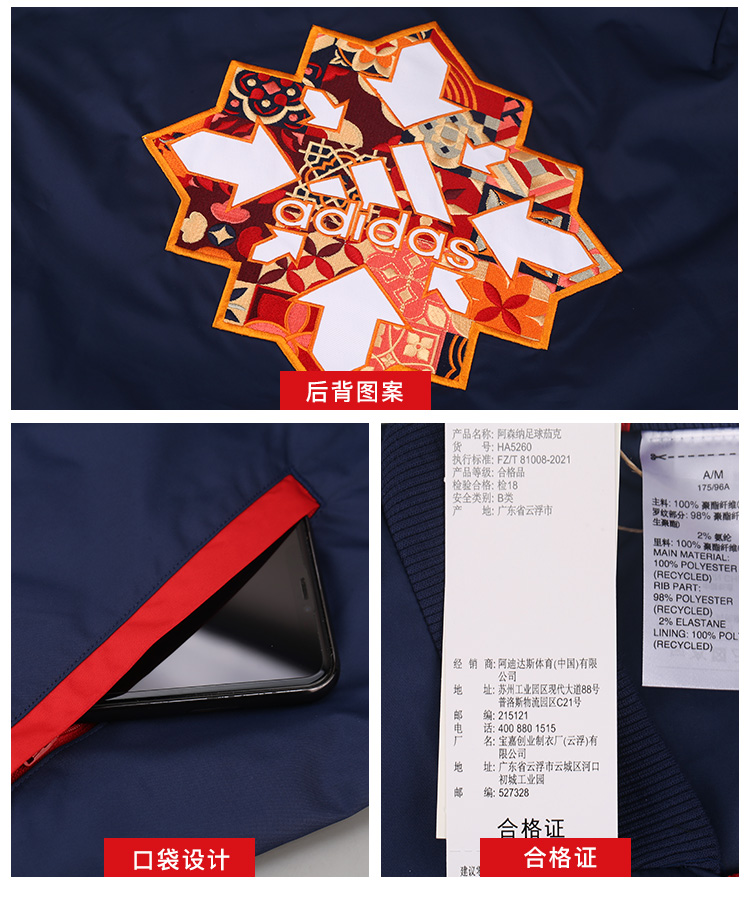 ADIDAS/阿迪达斯阿森纳足球运动夹克外套成人男HA5260