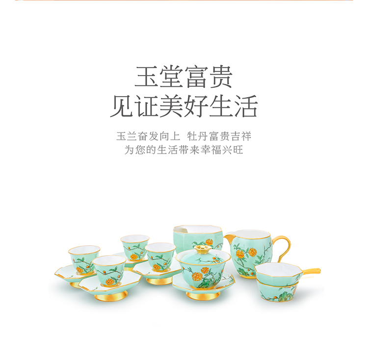 【玛戈隆特】B7F 4人份玉堂富贵茶具 家用中式禅意功夫茶具组合 礼盒套装