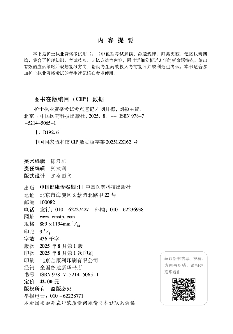护士执业资格考试考点速记(2026护考应急包)刘月梅 刘颖 主编 护士执业资格考试的考生速记核心考点使用 中国医药科技出版社