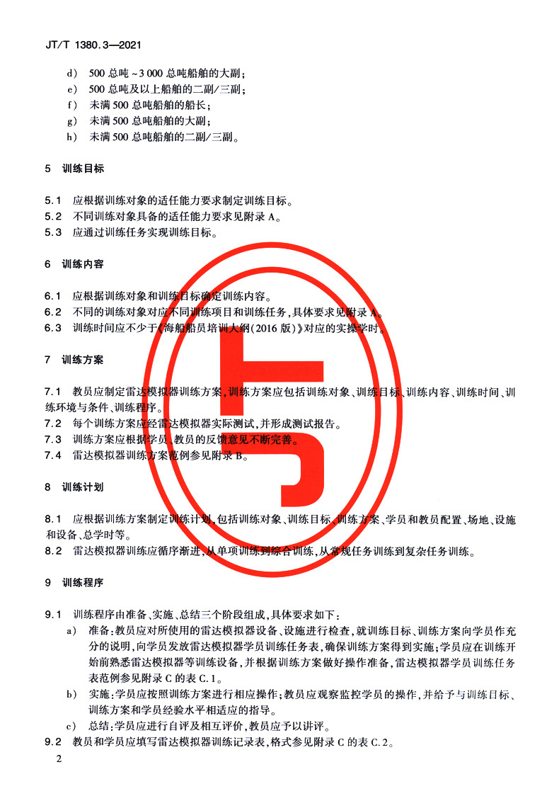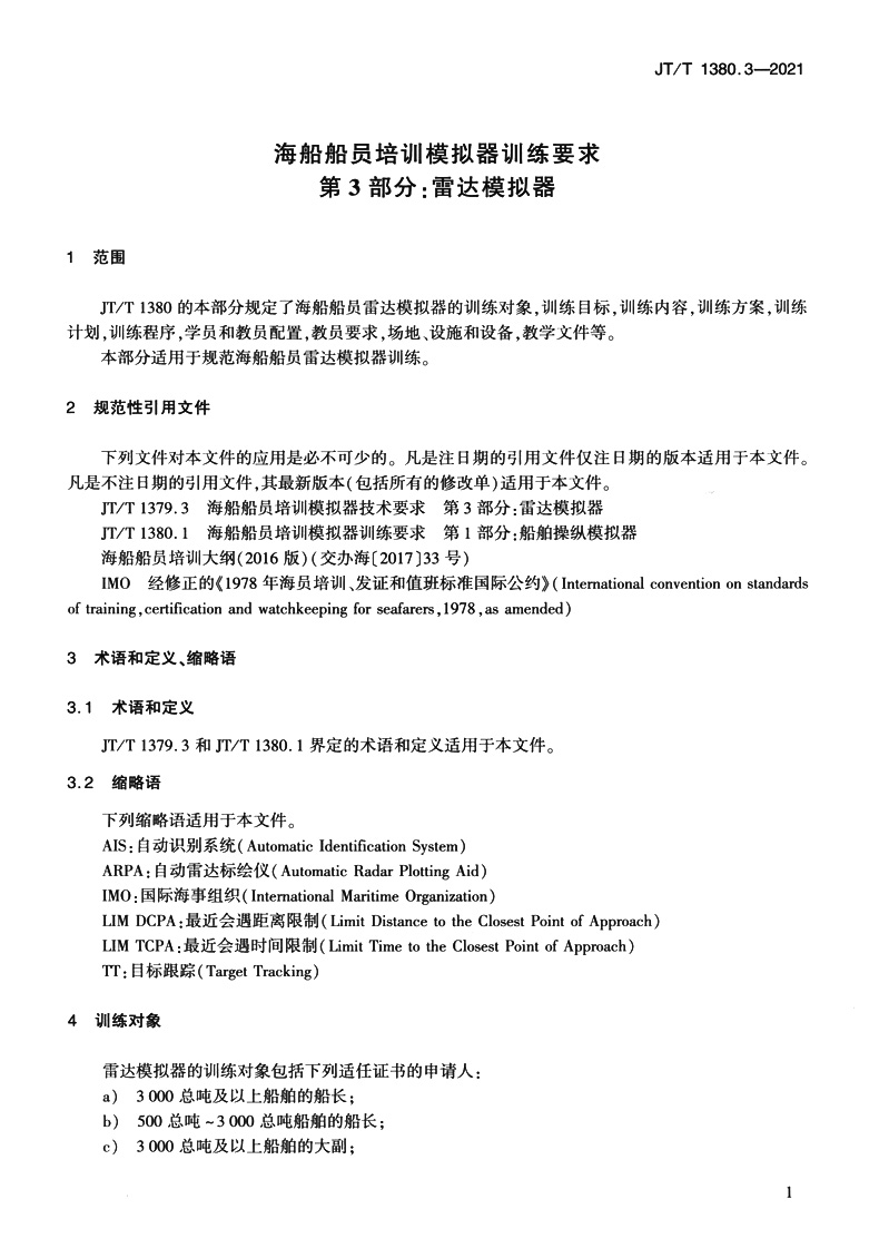 书名:海船船员培训模拟器训练要求 第3部分:雷达模拟器(JT/T 1380.3—2021)