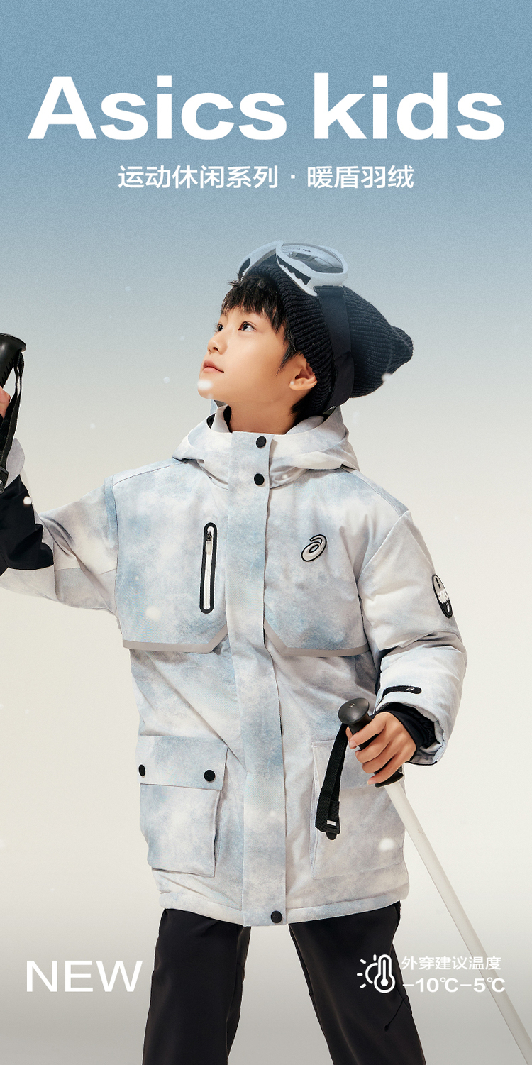 ASICS/亚瑟士童装2023年秋冬男女儿童宽松保暖三防梭织羽绒服