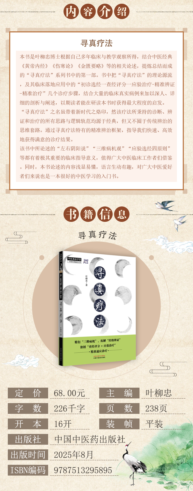 寻真疗法 中医师承学堂 叶柳忠 著 精衍“三维病机”拓解“经络辨证”黄帝内经 伤寒论 金匮要略 临床 书籍 中国中医药出版社