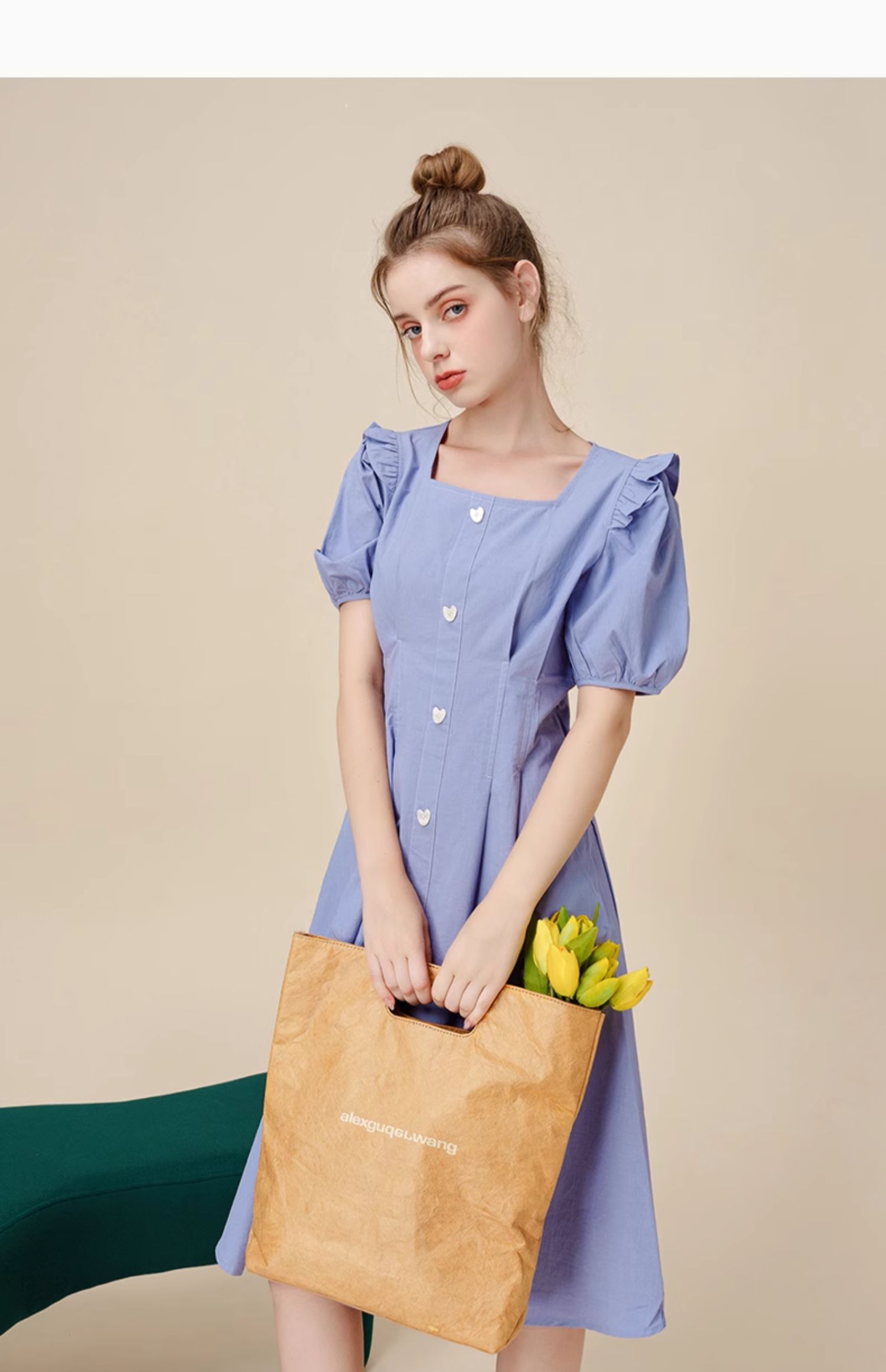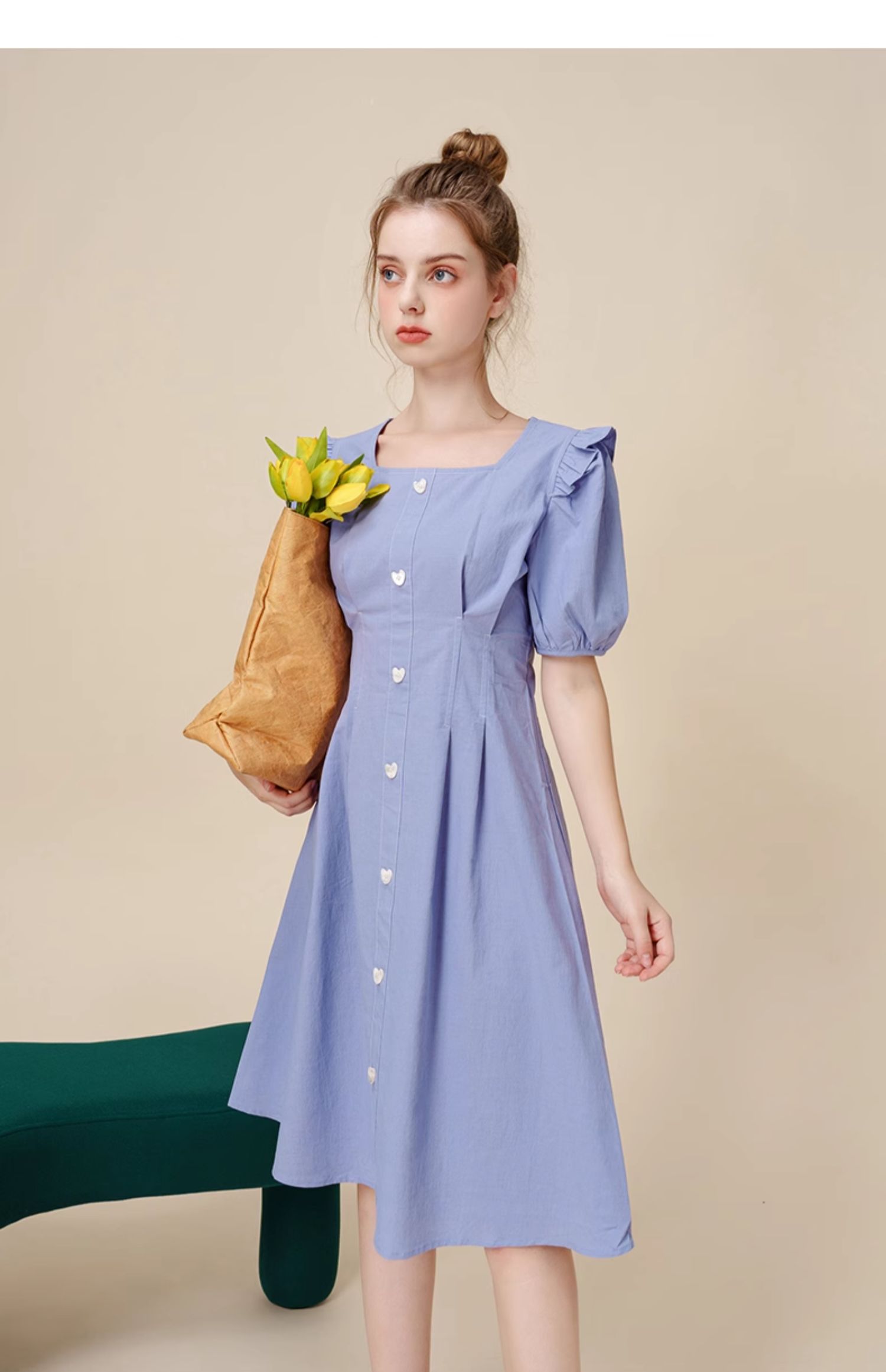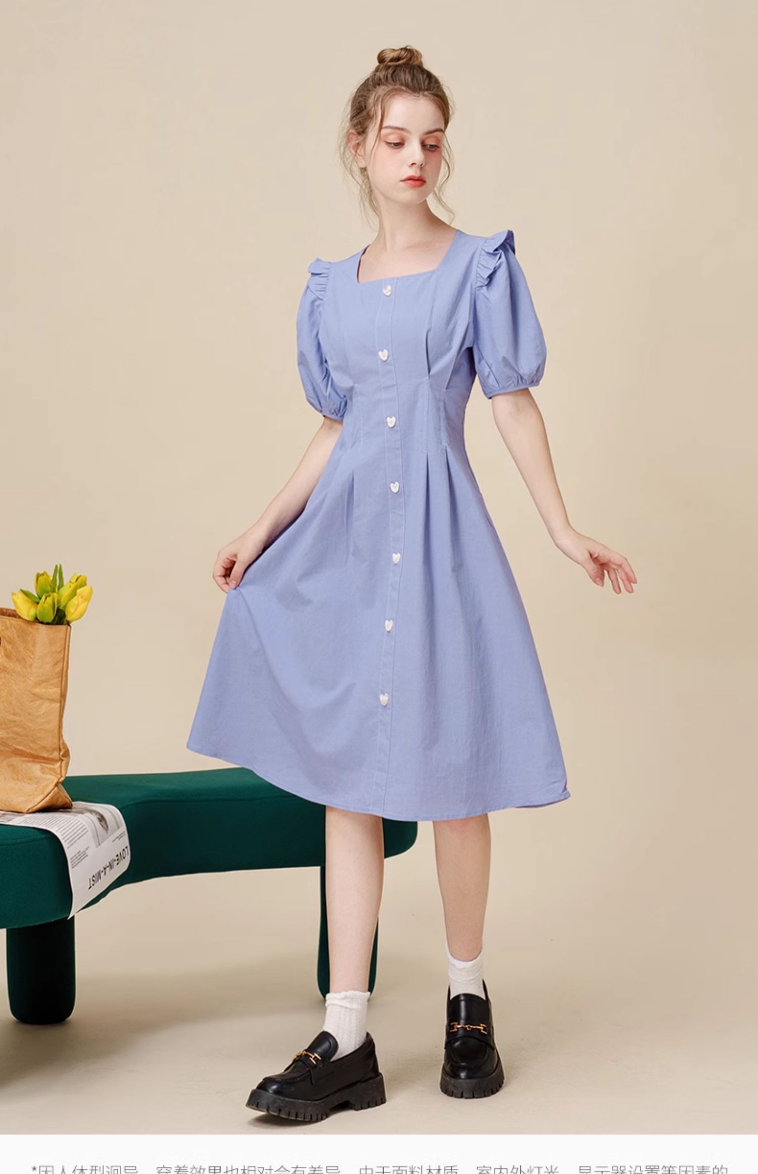 mc2紫色连衣裙女装夏法式温柔风方领爱心扣装饰收腰甜美裙子
