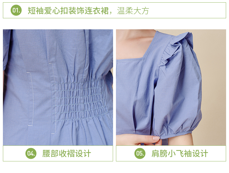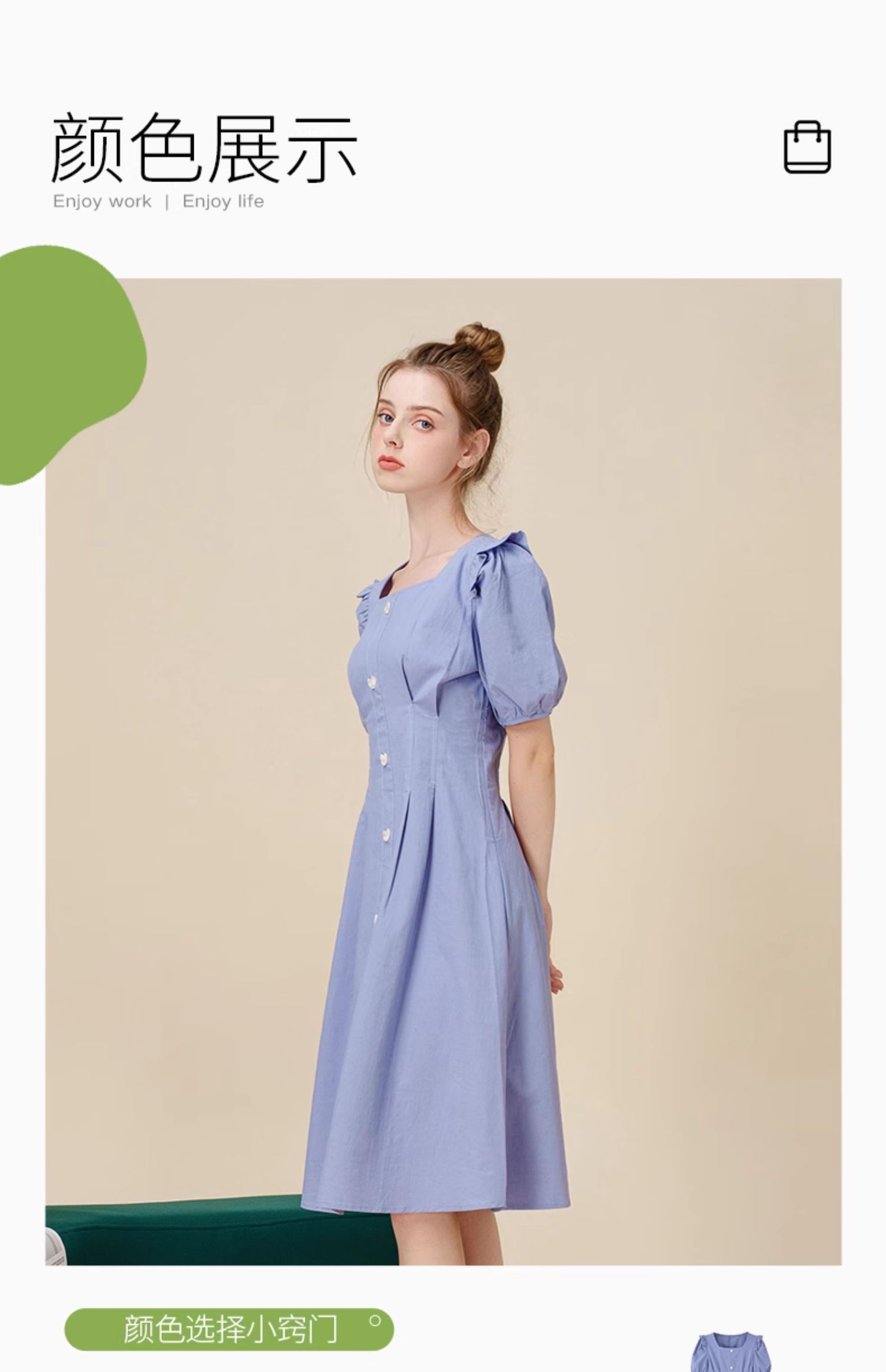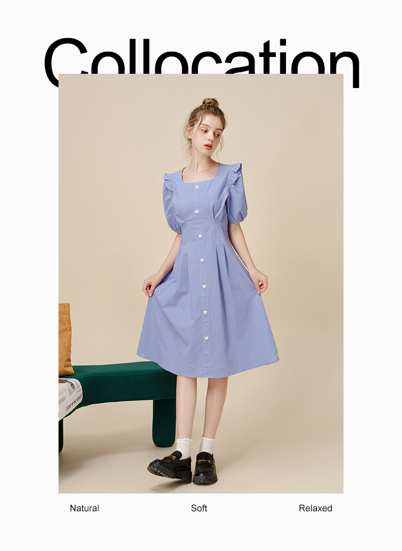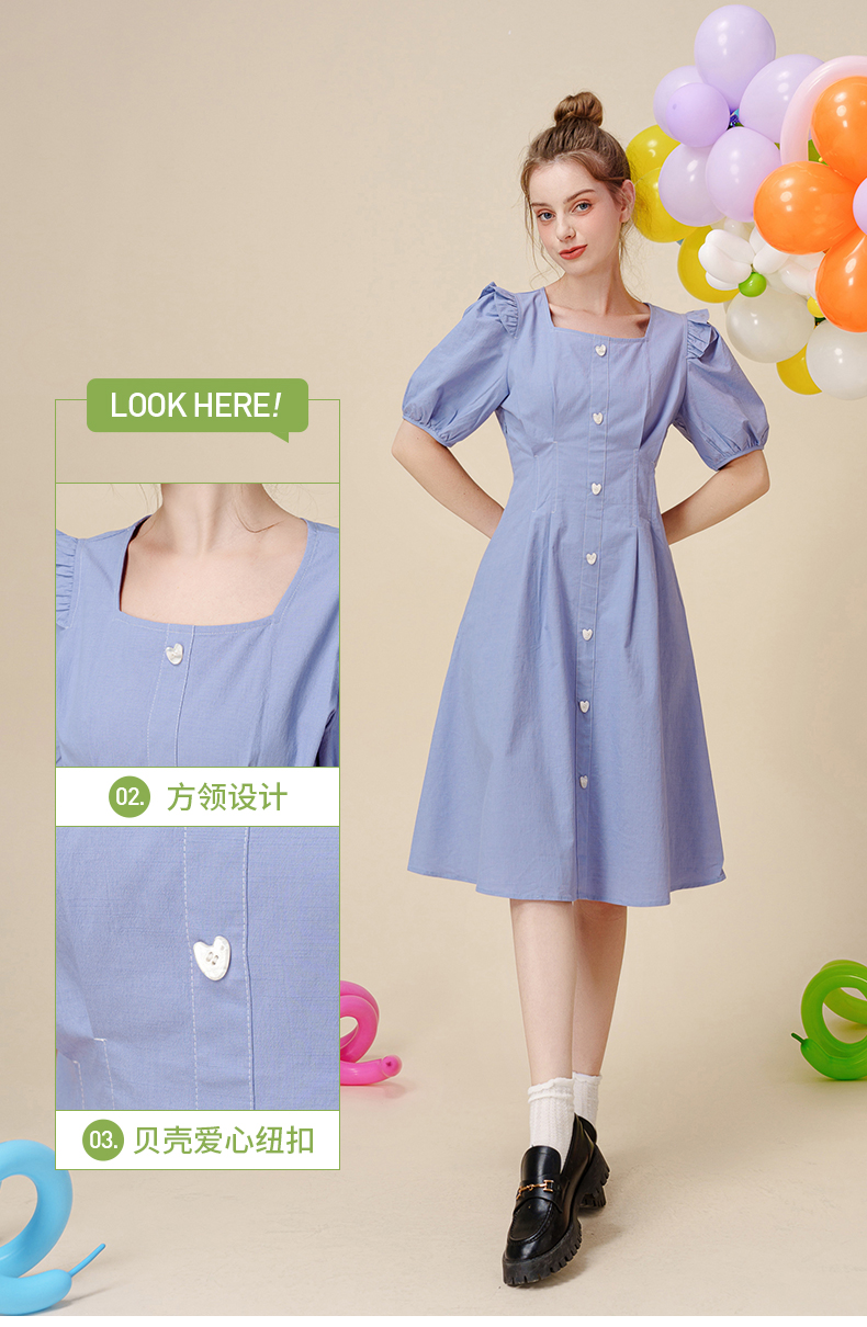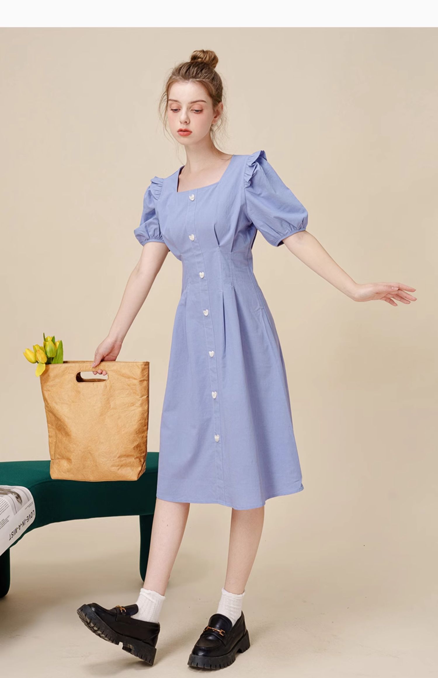 mc2紫色连衣裙女装夏法式温柔风方领爱心扣装饰收腰甜美裙子