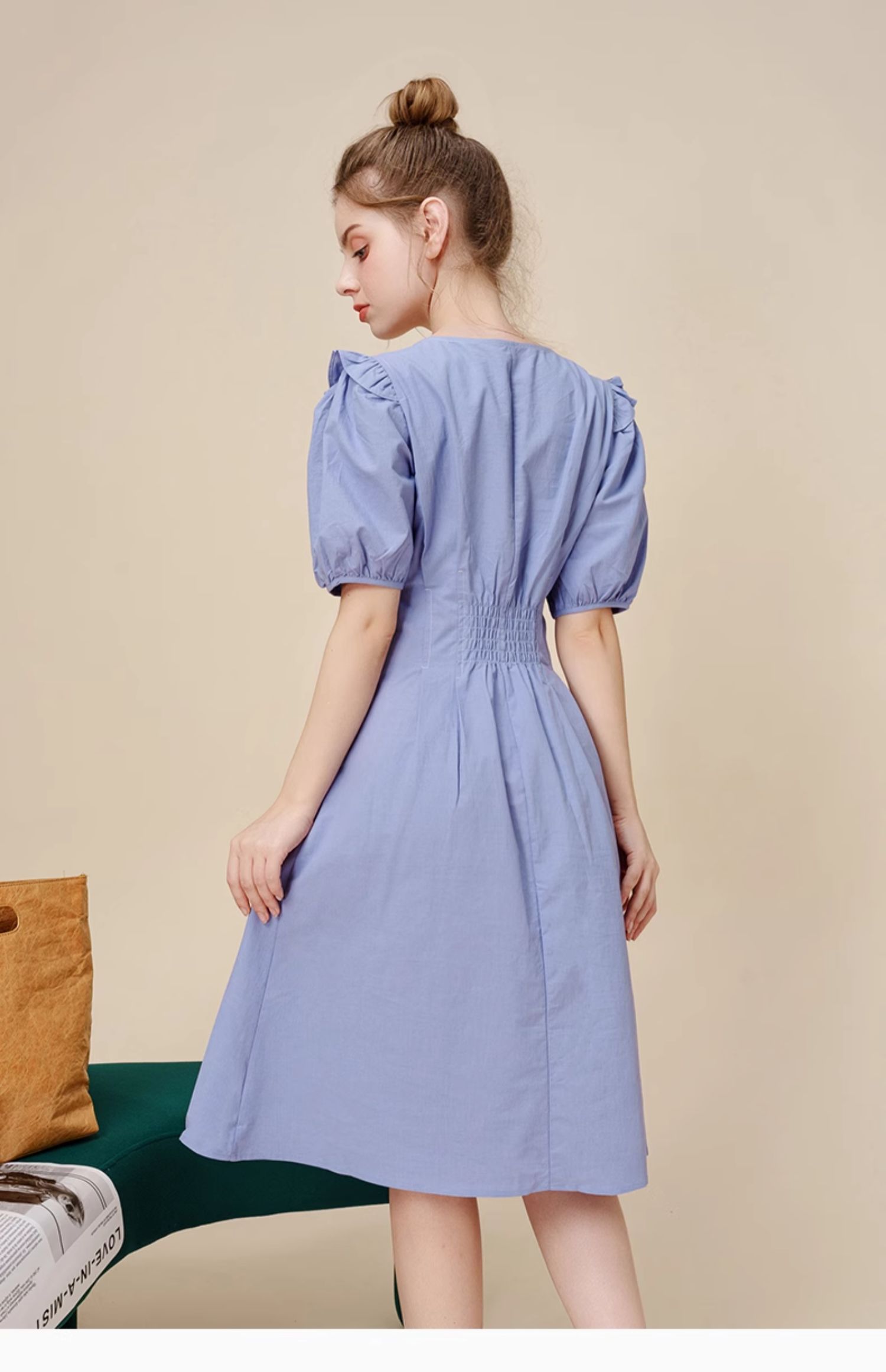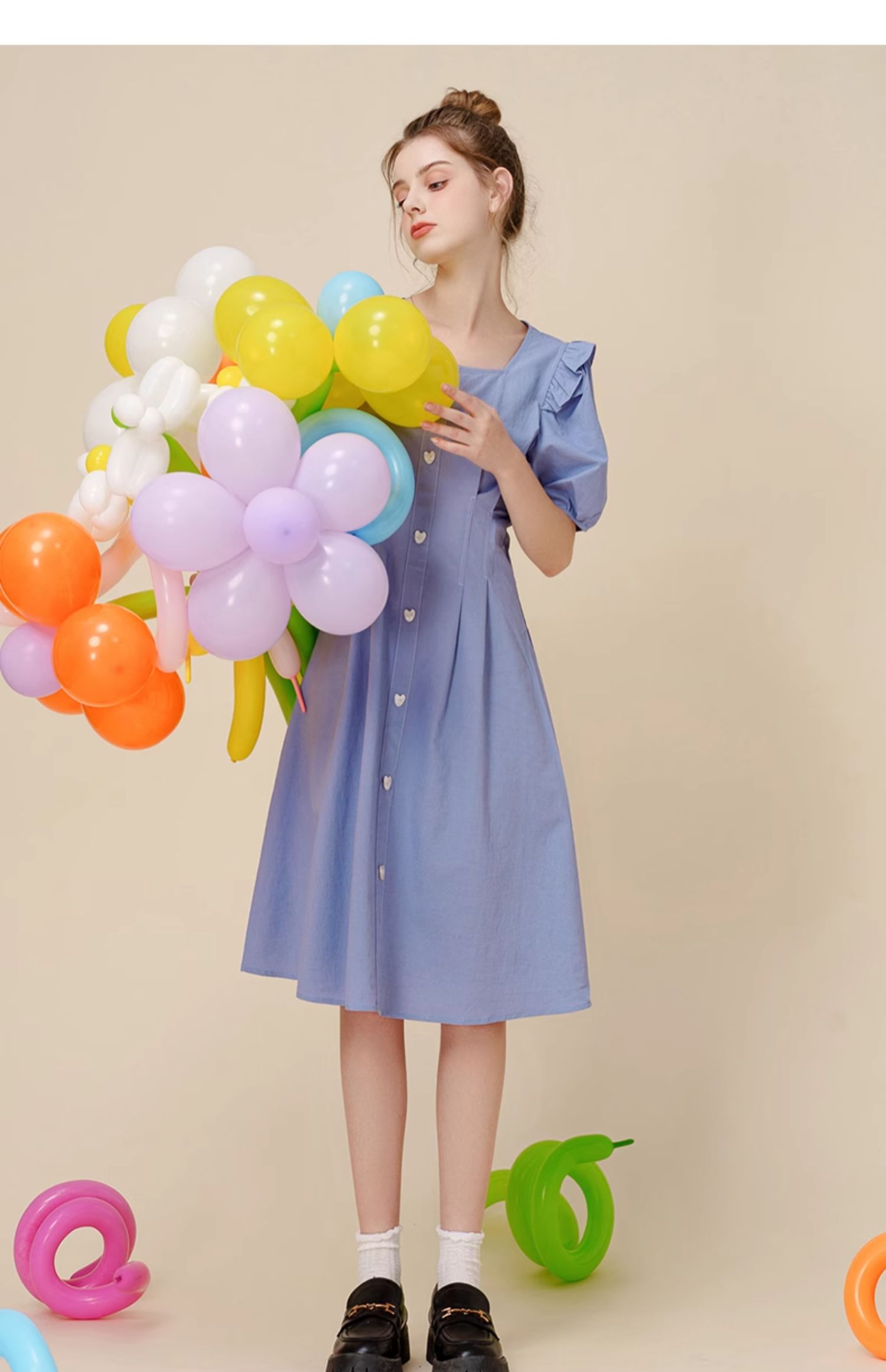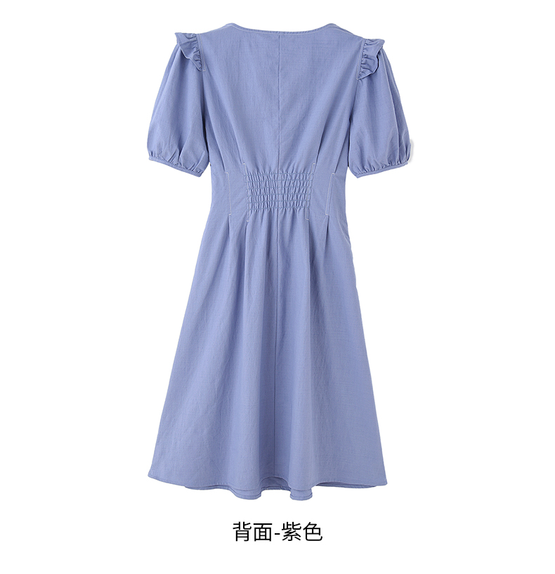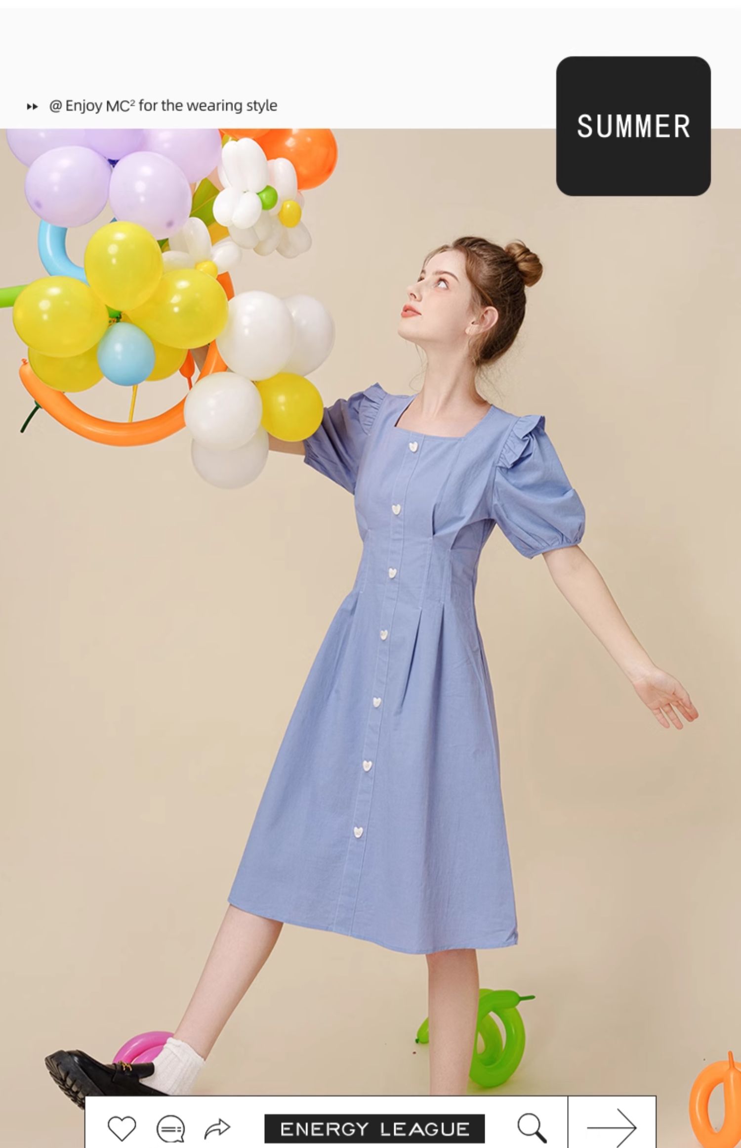 mc2紫色连衣裙女装夏法式温柔风方领爱心扣装饰收腰甜美裙子