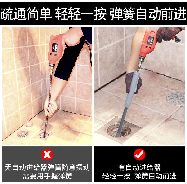 【不用再花钱疏通下水道啦】下水道疏通神器电动管道疏通器家用厕所马桶厨房堵塞弹簧工具