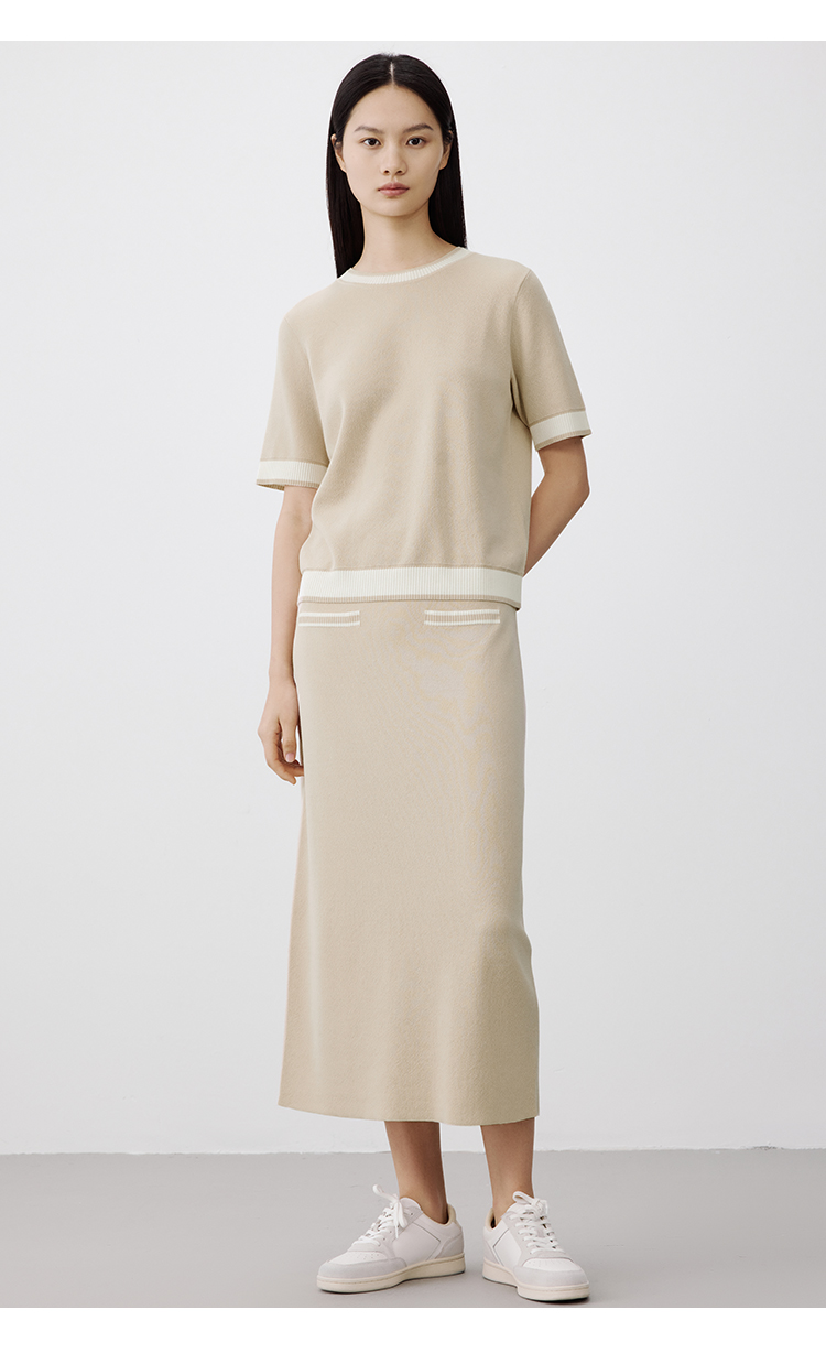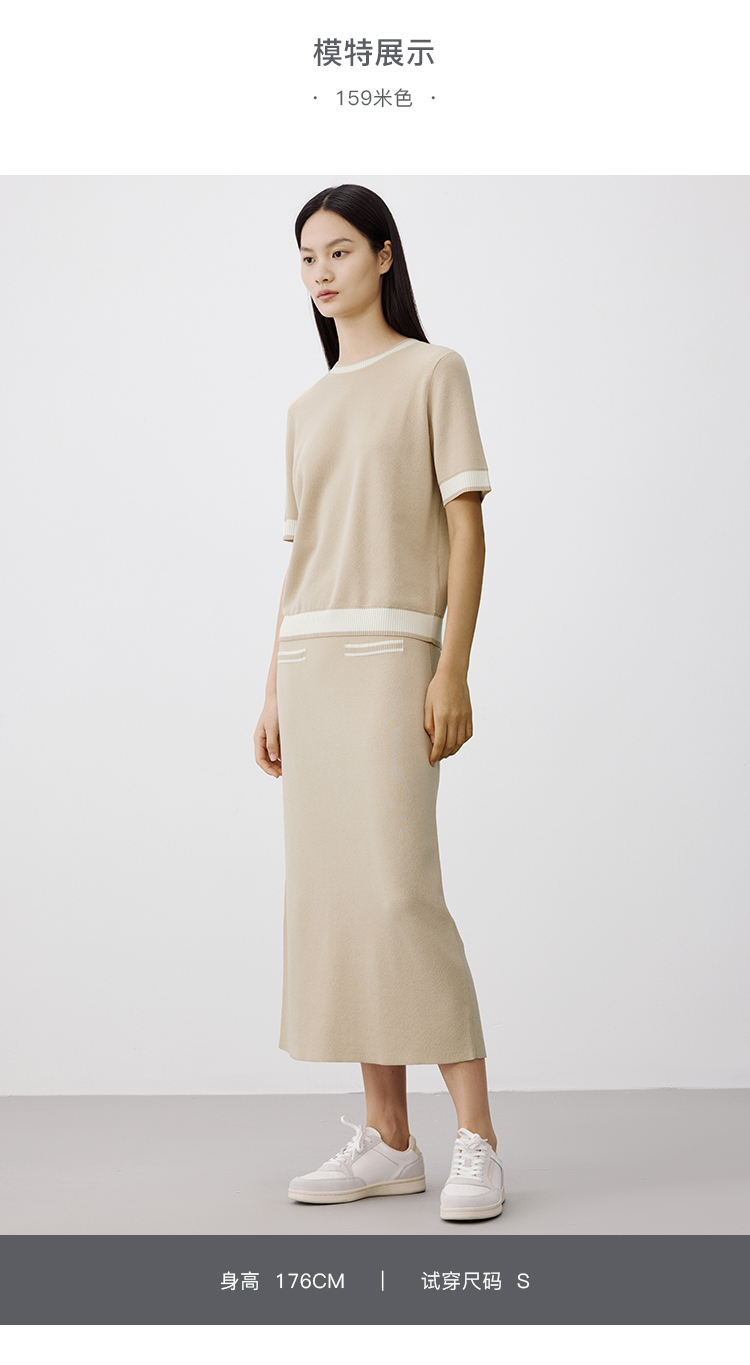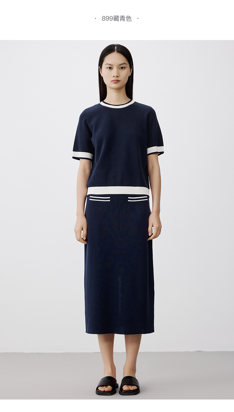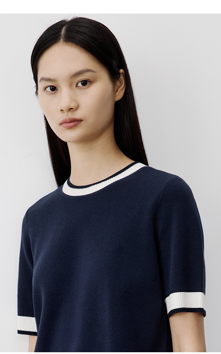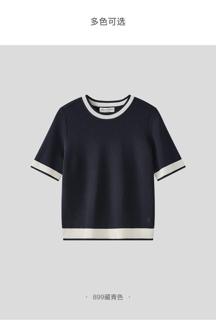 Marc O'Polo/MOP 秋季新款短袖针织衫女早秋时尚撞色女士上衣