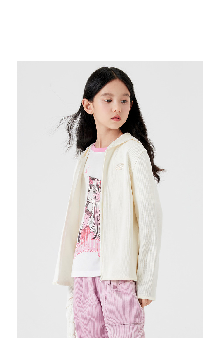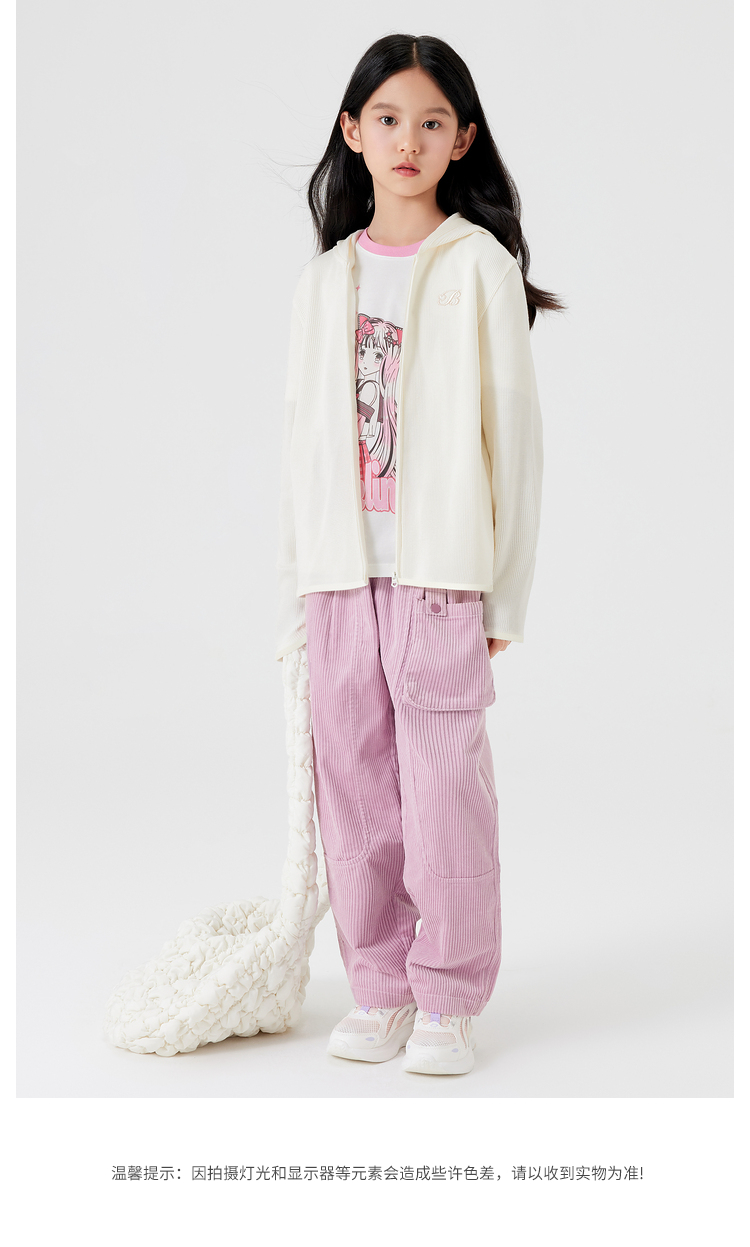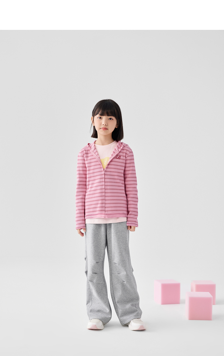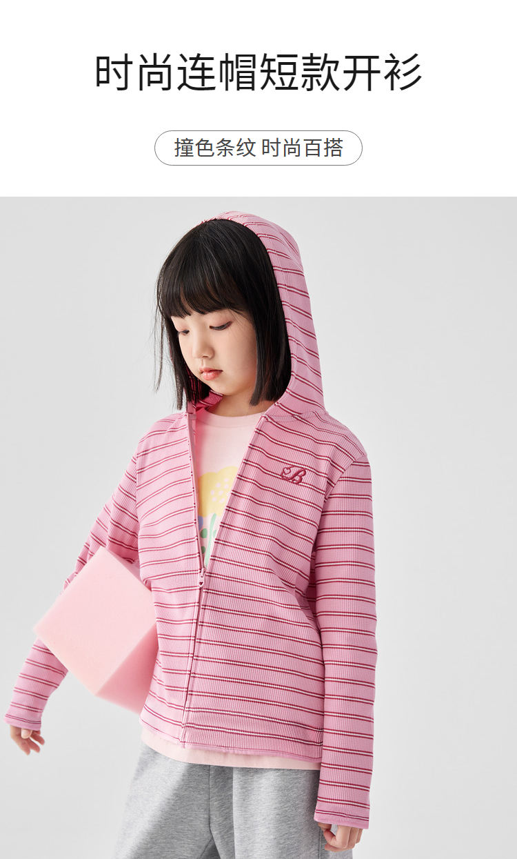 巴拉巴拉女童外套新款秋装中大童短款运动连帽条纹儿童上衣潮