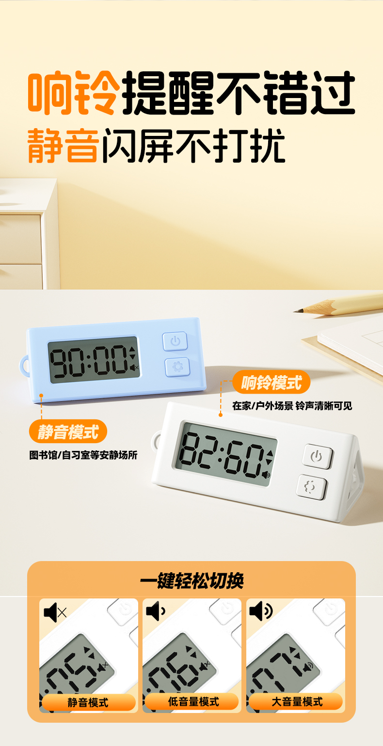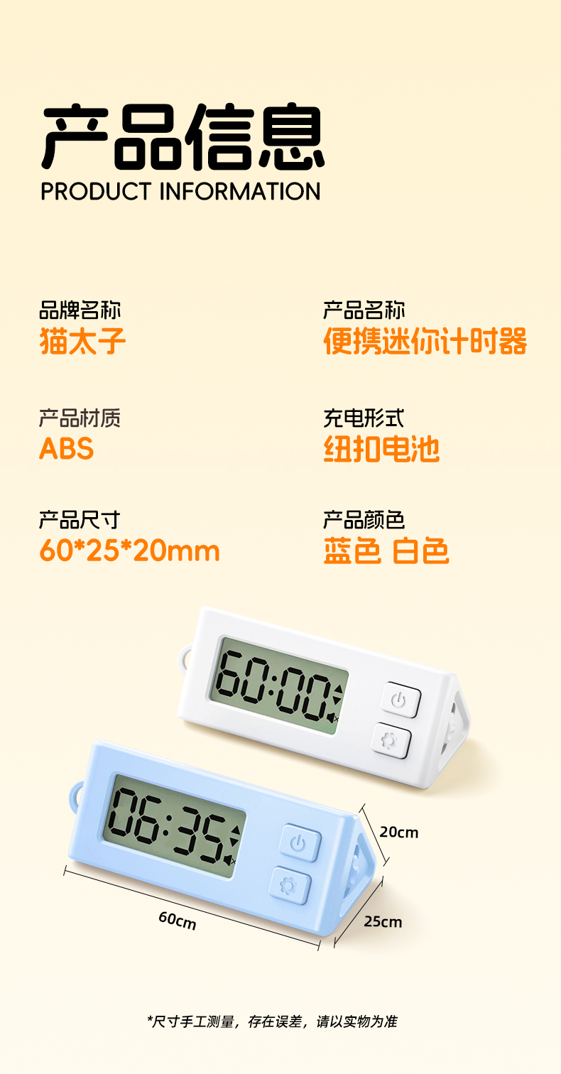【开学季】猫太子多功能迷你便携计时器学习专用静音倒计时提醒器闹钟时间管理器 0806