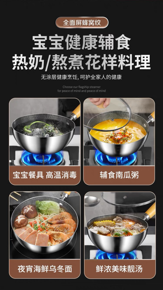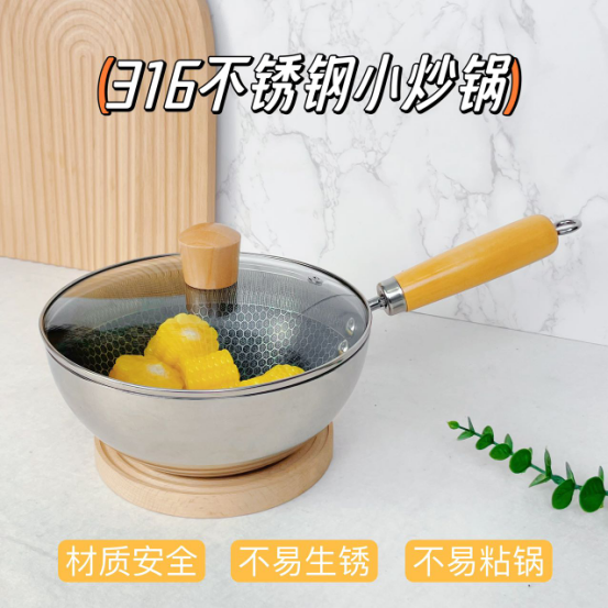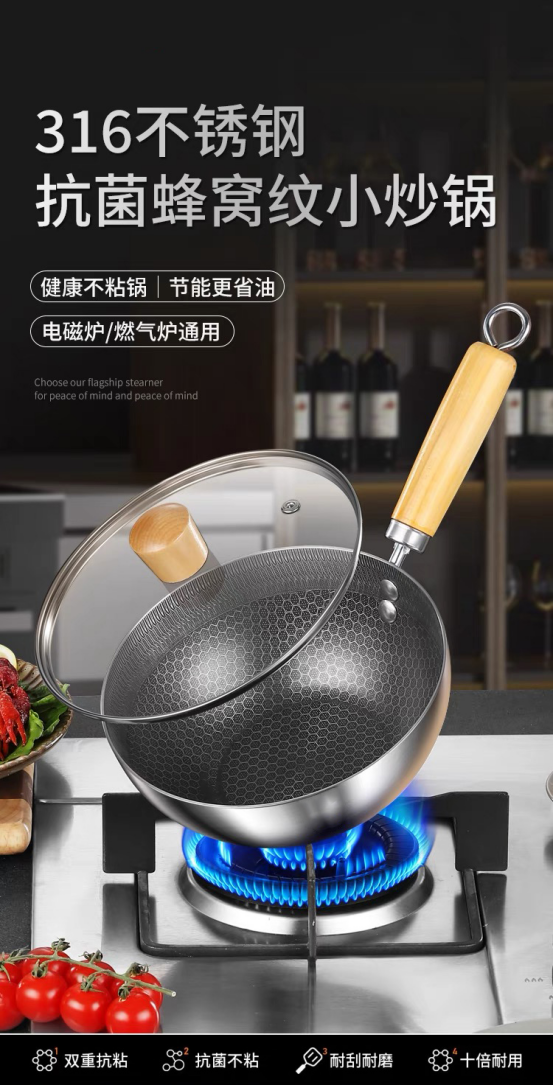 【PONEL派能316不锈钢小炒锅】☺️1、不易粘锅,✨不易生锈,烹饪少油烟~ ❤️2、316不锈钢材质,抗氧化、耐腐蚀、😎更健康、更安全