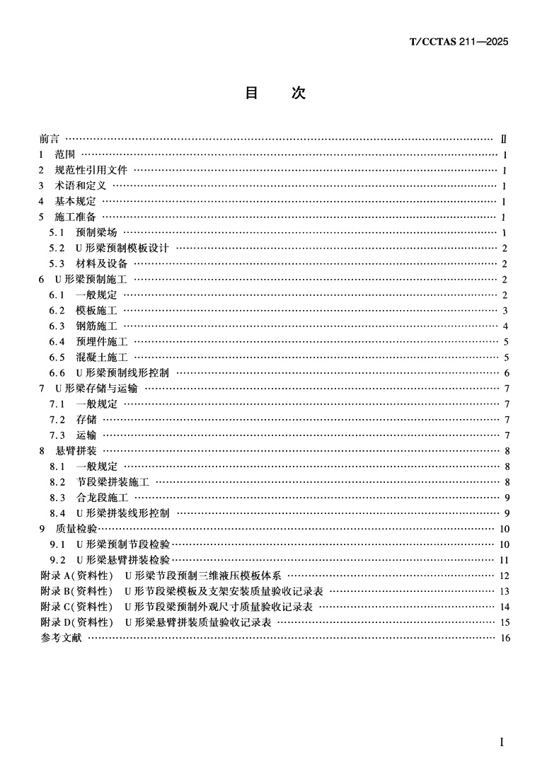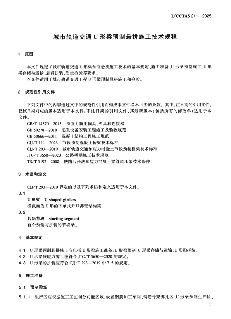 书名:城市轨道交通U形梁预制悬拼施工技术规程T/CCTAS 211—2025