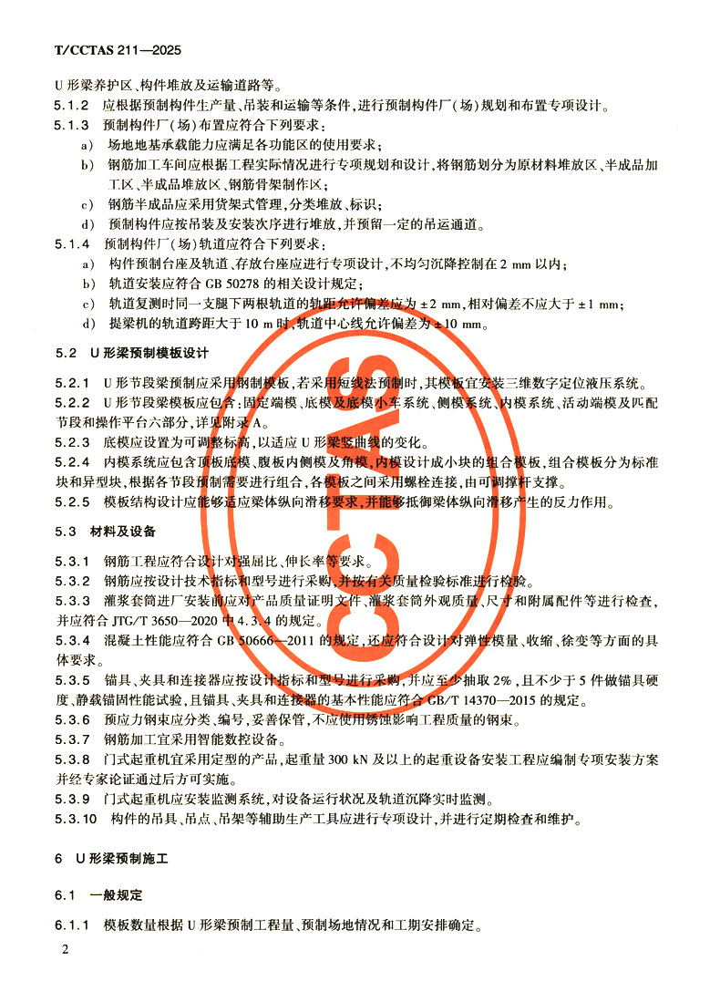 城市轨道交通U形梁预制悬拼施工技术规程T/CCTAS 211—2025