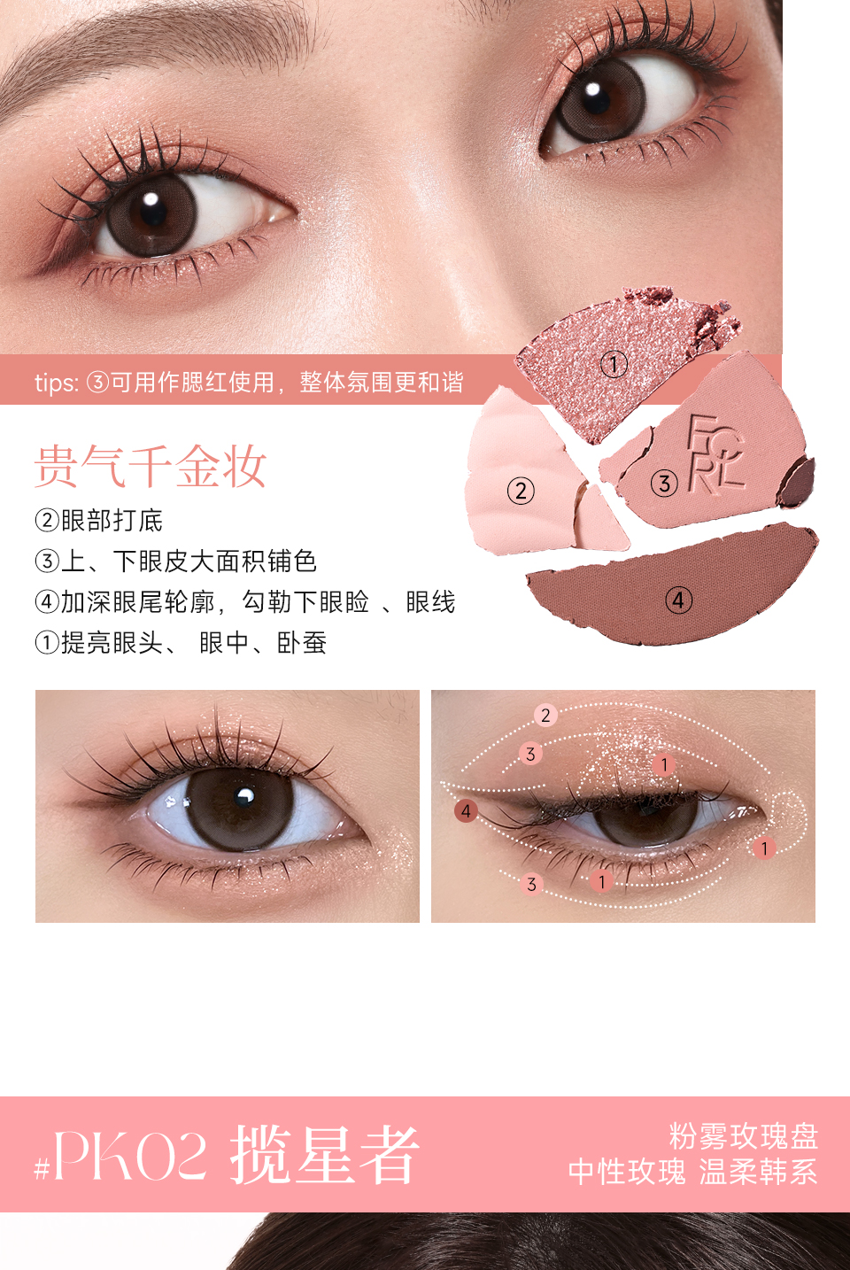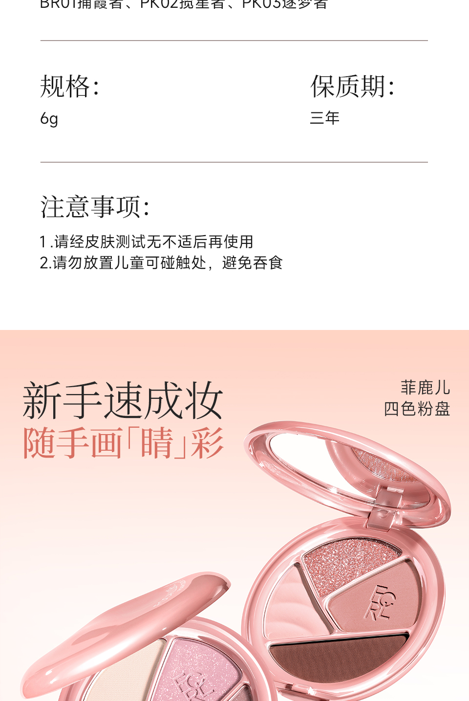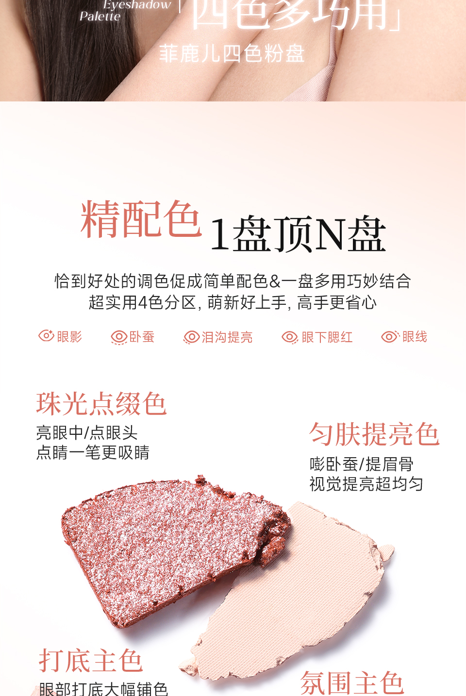 【新品】菲鹿儿四色眼影粉盘大地色珠光哑光爆闪亮片日常初学者多用