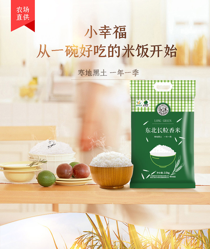 中国农垦 良农嫁稻 东北长粒香米2.5kg 农场直供 寒地黑土 一年一熟