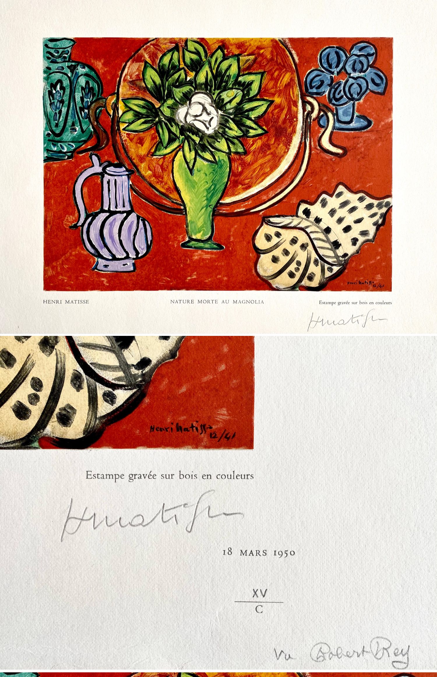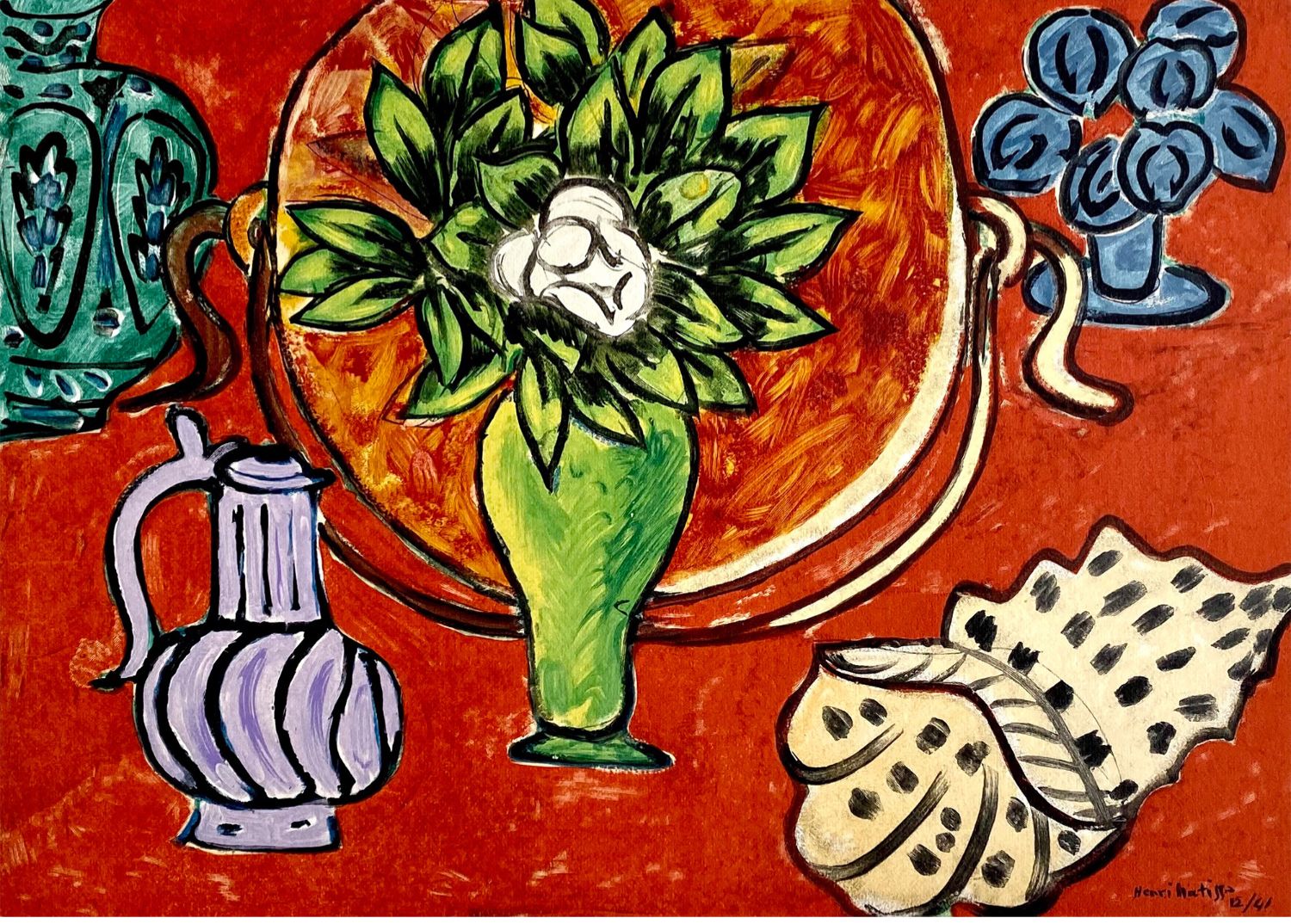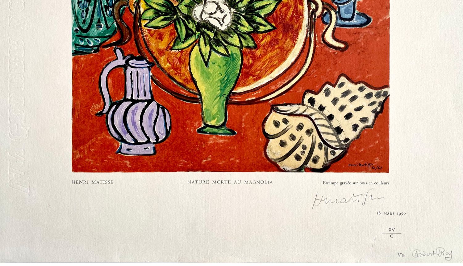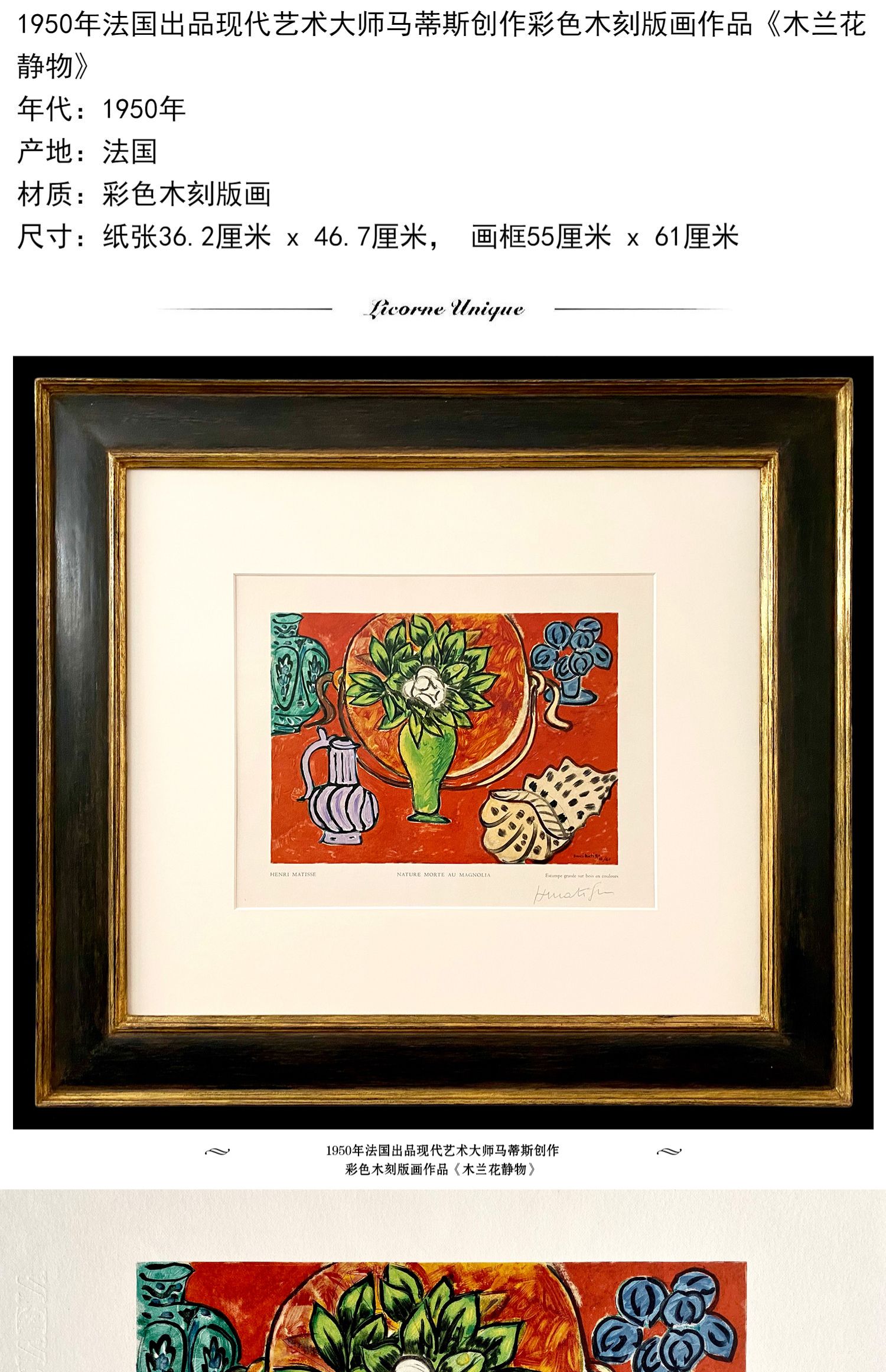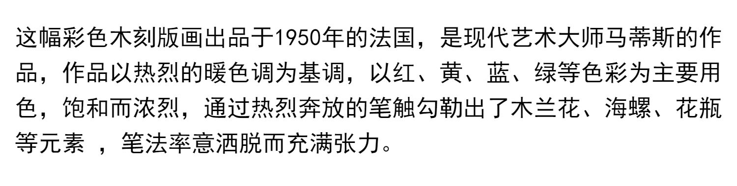独角鹿西洋古董现代艺术大师马蒂斯彩色木刻版画作品木兰花静物