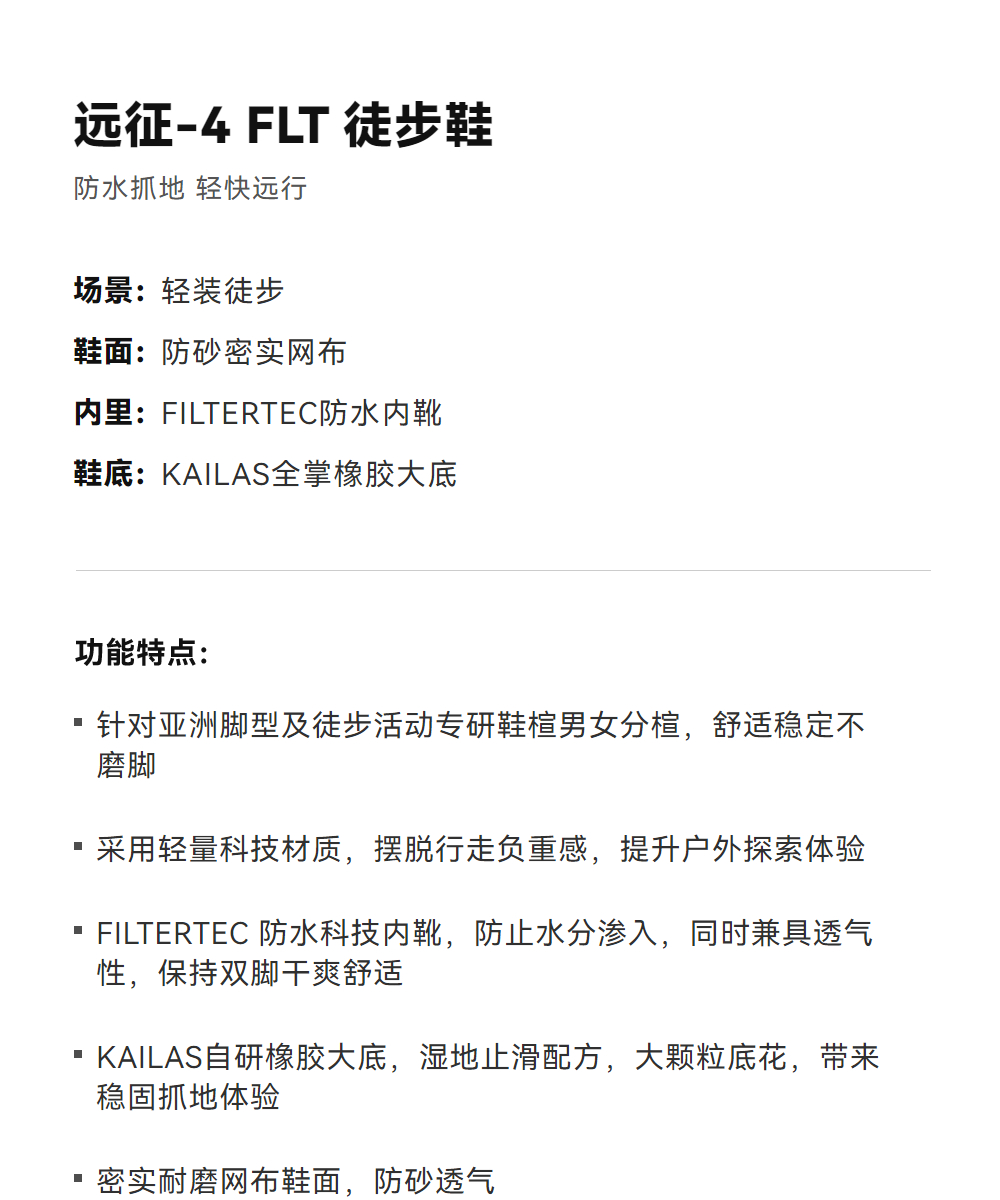 KAILAS凯乐石 男款低帮防水徒步鞋(远征-4 FLT) KS2612146