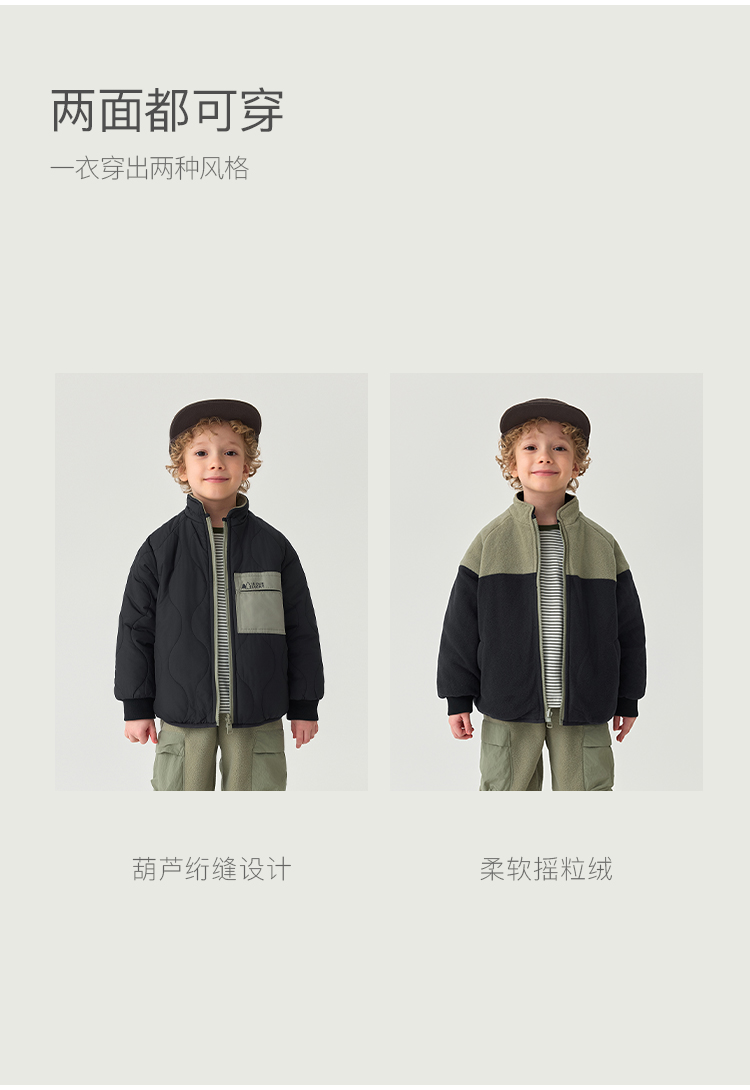 马克珍妮男童双面穿撞色夹棉外套2025秋冬新款551591