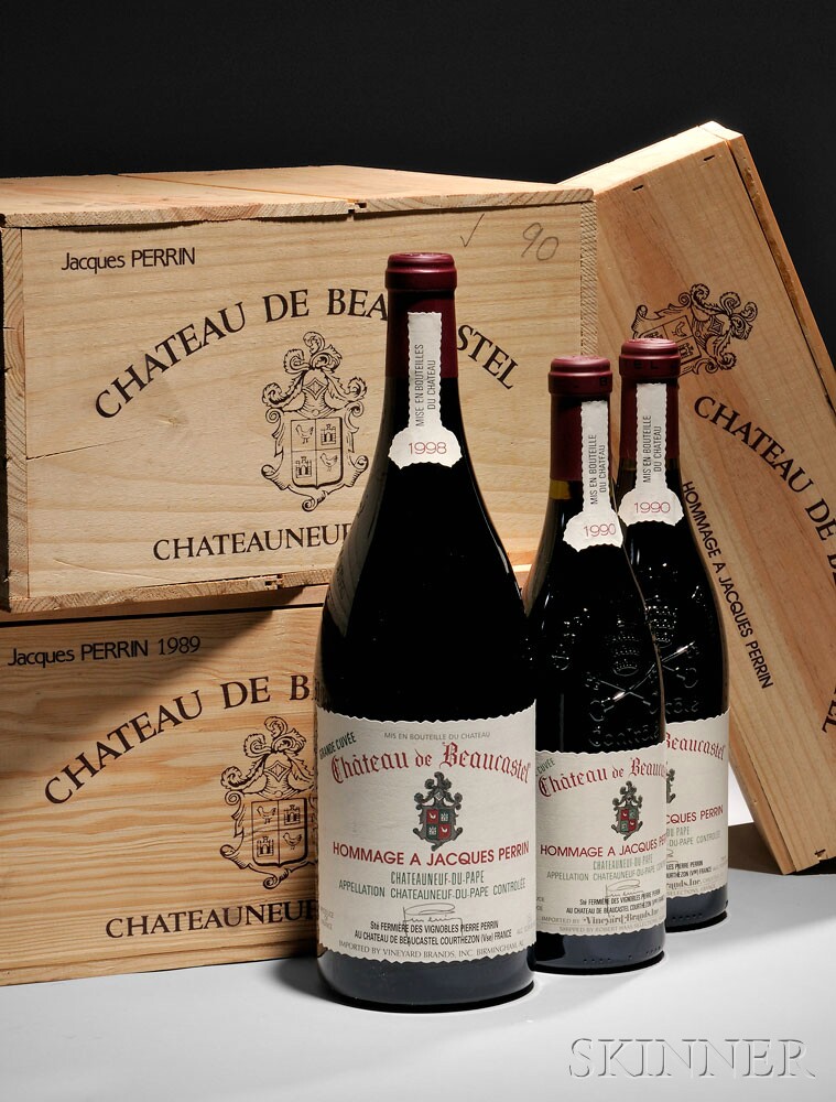 Chateau de Beaucastel生产红葡萄酒和白葡萄酒,其中红葡萄酒以慕合怀特(Mourvedre)葡萄为主,白葡萄酒则以瑚珊(Roussanne)葡萄为主。其中比较知名的酒款有向佩兰致敬干红葡萄酒Chateau de Beaucastel Hommage a Jacques Perrin, Chateauneuf-du-Pape、Chateau de Beaucastel, Chateauneuf-Du-Pape和Coudoulet de Beaucastel, Cotes-Du-Rhone等。其中,最值得一提的便是博卡斯特尔酒庄向佩兰致敬干红葡萄酒。