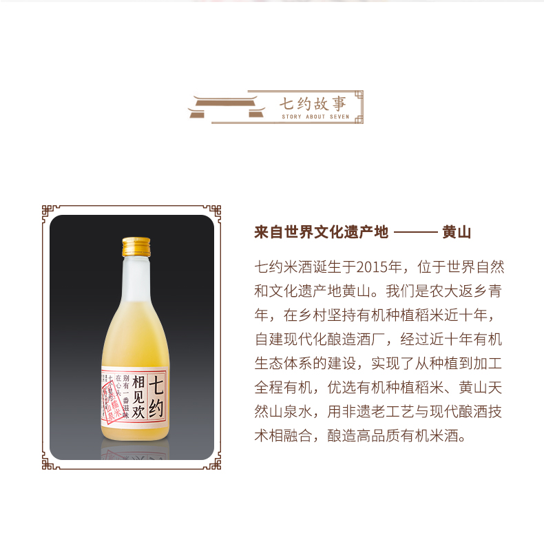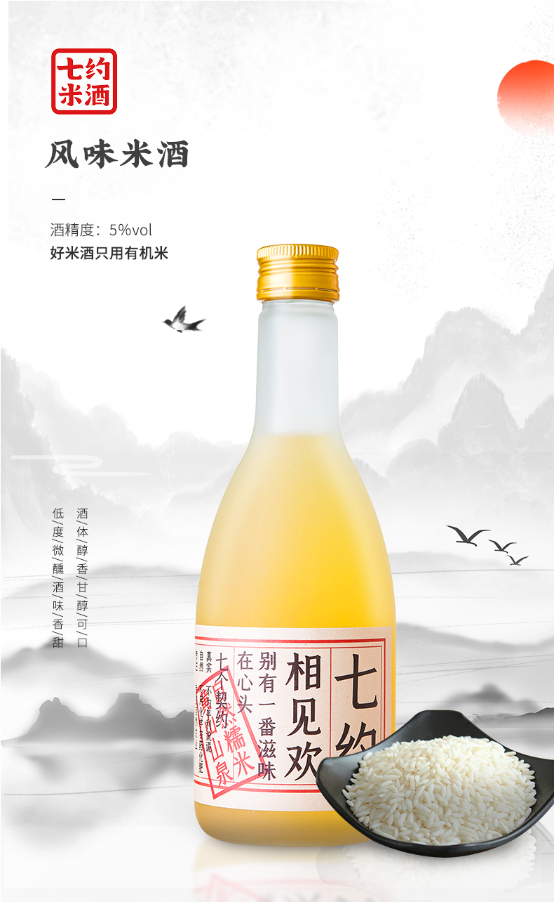 5度有机原味米酒相见欢350ml(基地直发-中通包邮) | 350ml/瓶,来自安徽黄山,生产者:七约【合作生产,公平贸易】