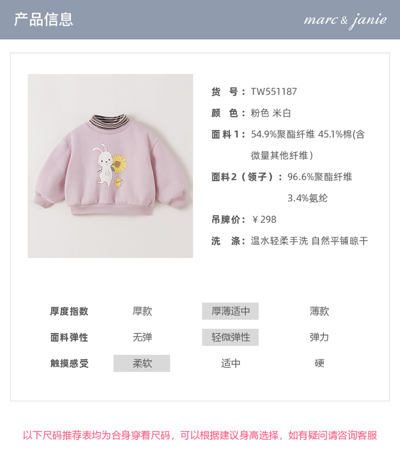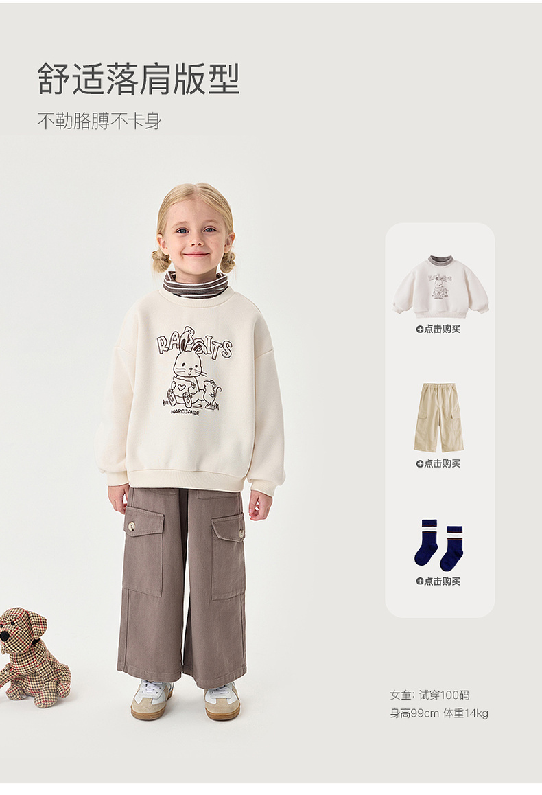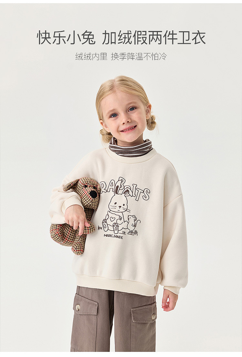【假两件】马克珍妮女童可爱兔子加绒高领卫衣2025年冬装新款551187