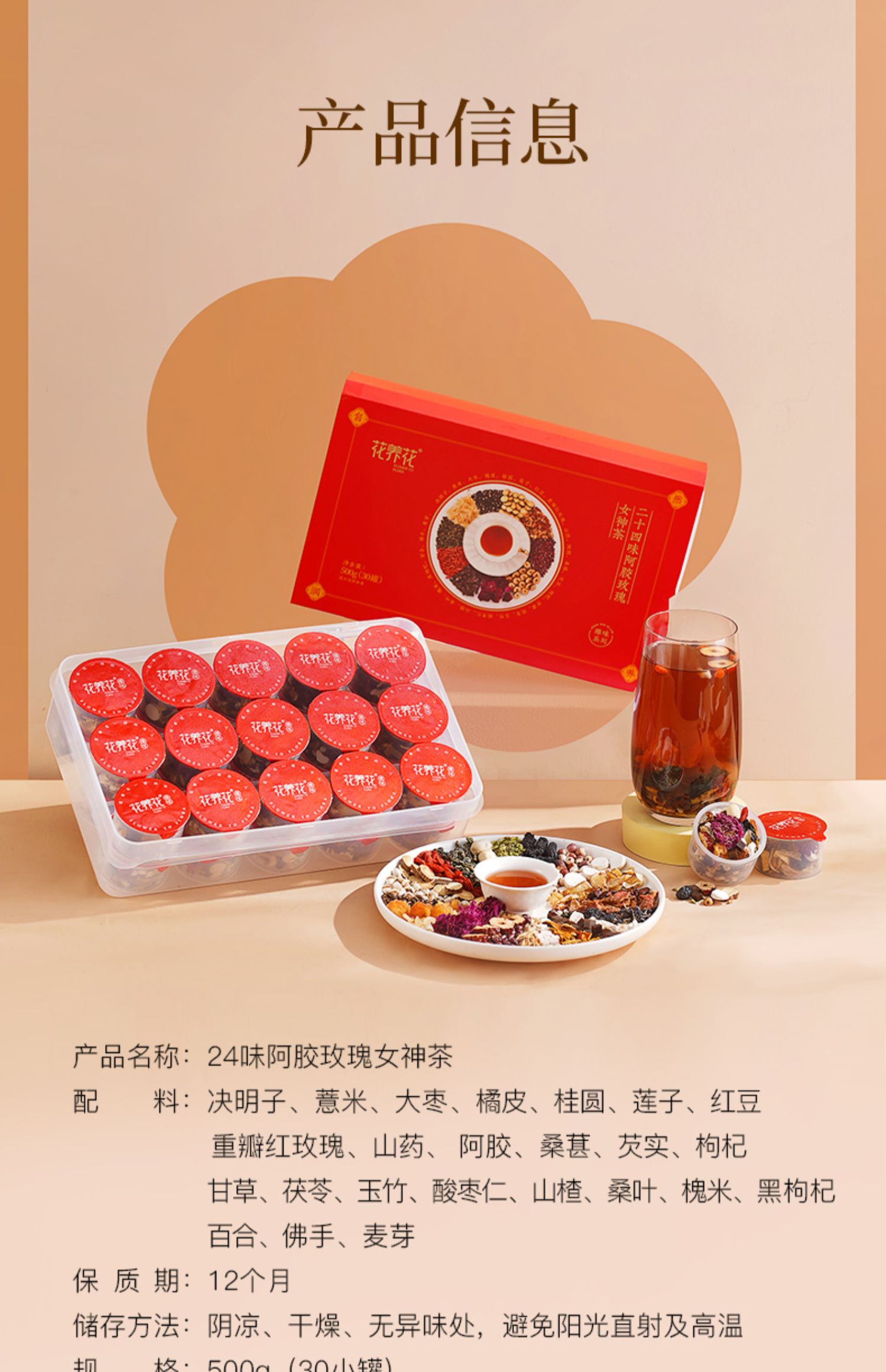 【高配原材】24味玫瑰阿胶女神茶礼盒500g