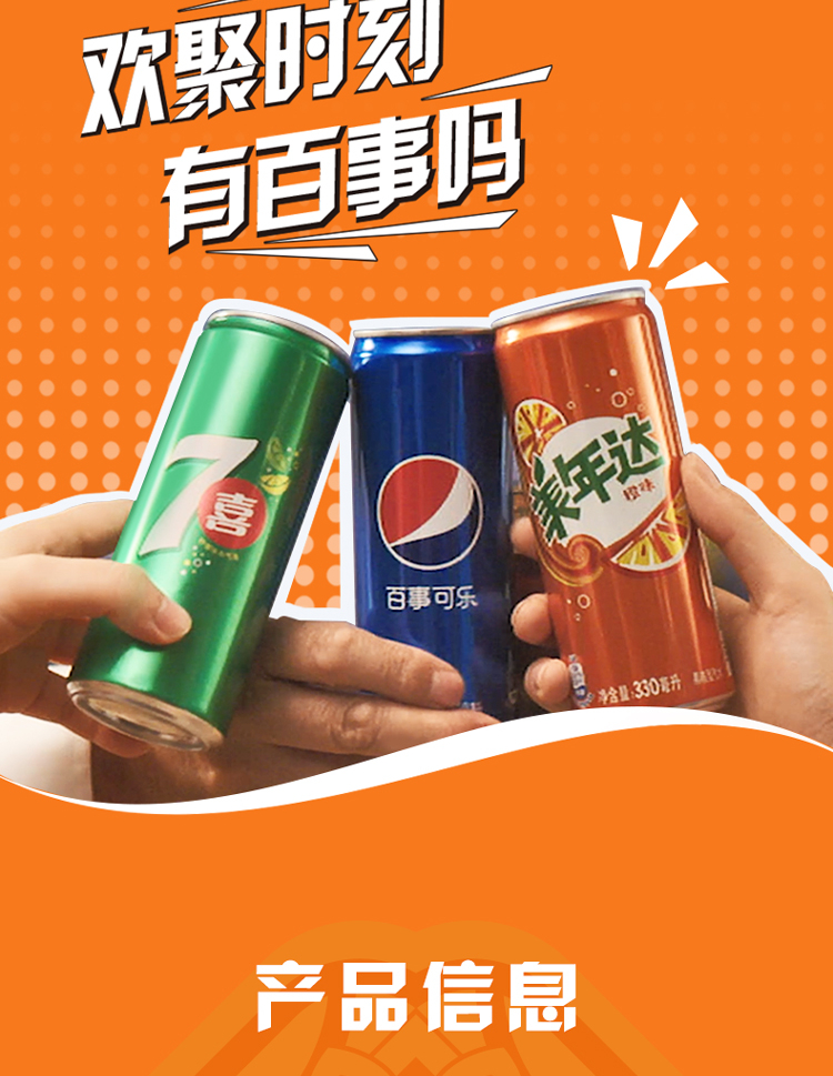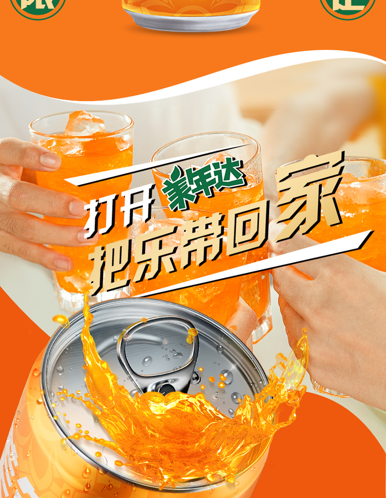 美年达可乐 Mirinda 橙味汽水 碳酸饮料 330ml*6听 (新老包装随机发货)